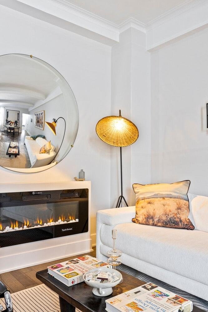 A rare UWS dream - 1.5 bedroom prewar condominium charm, one block from Central Park. Fully gut-renovated in 2024, this home blends timeless 1920s details with contemporary upgrades, offering the best of both worlds. The residence features high, beamed ceilings, wide-plank solid hickory hardwood floors, enviable customized closets as well as a dedicated storage space, all-new lighting and AC units, and an in-unit washer & dryer. The inviting living room is anchored by an elegant electric fireplace, creating a warm and comforting focal point. The king-sized primary bedroom is spacious with east and south facing windows, while the flexible bonus room works perfectly as a home office or nursery. The intentionally crafted kitchen maximizes every inch with custom flirtatious blush cabinetry, quartz countertops, porcelain tiling, and stainless steel appliances. The smartly configured bathroom showcases a marble-and-glass shower, porcelain flooring, a sliding barn door, and a fogless touch vanity mirror for a modern finish. The Westerly Condominium is a classic boutique, elevator building with only six units per floor, offering simplicity and discretion. Amenities include a live-in super and handyman, part-time doorman, additional laundry facilities, courtyard in the back of the building, and resident storage. Built in 1925, the thick brick masonry affords quietness, insulation, and attractive period charm. Come for the convenience, stay for the friendly neighbors and low monthlies. Pets are welcome, too. Perfectly located on a tree lined street between Central Park and Riverside Park, the building sits moments from the 1/2/3 and A/B/C subway lines. Trader Joe's is 1 minute away, while Whole Foods, Target, and the Columbus Square shopping corridor are also nearby, along with beloved neighborhood cafes and restaurants-including Jacob's Pickles coming soon right across the street. This home offers a rare combination of historic charm, modern convenience, and an unbeatable location - making it a true Upper West Side gem.