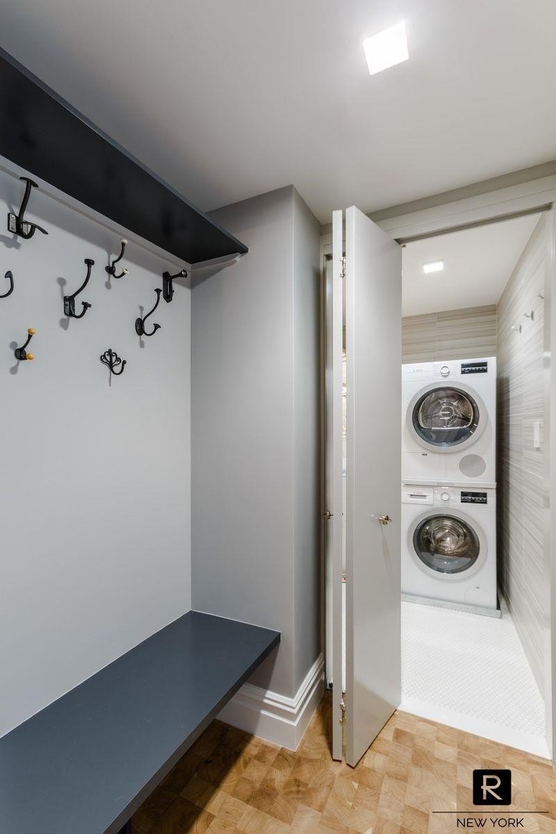Exceptional gut renovated Loft configured as a one bedroom, one and half bathroom apartment with an additional 275 sf of mezzanine space. The loft has undergone a meticulous gut renovation with painstaking attention to preserving many of the original architectural details like the exposed brick walls and steel columns. This expansive 1155 sq ft loft faces west with unobstructed views of the NYC skyline and East River thru three oversized new double-hung double pane windows in perfect portion to the 11ft high ceilings. There are genuine white oak hard wood floors throughout and custom reclaimed wood barn doors on the bedroom. In addition to all new mechanical and electric throughout, the loft has been wired to accommodate a projector and screen. The exquisite Kitchen has a super-sized breakfast bar, fully equipped with stainless-steel appliances including a dishwasher and wine cooler. There is a beautiful full bathroom with high-end designer fixtures, spacious standup shower with rainfall shower head and hand sprayer. An Ultra-modern designer fixture half bathroom is situated perfectly for entertaining. Both bathrooms feature radiant heat flooring. The entry vestibule has a bench, shelve and multiple coat/hat hooks to facilitate your departure and arrival. Directly adjacent is a tile clad mudroom with mechanicals and a stacked washer/dryer. 50 Bridge Street is in a prime Dumbo location at the Corner of Water and Bridge Street. Built in 1904 by the Kirkman & Son Soap Company it was originally a soap factory and warehouse. Situated in the DUMBO Historic District, the building was converted to condominiums in 2004 and still exhibits many of the coveted Industrial Era architectural characteristics. The building offers residents numerous amenities including a part-time doorman (8 am to 8 pm), laundry facility and a furnished roof deck with Manhattan skyline views. There are also bike racks and storage units available for a rent in the basement. In recent years DUMDO has really come a long way, there is now an abundance of dining, shopping and cultural options just steps away set against the backdrop of the Brooklyn Bridge Park. Also in close proximity is the F, A, & C subway lines, and the East River Ferry. This special Loft must truly be seen to be appreciated, just call, just email us for a private viewing.