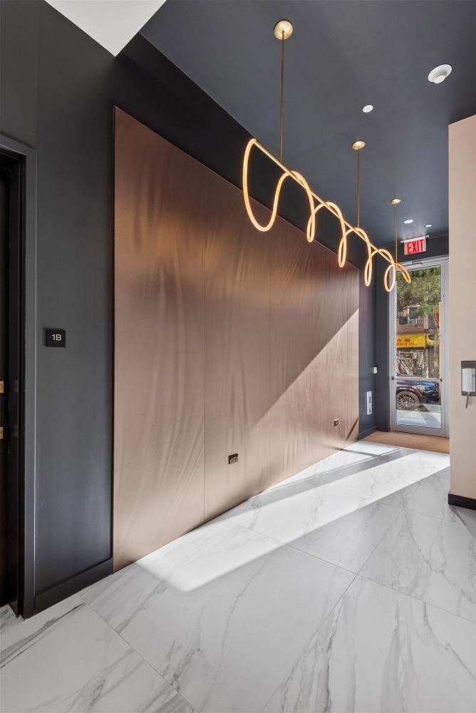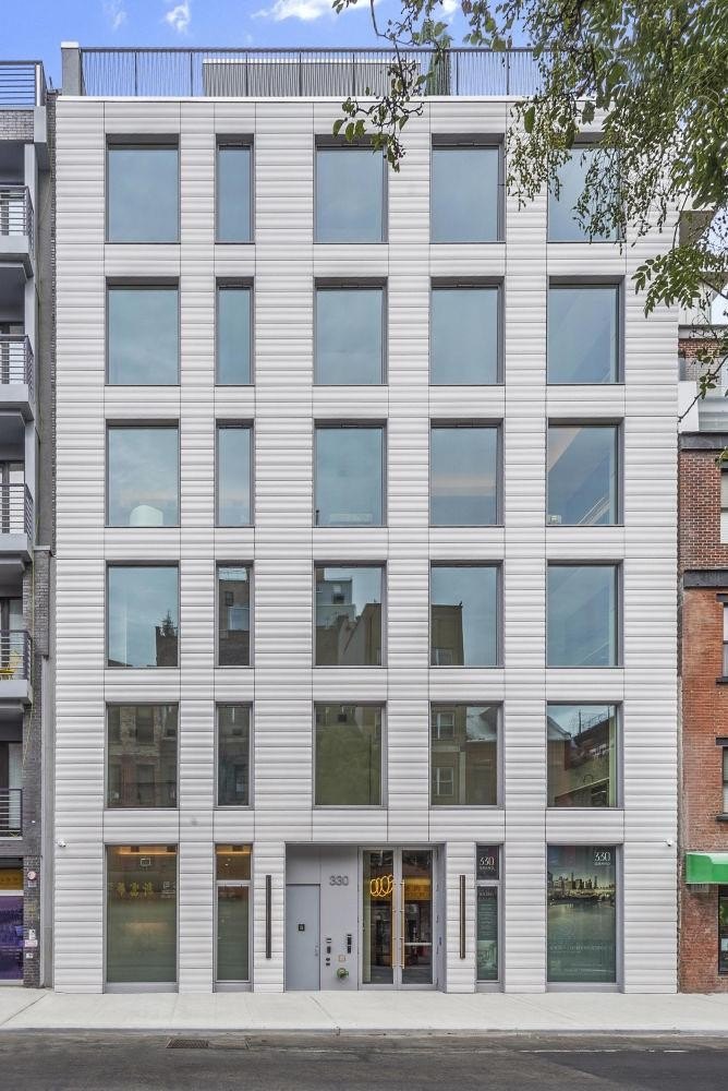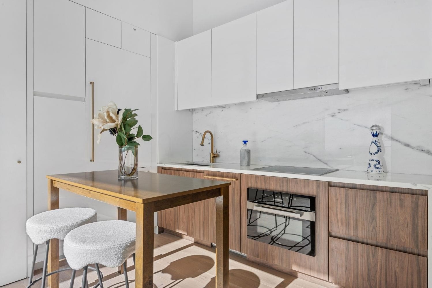 Introducing an exquisitely designed 1-bedroom, 1.5-bathroom duplex garden residence at 330 Grand, the Lower East Side's premier boutique condominium - offering an unparalleled urban lifestyle with seamless access to Downtown Manhattan. Designed by award-winning architect Alex Loyer Hughes AIA of Kurv Architecture DPC, 330 Grand is a striking testament to modern design, featuring a bold ventilated rain screen fa ade adorned with German Terra Cotta panels. This captivating exterior harmonizes with the traditional and eclectic surroundings, gently raising the bar for contemporary living. The fit and finish of 330 Grand create an experience that truly stands out among boutique developments in Lower Manhattan, offering a refined touch to urban life. Enter into an expansive open-plan living area that seamlessly blends the living room, dining area, and kitchen. Bathed in natural light from high-performance European oversized windows, the space boasts stunning cityscape views, wide-plank natural oak floors, alluring cove lighting, and soaring 12'-6" ceilings on the upper ground floor level. A built-in storage wall enhances both functionality and style. The sleek corner chef's kitchen is a culinary dream, featuring organic tones and premium finishes. Enjoy an integrated Blomberg refrigerator, 600 CFM recirculating ventilation, and top-of-the-line Miele appliances, including a dishwasher and eco-friendly induction cooktop. Natural Imperial Danby marble countertops and backsplashes complement custom white lacquer and walnut veneer cabinetry, while a satin brass Signature faucet adds a touch of elegance. The bedroom comfortably accommodates a queen-size bed and features multiple reach-in closets, along with an oversized backyard patio, ideal for outdoor lounging and urban gardening. A pocket door opens to a luxurious bathroom adorned with large-format porcelain tiles, double vanities topped with Sapienstone Calacatta Macchia Vecchia countertops, mirrored Kohler medicine cabinets with built-in cove lighting, a bidet toilet seat, and a walk-in shower equipped with both a rain showerhead and a handheld shower bar, all complemented by linear drainage. The lower level is thoughtfully connected by a custom designed in-unit stairway that allows natural light to flow throughout the downstairs, creating a versatile space perfect for a cozy living area, home office, or flexible use. Completing this exquisite home is a stylish large half bathroom and a convenient in-unit washer/dryer. Thoughtfully curated amenities include a virtual doorman, secure package room, private storage units, a state-of-the-art fitness center, and an inviting rooftop terrace complete with Kenyon BBQ grills. The stylish lobby, featuring Italian Luce Gold wall panels, luxurious Calacatta natural stone flooring, and chic lighting, offers a warm welcome to residents and guests alike. Enjoy the vibrant neighborhood filled with charming cafes, trendy dining, and an electrifying nightlife scene. 330 Grand's prime location is nestled in a bustling pedestrian zone, surrounded by an array of exceptional restaurants, bars, cafes, and shops. Explore culinary delights at Essex Market, Trader Joe's, Scarr's Pizza, Dirt Candy, and Russ & Daughters, all within walking distance. Nearby green spaces include Sara D. Roosevelt Park and Seward Park, with adjacent neighborhoods such as Chinatown, Two Bridges, the East Village, The Bowery, and Nolita waiting to be explored. With easy access to subway lines including the 6, B, D, F, J, Z, N, Q, R, and W, commuting is a breeze. And yes, pets are welcome!