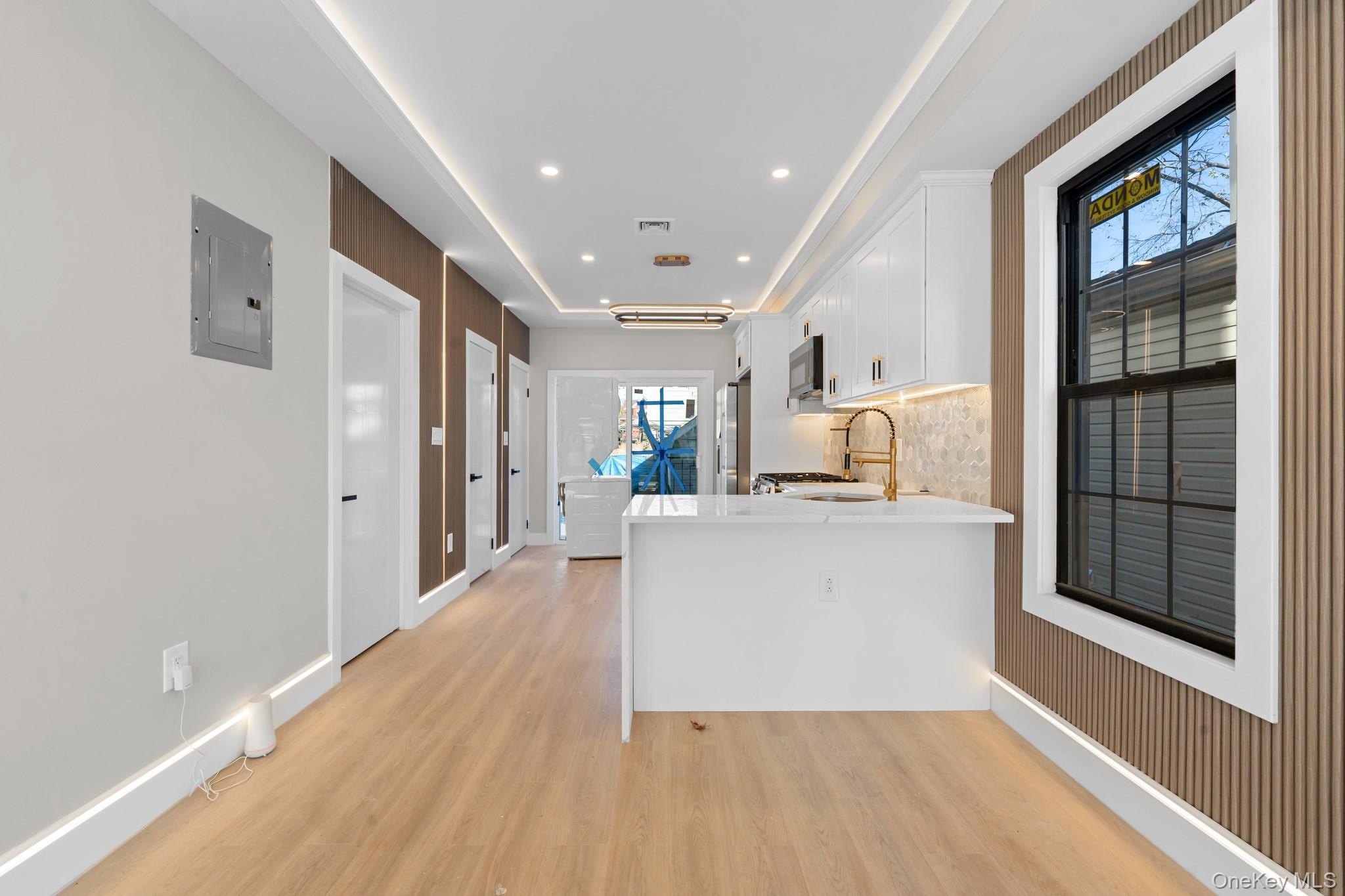 Space, style & modern luxury come together at 104-11 188 Street! A meticulously renovated single family tucked away on a beautiful tree lined street of Hollis. Sitting on a 27x100 lot featuring a wide private driveway, garage, and tons of yard space to enjoy outdoor gatherings. Open the door and enter an expansive sun drenched, modern, open concept living/dining area which provides great space for entertaining. Tucked away towards the rear of the first floor the stunning granite kitchen any chef will love awaits you. Kitchen features floor to ceiling custom cabinetry, adorned with a full fleet of stainless steel appliances, island for bar stool seating and leads out into lush rear yard. Powder room on first floor for your guest. Up a flight of stairs onto the second floor 3 spacious bedrooms awaits you, each equipped with ample closet space. Down the hall a fully tiled bathroom is adorned with state of the art wall & floor tiles. The high ceiling full finished basement has both interior and exterior access and can easily be used as the perfect in-law suite, guest quarters, storage space, media den, or additional recreational space. Fully gutted and remodeled by an expert team of contractors and designers featuring select wide oak wood flooring, recessed lighting, brand new electrical, heating, plumbing and central HVAC systems. 104-11-188 Street is conveniently located with close proximity to major transportation which makes commuting a breeze. Just off Farmers Blvd, Liberty Avenue, Hollis Avenue, Jamaica Avenue. Short blocks to schools, shopping centers, restaurants, cafes, parks and many other vibrant neighborhood amenities.
