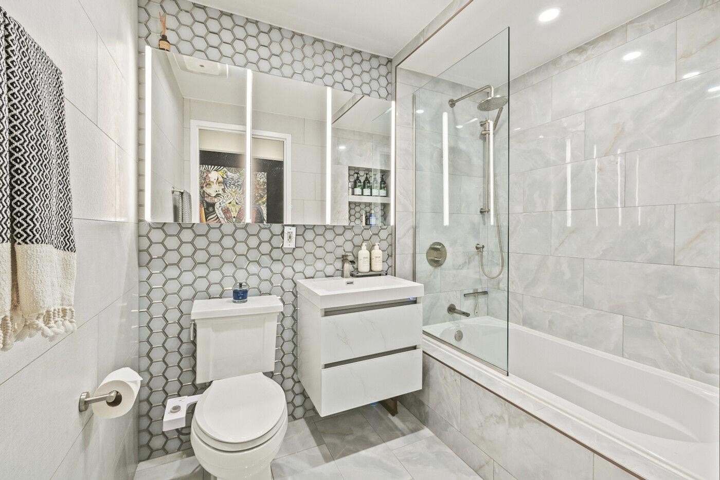 Step into residence 1A at 218 N 8th Street, a meticulously renovated duplex exuding modern style and thoughtful design. The front windows have custom wraps so no one can see in, but you can see out! Upon entry, a hall foyer welcomes you, leading to a bespoke staircase adorned with chic interior lighting that sets the tone for this one-of-a-kind residence. The kitchen has been completely reimagined with top-of-the-line Bertazzoni appliances, Bosch dishwasher, double-door refrigerator/freezer, and impeccably crafted Viatera quartz countertops complemented by a stylish backsplash. The dining area is complete with a custom built in live edge oak epoxy resign and imported Turkish wood. The expansive living room captivates with a wall of windows, mirrored from the outside for complete privacy and graced with Black Tempal stone windowsills and Hunter Douglas's pirouette shades. A focal point of the room is the custom-built electric fireplace, crowned with Black Tempal stone sitting in front of a venetian marble plastered accent wall. The luxurious full bath features a deep soaking tub and a wall-spanning anti-fog, led lit mirrored medicine cabinet and a NuTone ChromaComfort bathroom exhaust fan with sensonic bluetooth speaker and LED light. There is no shortage of texture with white linen and onyx grey porcelain slabs complemented with mosaic mirrored hexagons tiles. Descending the staircase in rich red oak wood which doubles as a striking art installation, leads you to the ultimate retreat. Currently configured as an oversized one-of-a-kind primary suite, it showcases a sunken oak bed, bespoke oak nightstands, and soaring ceilings adorned with Venetian marble plaster. A statement wall dressed in dark snakeskin plaster adds a touch of drama, while Philips Hue color-changing lights with dimmers soar above with Sono's speakers and an amp to set the tone. The suite includes a spacious walk-in closet fitted with built ins, full wall mirrors on two sides and a European barn door with frosted glass. The remote-controlled Hunter Douglas shades make life easy to let as much or as little light in as you desire. The lower level doesn't stop there, there is ample space for a home office or personal gym beneath the staircase and the convenience of a washer and dryer located just outside the unit. Located in an exclusive 4-story, 7-unit boutique condominium masterfully crafted by renowned architect Scarano, 218 North 8th Street offers a refined living experience. Residents can unwind and entertain on the communal roof terrace, enjoying sweeping views of Manhattan, including a direct sightline to the iconic Empire State Building. The location is unparalleled, mere moments from Bedford Street subway station with direct access to Manhattan via the L-train. Surrounding amenities include Equinox, Whole Foods, the Apple Store, Trader Joe's, charming cafes, upscale bars, and a diverse array of shopping options from local boutiques to high-end retailers like Chanel and Hermes. Indulge in the pinnacle of urban sophistication and convenience at this exceptional address, where every detail has been curated for discerning tastes. Please note this is a legal studio. Tenant in place until March 31st.