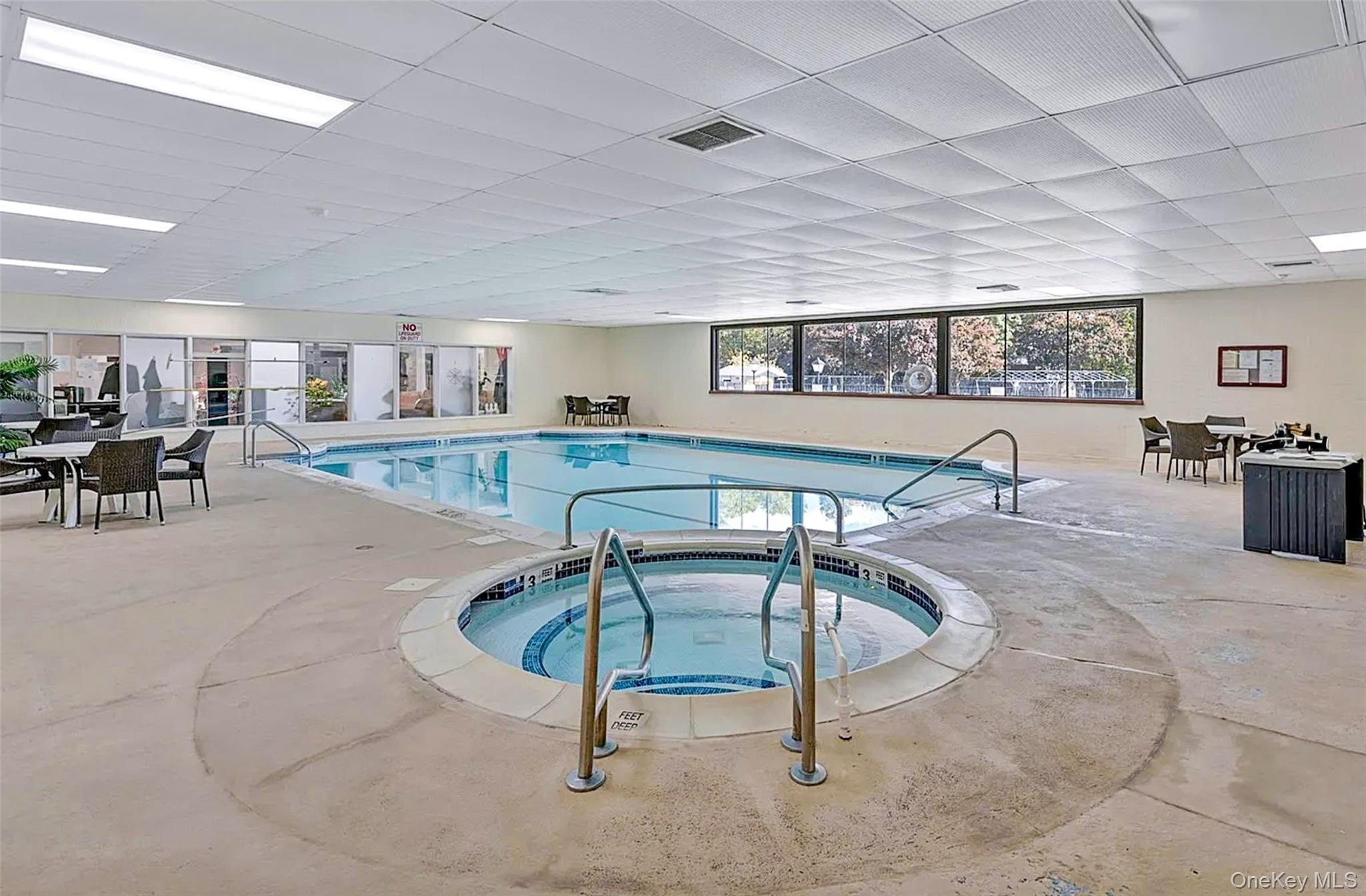 Discover this charming first-floor 2-bedroom condo in the highly sought-after Blue Ridge Condominiums, a gated community with fantastic amenities. Enjoy an updated kitchen with granite countertops, tiled floors, stylish backsplash, and a walk-in pantry. The home also features a separate laundry area with a brand-new 2-in-1 washer, a large Primary bedroom with a walk-in closet and a private enclosed patio. Community amenities include a nine-hole golf course, tennis, playgrounds, bocce ball, billiards, a clubhouse cafe, gym with locker rooms, indoor pool, outdoor pool, and a Tiki bar. With low taxes, 24-hour security, and close proximity to major highways, shopping and the LIRR, this home offers comfort and convenience in one perfect package.
