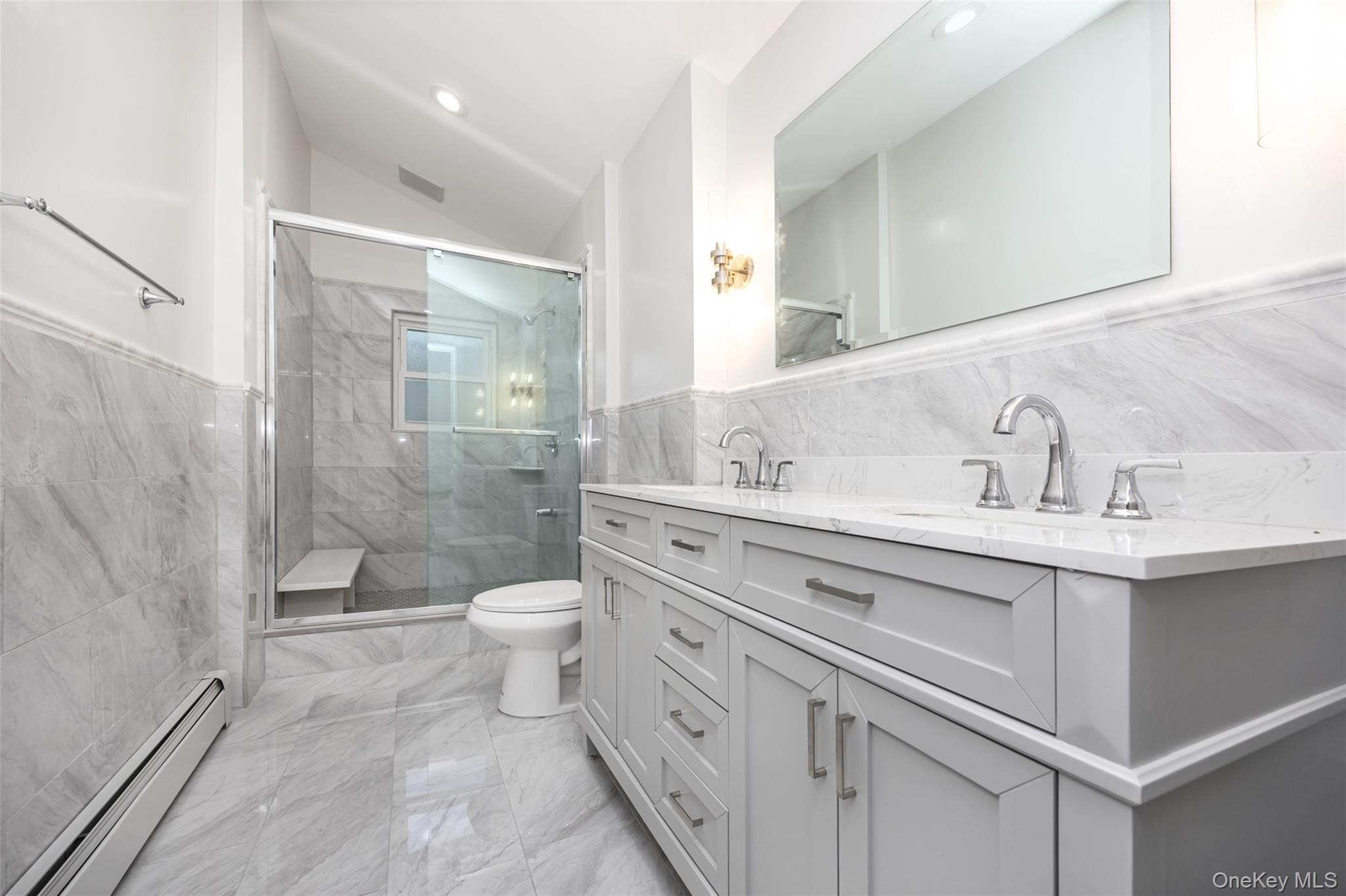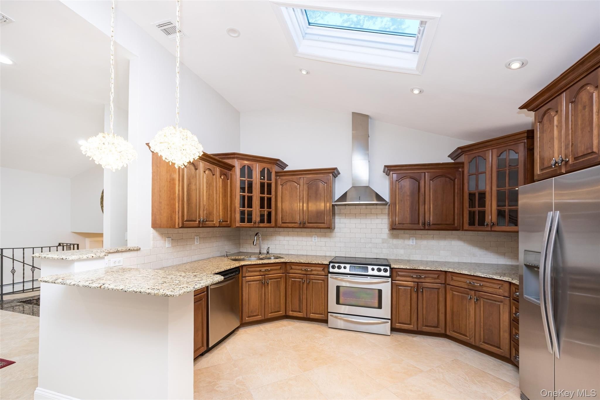 Renovated 4-bedroom, 3.5-bath residence offering an open and bright layout enhanced by skylights and hardwood floors throughout. The modern granite kitchen flows seamlessly into the spacious living and dining areas, with marble stairs leading to a private multi-level deck for outdoor enjoyment. Additional highlights include a 12-zone sprinkler system covering the front, side, and backyards, a primary suite with walk-in closet, terrace, and full bath, and a finished basement providing extra living or recreation space. The home also features a new roof and boiler, central air conditioning, and ample private parking. Conveniently located near beaches, parks, golf courses, and the LIRR, offering easy access to recreation and commuting options.