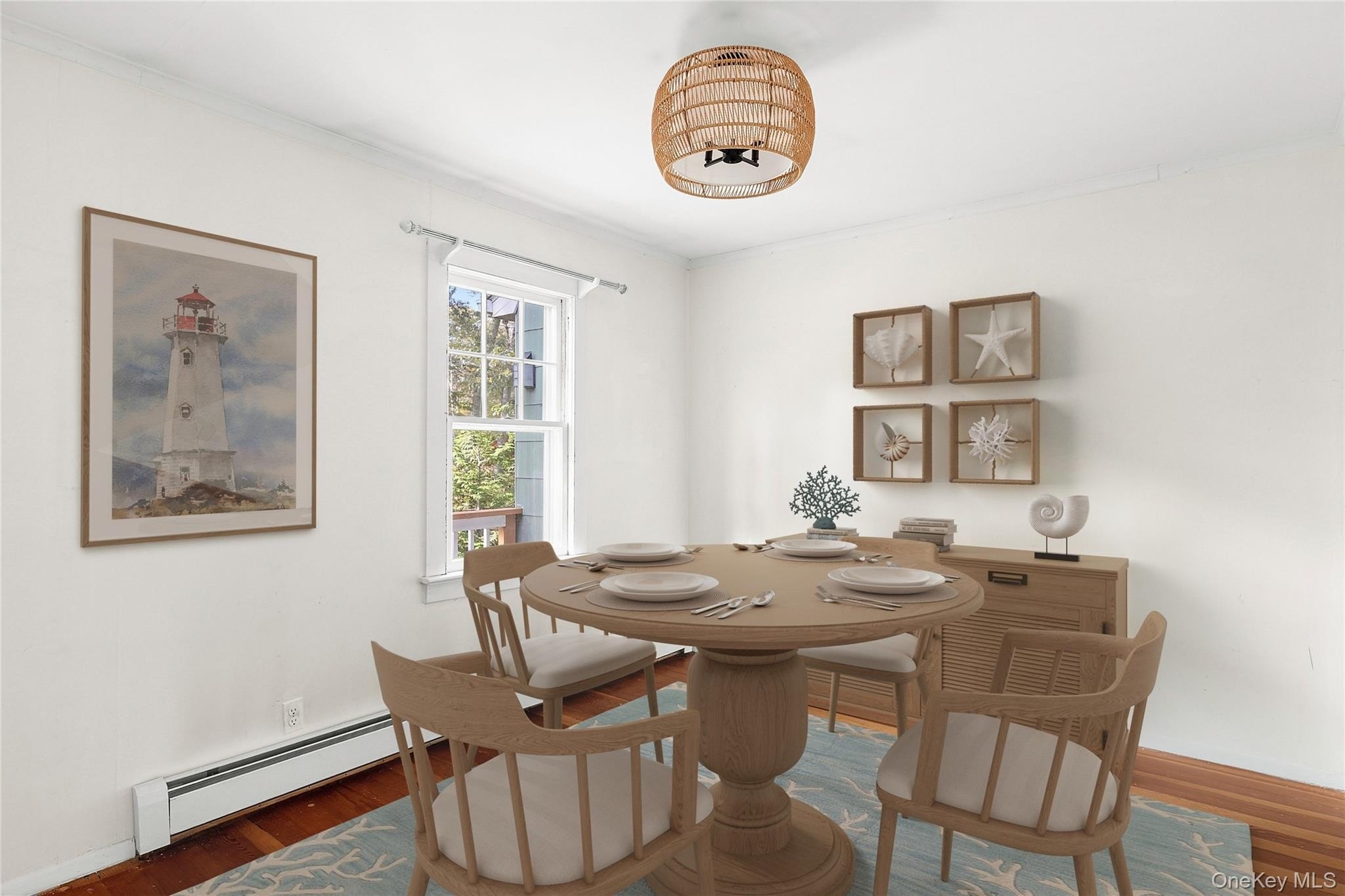Here's your opportunity to own a charming beach cottage nestled on a quarter-acre lot in Laurel. This home features a delightful enclosed front porch that opens into a cozy living room with a wood-burning fireplace. The layout includes an eat-in kitchen, a formal dining room, a primary ensuite bedroom with access to the backyard, a guest bedroom, and an additional full bath. Recent enhancements to the property include a new back deck that's perfect for entertaining, as well as updated lighting fixtures and landscaping. The spacious and private yard has ample room for a pool. The Laurel Links Golf Course is directly behind the property, providing scenic views. Additionally, the residence offers a deeded right-of-way to the beautiful Peconic Bay just east on the boulevard. It is conveniently located near Love Lane and all that the North Fork has to offer, including award-winning vineyards, marinas, renowned restaurants, farm stands, and beaches.