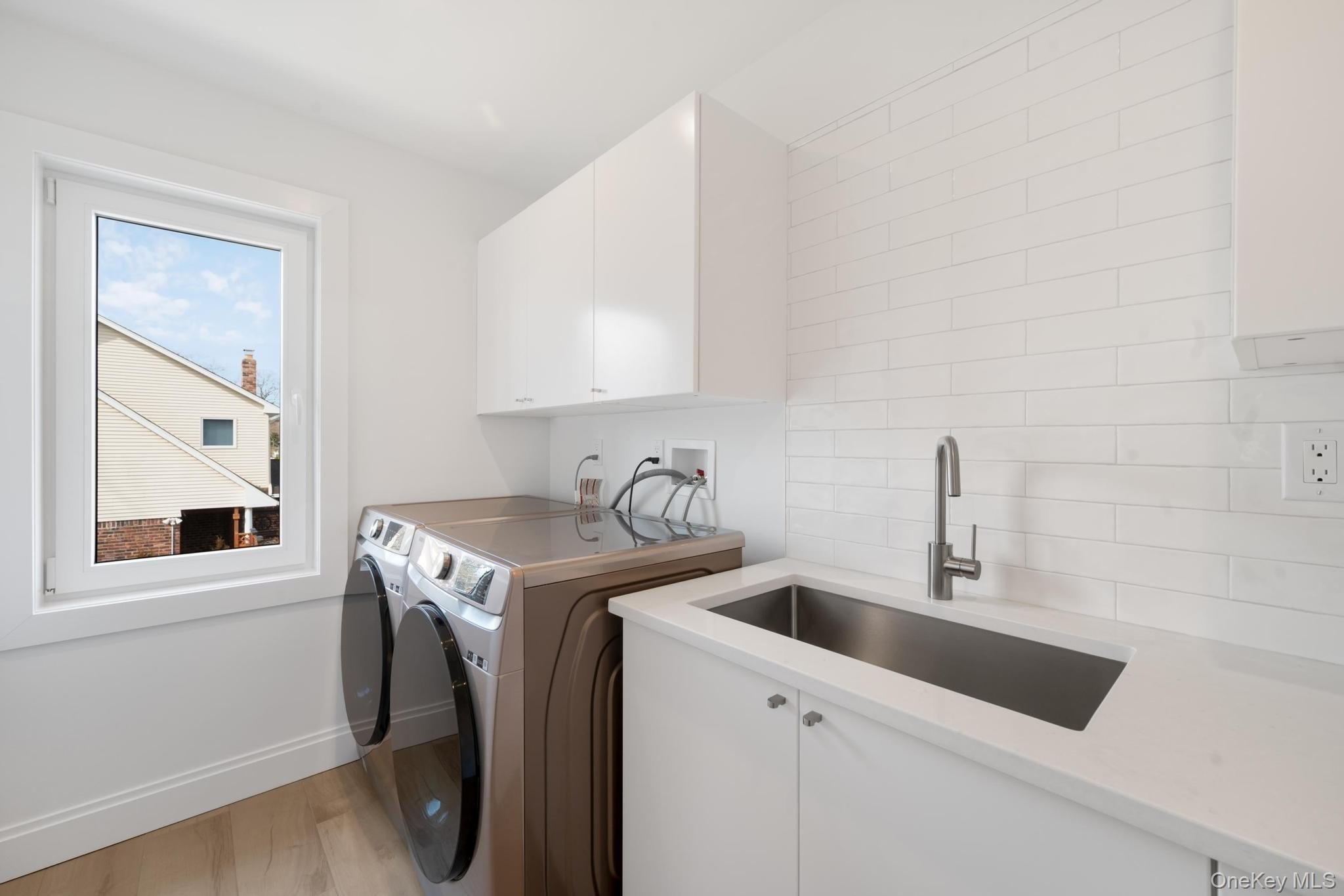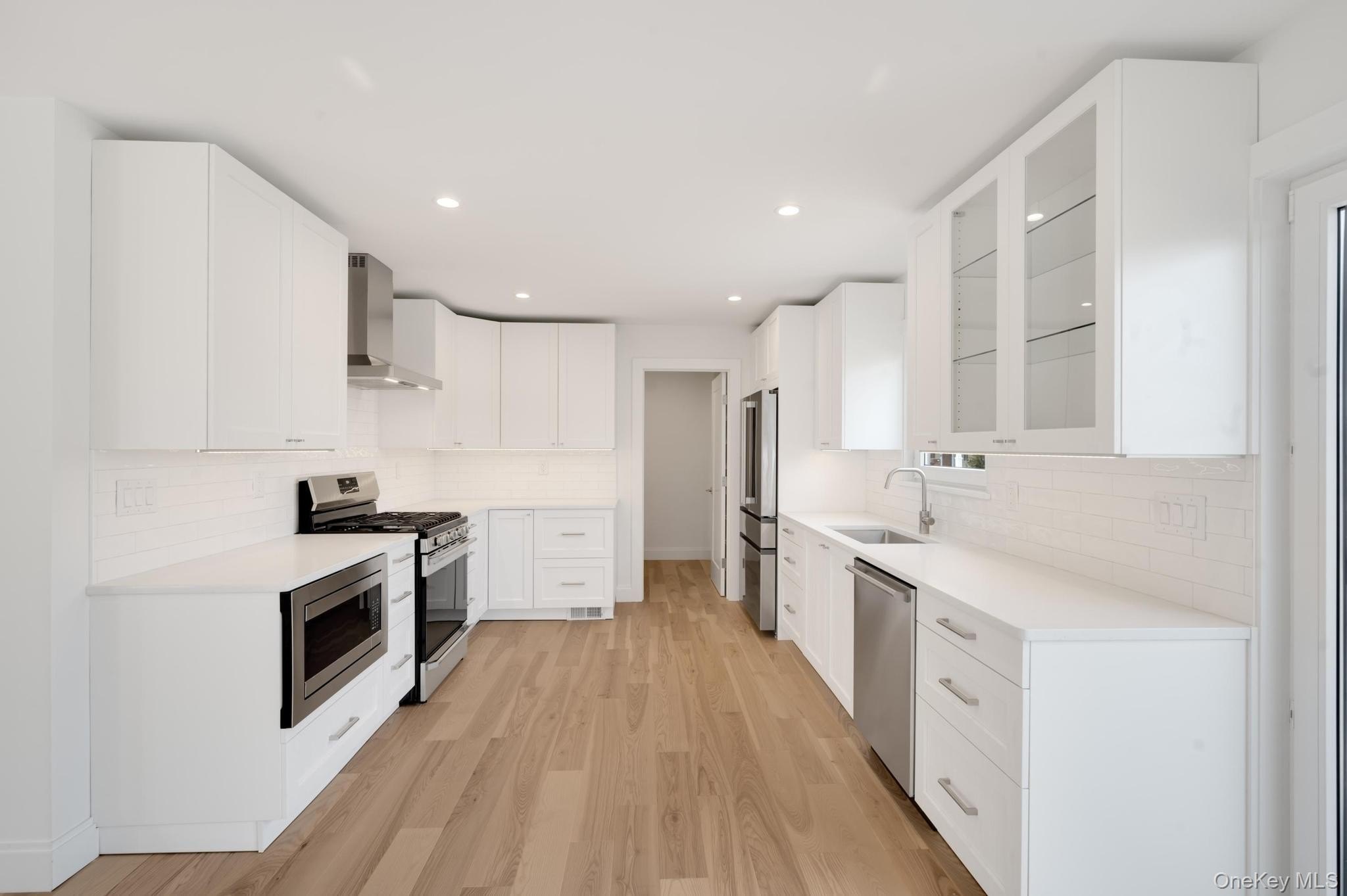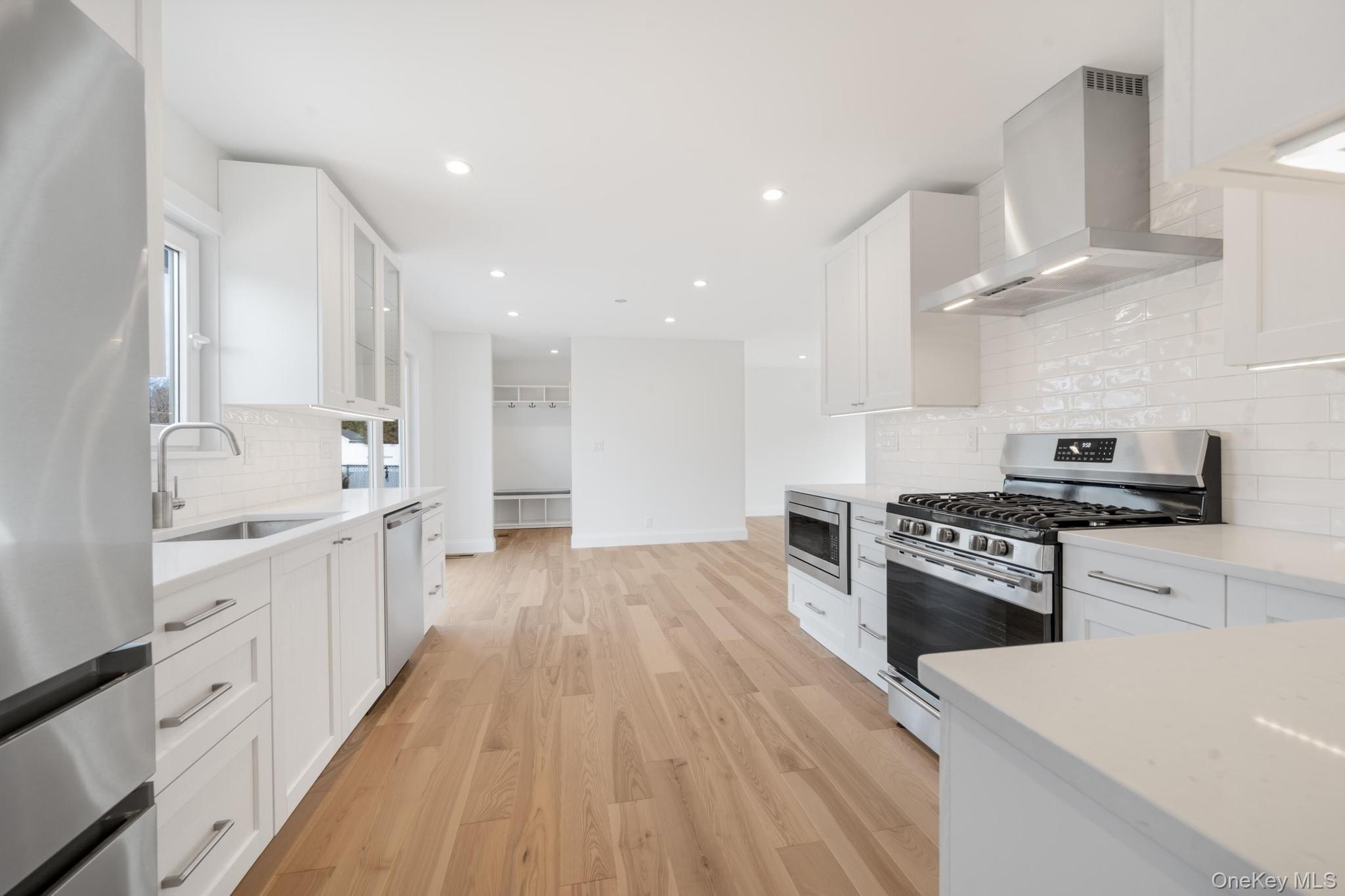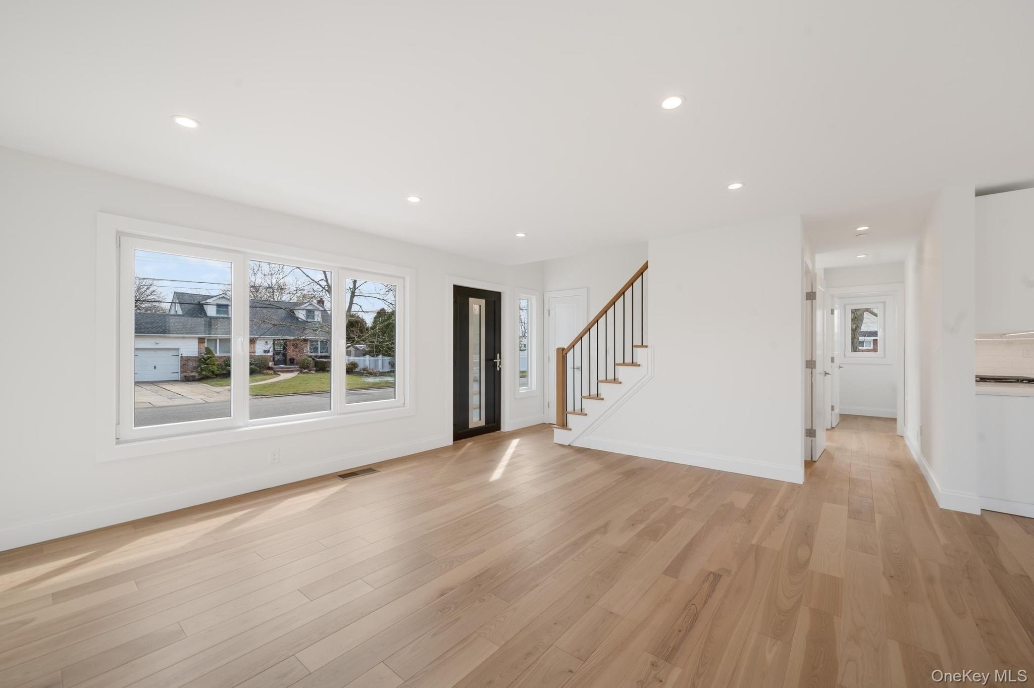 This stunning home in the desired Elwood School District completely remodeled in 2023 inside and out with premium finishes, quality updates, and magnificent workmanship. New roofing, windows, wide-plank hardwood flooring, interior doors, insulation, and a new heating and cooling system ensure comfort and efficiency year-round. Gourmet kitchen featuring quartz countertops, stainless steel appliances, a walk-in pantry with butler's pantry and modern fixtures. The adjoining open-concept family room is filled with natural light, creating the perfect space for relaxing or entertaining. Upstairs, all four bedrooms are generously sized. The impressive primary suite offers a walk-in closet and private ensuite bath, while the remaining bedrooms share a beautiful full hall bath. Features convenient and roomy second-floor laundry room. Additional highlights include a welcoming mudroom, a chic powder room, a den, and a finished lower level with bathroom - perfect for a playroom, home gym, or home office. The exterior offers a one-car garage, ample driveway parking, and landscaped grounds ready for your personal touch. Move right in and enjoy modern living in a prime East Northport location close to schools, shops, and transportation.