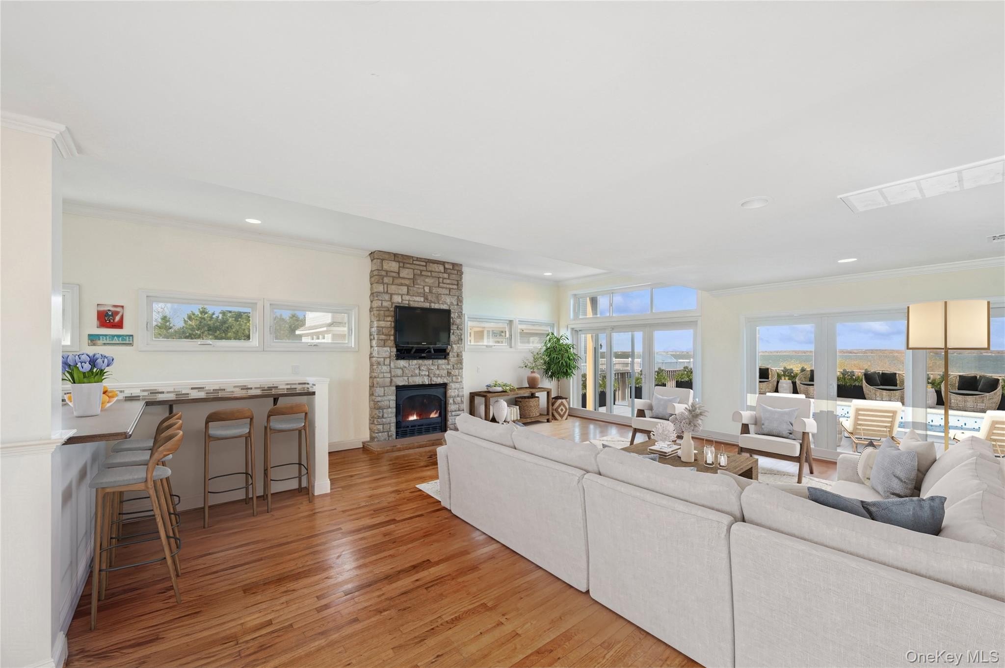 Experience the perfect blend of coastal charm and modern comfort in this relaxing 7 bedroom, 4bathroom waterfront retreat. Nestled on nearly one acre (0.92 acres) of prime bayfront property, this 2,184 sq. ft. home was thoughtfully designed to maximize both indoor and outdoor living. Enter into to an inviting, open-concept layout that captures panoramic bay views from nearly every room. The sun-drenched living spaces feature high ceilings, abundant natural light, and seamless flow to an expansive deck-ideal for entertaining, dining al fresco, or simply soaking in the stunning sunsets over the water. The gourmet kitchen offers ample space for cooking and gathering, while the four full bathrooms ensure comfort and privacy for family and guests. Outside, the amenities define true waterfront living: enjoy your heated in-ground pool, hot tub, private dock, and beach rights-perfect for boating, paddle-boarding, or quiet mornings by the shore. With its beach house style, two-story design, and premium bayfront location, this property offers a rare opportunity to own a slice of coastal paradise. Whether as a full-time residence or vacation getaway, this home is where relaxation meets seaside living.