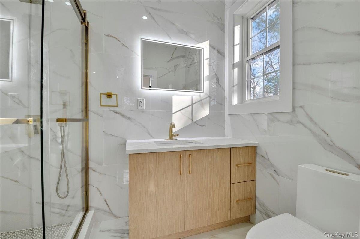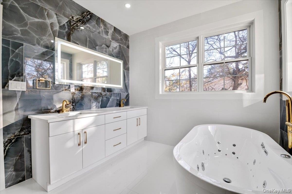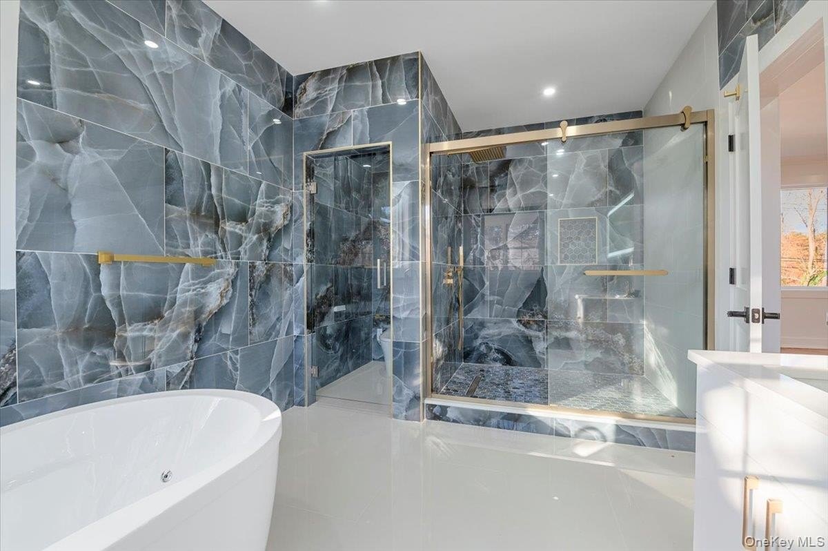 Welcome to 1130 Carlls Straight Path, a 5,600 sq ft brand-new construction home and experience unmatched modern luxury. Designed with exceptional efficiency in mind, the residence is built with 2x6 spray-foam insulated walls, energy-efficient heat pumps, and a 300-amp electrical service equipped with a Tesla charger and ready for future solar integration. The gourmet kitchen serves as the centerpiece of the home, showcasing a waterfall stone island with a matching full-height backsplash-an entertainer's dream. Five generous bedrooms and seven elegant bathrooms provide abundant space and comfort. The primary suite is a spa-inspired retreat, featuring the ANZZI Lori Series 6 ft Whirlpool and Air Bath Tub with 18 air injectors and 12 hydro-massage jets, paired with premium Kohler fixtures and state-of-the-art smart toilets in both the primary bath and powder room. The home also integrates advanced technology throughout, including a full security camera system and a striking steel entry door equipped with a smart lock, doorbell, and fingerprint access. A fully finished lower level with a separate entrance and full bath adds exceptional versatility and can be used as separate living quarters for family. Set on a full one-acre property, this home offers exceptional outdoor space and limitless potential. The expansive grounds provide ample room for a future pool, complemented by beautifully finished paver driveways and a private sports court perfect for recreation. Located in the Half Hollow Hills School District, the property sits just steps from local schools and Otsego Park, offering unparalleled convenience for families. With a 13-zone sprinkler system and thoughtfully designed landscaping, the outdoor environment is as functional as it is impressive.