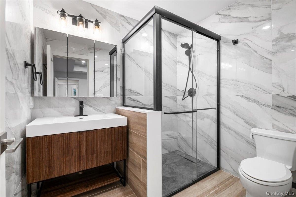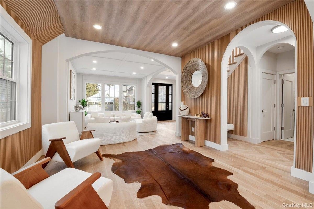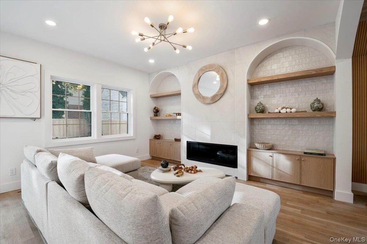 Welcome to this stunning new construction nestled in the heart of Port Washington, just a short walk to the train and town. This architectural gem was custom designed and crafted with unparalleled quality, showcasing attention to detail throughout the entire house. As you enter, you'll be greeted by an impressive double-height entry foyer, a formal living room and a great room with a fireplace both connected by a casual sitting room. Beautiful archway designs show timeless elegance. This state-of-the-art kitchen features top-of-the-line appliances, custom soft-closing cabinetry, a large center island, and an adjoining breakfast area, offering a chef's culinary dream. A glamorous wet bar elevates the formal dining room, perfectly created for entertaining. The upper level features the master suite, including a walk-in closet and a luxurious spa like bath with a freestanding tub. Additionally, two bedrooms share a bathroom and another suite. The finished basement provides additional living and recreation area with a custom-built theater, a bedroom, gym, full bathroom, laundry room and an outside entrance. This home is drenched in sunlight, and sits on a flat property. Enjoy close proximity to the town, restaurants, parks, golf, beaches, and LIRR.