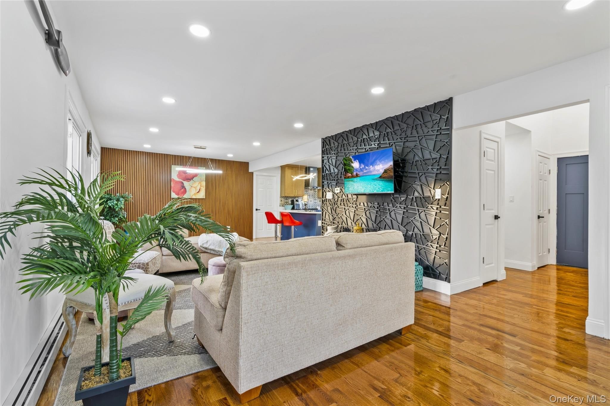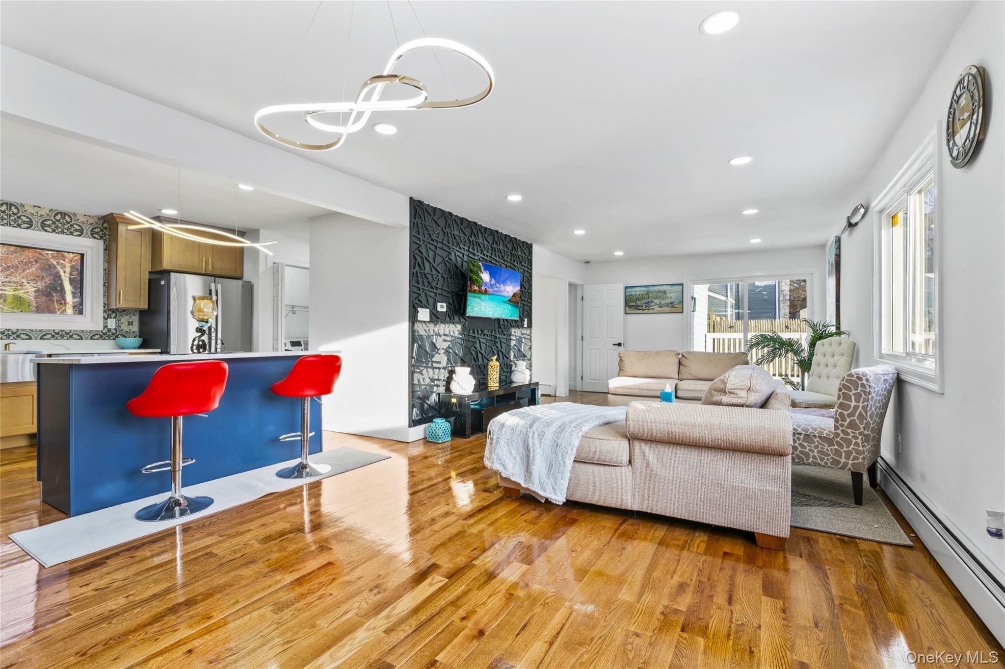 Welcome to 8 Marc Dr, locatd in the heart of Ridge, A beautifully updated, move-in-ready home on a quiet street, This spacious residence offers 4 bedrooms and 3 bathrooms, with an attached 1car garage set on a third of an acre lot adjacent to a preserverd local park. The main level boasts a bright living room and updated kitchen featuring quartz countertops, a stylish blue island, and brand-new appliances. Enjoy the convenience of a first-floor washer and dryer, along with new recessed lighting and fresh white paint throughout the home for a clean, modern look. The house includes a full finished basement with an outside entrance and a full bathroom, providing excellent potential for guest space, recreation, or extended living.A first-floor washer and dryer add to the home's practical design. along with a new driveway and a fully fenced yard offering privacy and excellent outdoor potential. Additional updates include new plumbing, a new boiler, and new window A/C units, ensuring comfort and efficiency.