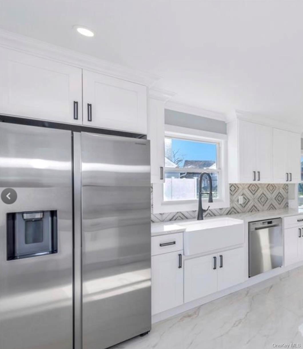 Newly Renovated and expanded Colonial will be completed just in time for the holidays. Designer high end finishes, Five bedrooms, Three full bathrooms on .54 acres located on cut-de-sac in Three Village School District. 2 Car garage, 2700 sq ft. First floor includes Dining room, Eat in kitchen, Living Room, Den, Bedroom and full bathroom. Huge primary suite with two walk in closets and luxury bathroom. 3 additional bedrooms, Laundry room and full bath on second level. Full unfinished basement. See plans for details. Hardwood floors & Recessed lighting throughout. Kitchen features White Shaker Cabinets, Quartz Countertops, stainless steel appliances, Center Island, Walk in Pantry.