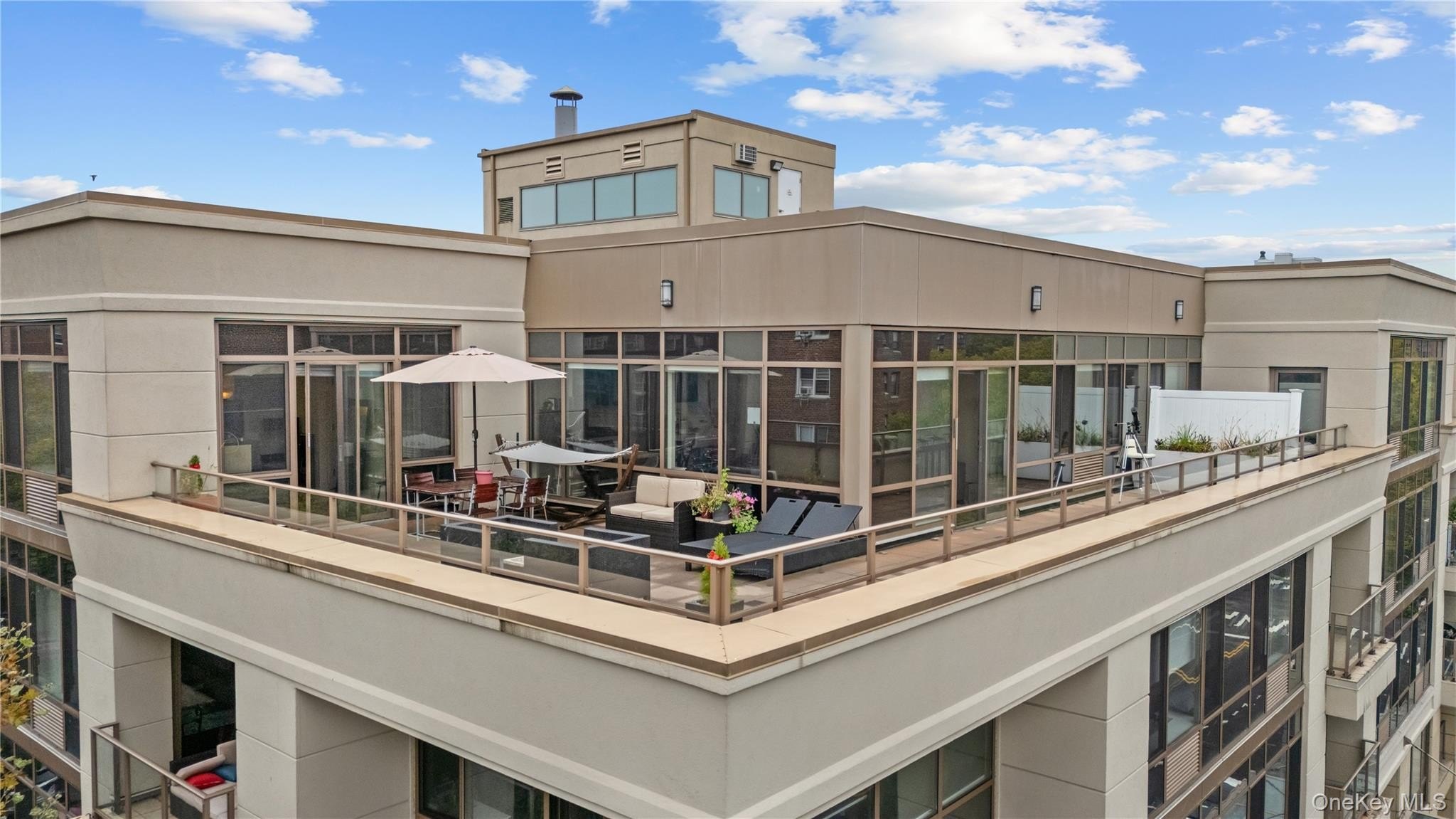 Welcome to this stunning 2-bedroom, 2-bathroom residence at the coveted NOVO 64. Offering over 1,291 sq. ft. of thoughtfully designed living space, this corner condo is bathed in natural light through floor-to-ceiling windows and features hardwood floors, an in-unit washer and dryer, and a modern open layout. The highlight of this home is the impressive 890 sq. ft. private terrace, an expansive outdoor oasis perfect for entertaining, relaxing, or simply taking in serene city views. It offers the rare feeling of house-style living while enjoying the convenience and security of a luxury condominium. NOVO 64 is a full-service building with an array of premier amenities, including a 24-hour doorman, fitness center, media and social rooms, sauna, massage room, resident lounge, patio, and storage space. A deeded garage unit is also included with this residence, ensuring secure and easy parking right at your doorstep! Perfectly located near the E, F, M, and R trains, as well as top shopping and dining, this home combines comfort, convenience, and style in one of the area's most desirable addresses.