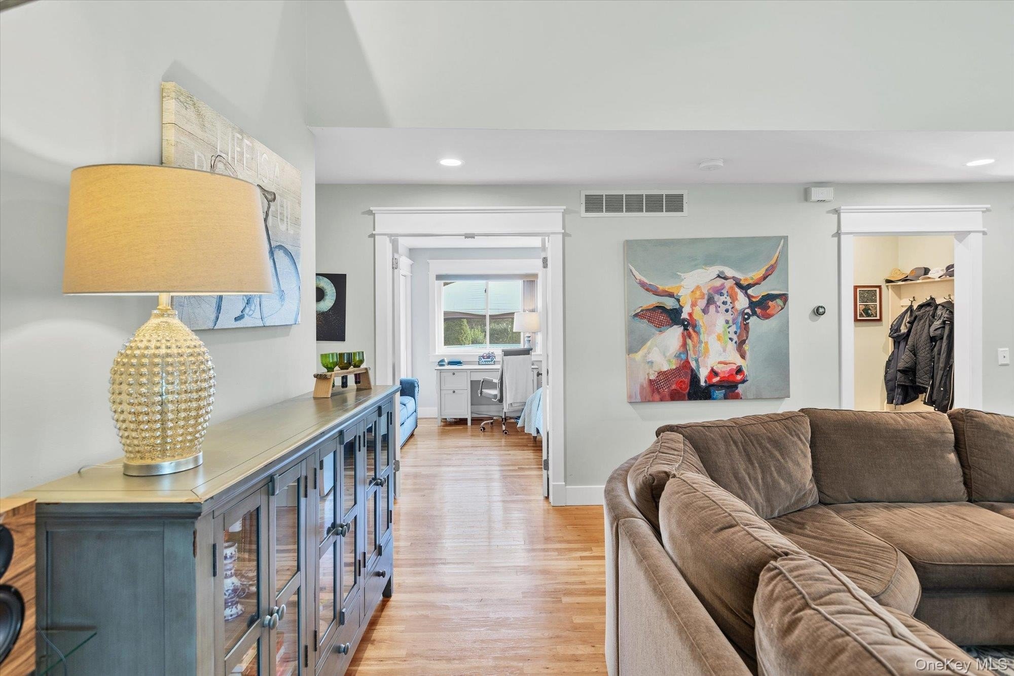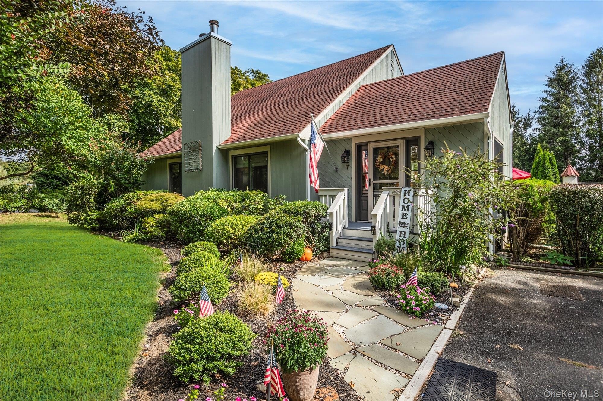 Welcome to your Jamesport Retreat! This meticulously maintained 3-bedroom, 2-bath cedar-clad saltbox contemporary sits in North Wind Estates, at the heart of North Fork wine country. Set on an impeccably landscaped private lot with mature plantings, it features an 18x36 ft pool surrounded by wide decking-ideal for entertaining or relaxing. Inside, the sun-filled living room with wood-burning fireplace and cathedral ceiling opens to the kitchen and dining areas, which flow out to the deck. A flexible third bedroom/office is also on the main floor. Upstairs, two bedrooms overlook the living space below; the primary has its own deck with views of the pool and gardens. Additional highlights include central air, hardwood floors, newer windows, irrigation, custom moldings, and a full basement with outside entrance. Just minutes to fine dining, shopping, glorious sunsets at Iron Pier beach or sugar sand South Jamesport beach, wineries, hiking trails, off roading, and all of the activities the North Fork offers, 7 Eileen Circle is the perfect North Fork getaway or primary home.