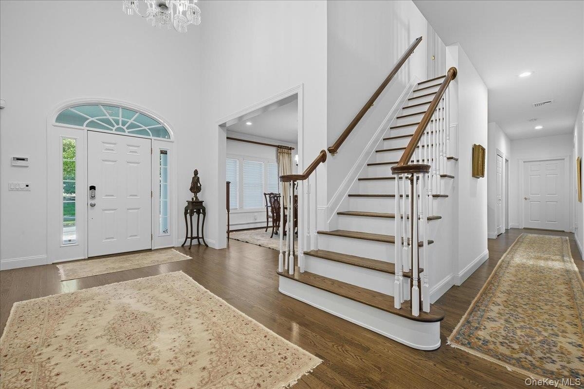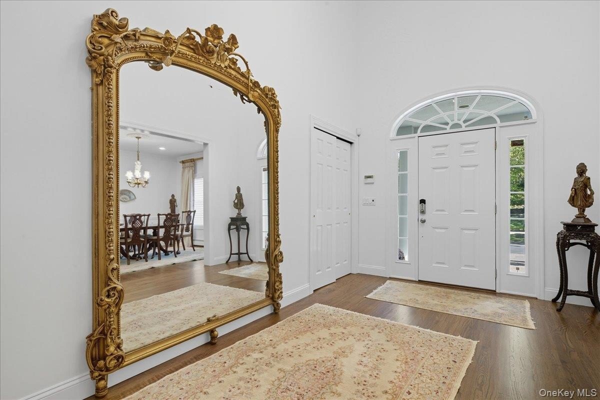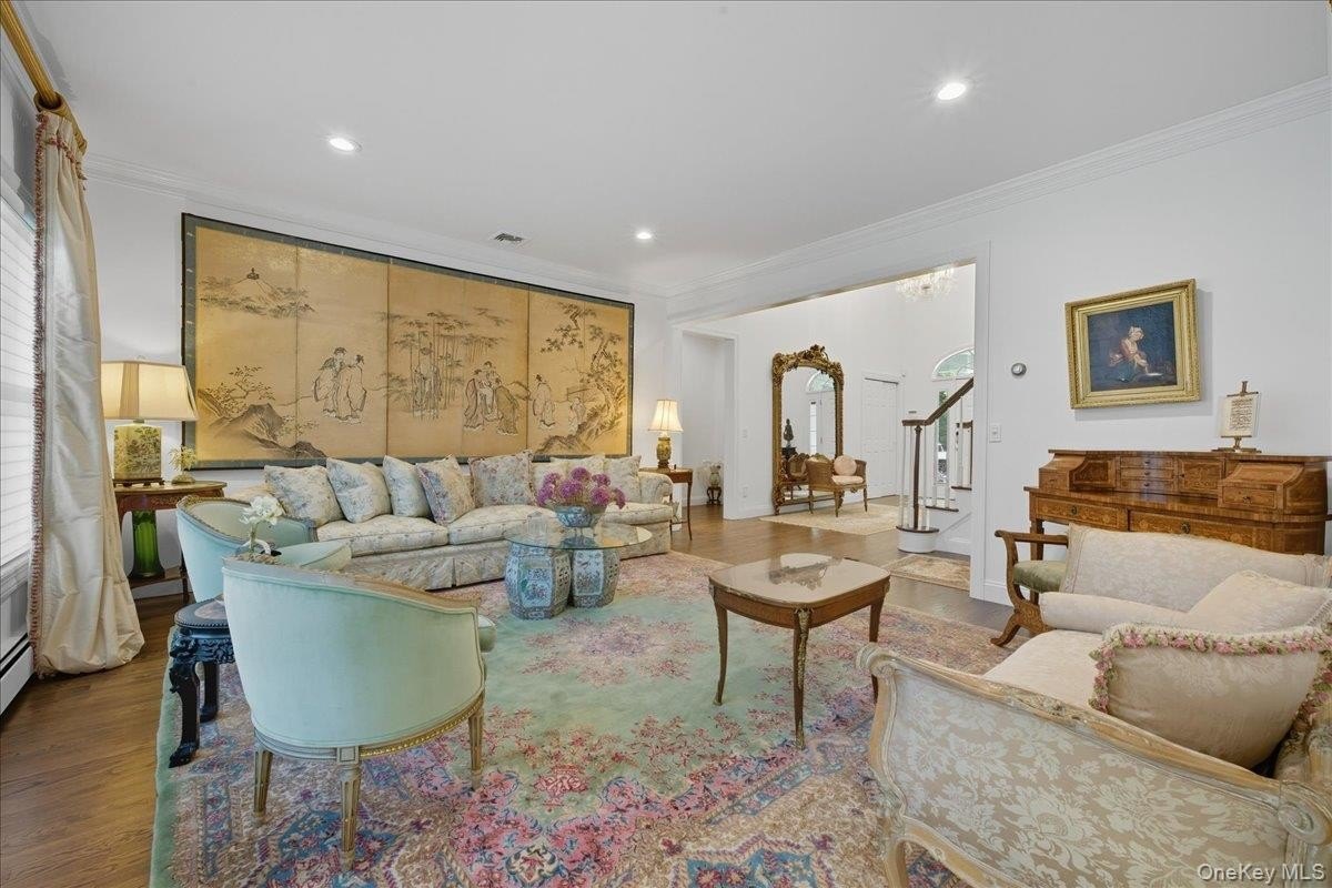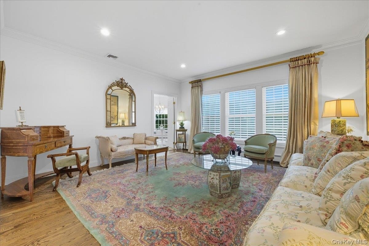 Welcome to 5 Morgan Lane, a stately colonial tucked away in the exclusive and private Morgan Lane enclave of Locust Valley. Situated on nearly 1 acre of bucolic grounds backing onto preserved state land, this elegant 5-bedroom, 4.5-bath home offers over 3,600 square feet of refined living space. The main floor features a grand foyer, formal living and dining rooms, a sun-filled family room with fireplace, a spacious eat-in kitchen, and a desirable first-floor primary suite. Rich hardwood floors, classic millwork, and cathedral ceilings add timeless charm throughout. The second level offers generously sized bedrooms and additional bathrooms, while a full unfinished basement provides endless potential. Outdoor living is equally impressive, with a patio and porch perfect for entertaining or enjoying the tranquil natural surroundings. Additional highlights include central air, natural gas heat, a security system, a 2-car garage, and access via a quiet, private road. Located just minutes from village shops, dining, beaches, and golf courses, this rare offering blends luxury, comfort, and privacy in one of the North Shore's most coveted communities.