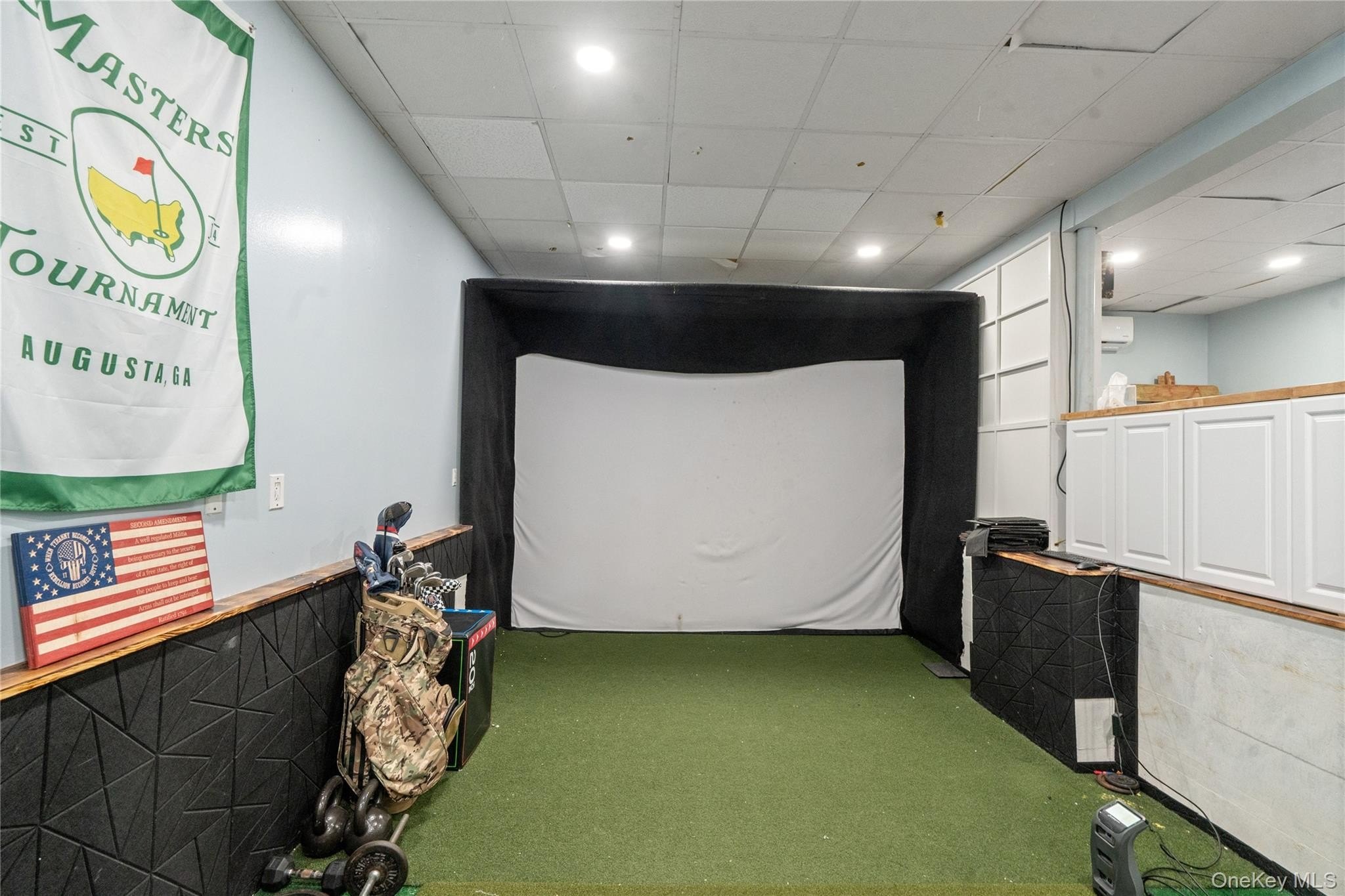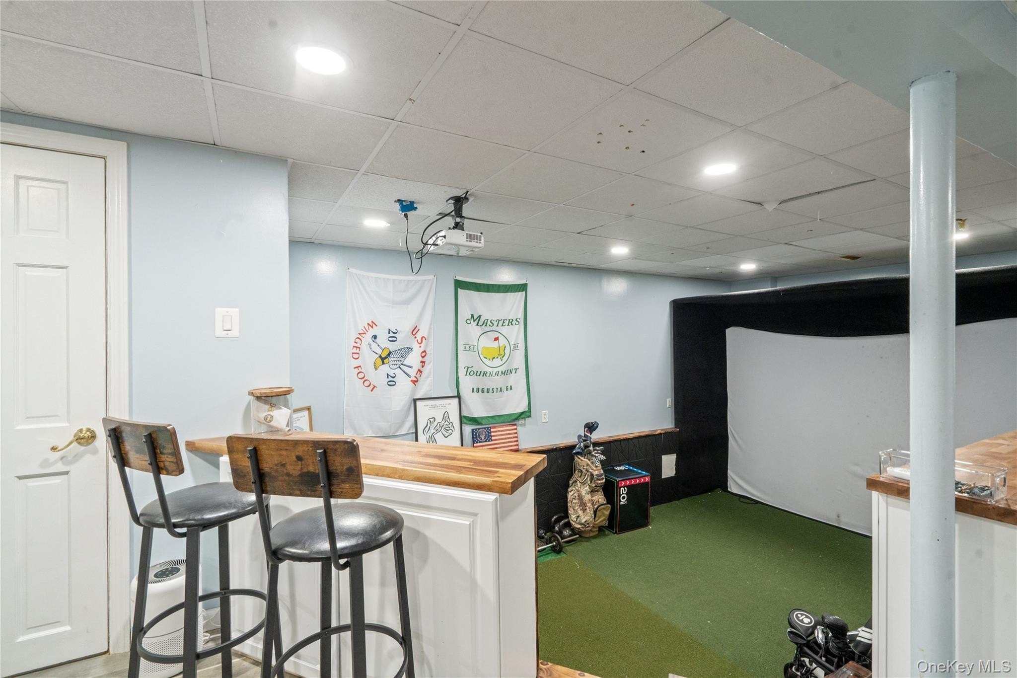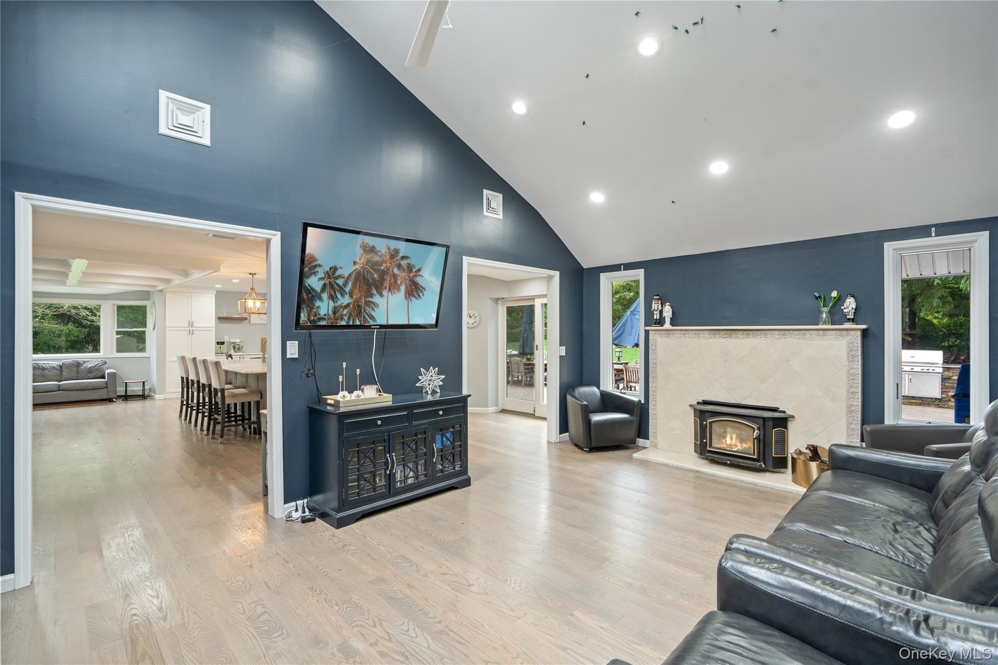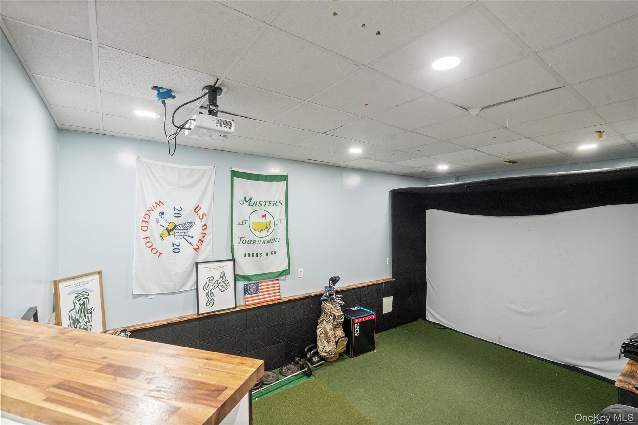 Warm and Inviting! Experience the perfect blend of elegance and comfort in this totally renovated 5-bedroom, 5-bath Ranch on a lush, private acre in the heart of Dix Hills. The open floor plan is ideal for modern living, with wood floors throughout, a living room with coffered ceiling, and a den featuring a cathedral ceiling with 2 skylights, and cozy wood-burning fireplace. Two primary with full baths, plus a home office with a full bath and private entrance. The full finished basement is perfect for entertainment, complete with a golf simulator / media room. Step outside to your own resort-style backyard with a heated saltwater pool, sports court, putting green, outdoor kitchen, and professionally landscaped grounds - a true private retreat. Located in the highly desirable Half Hollow Hills School District. Not-to-be-Missed!
