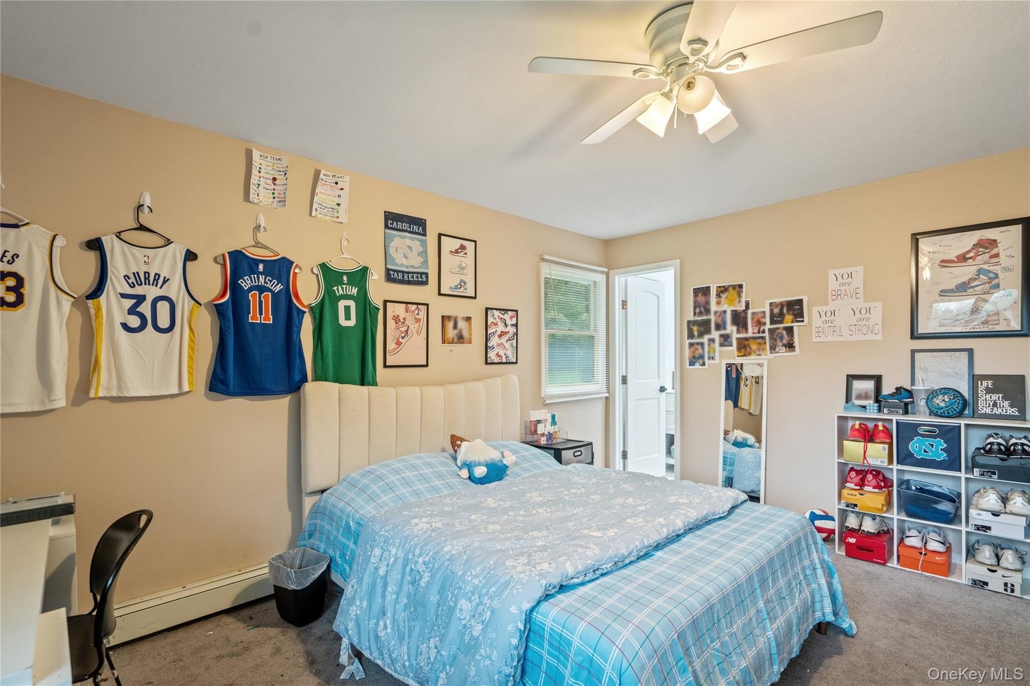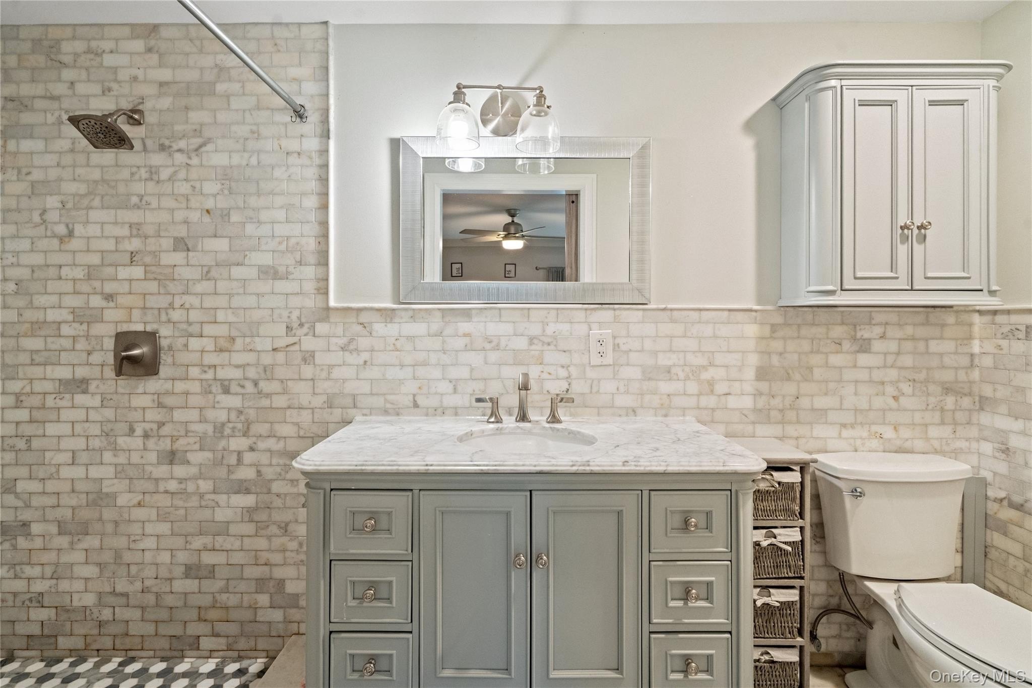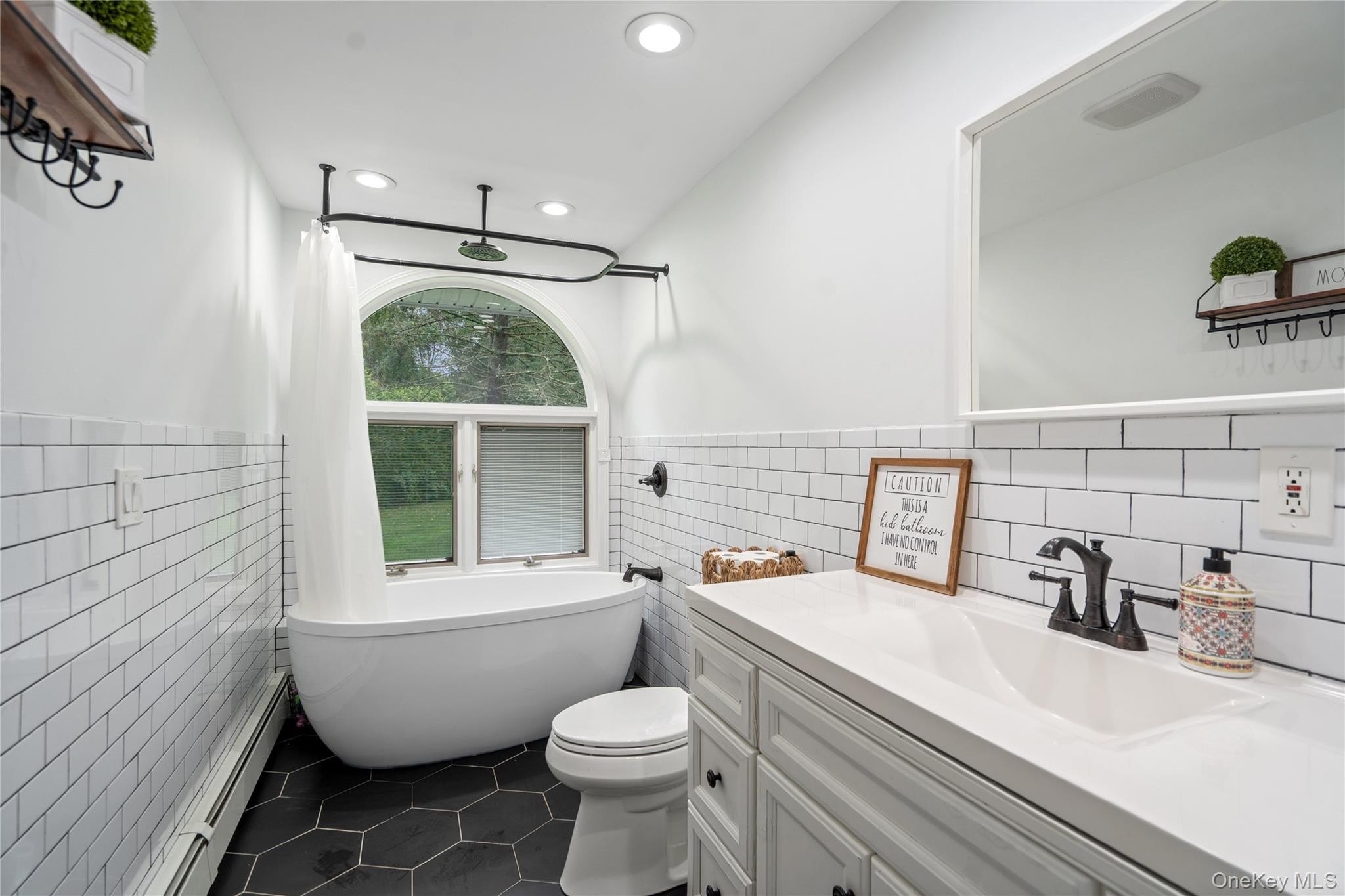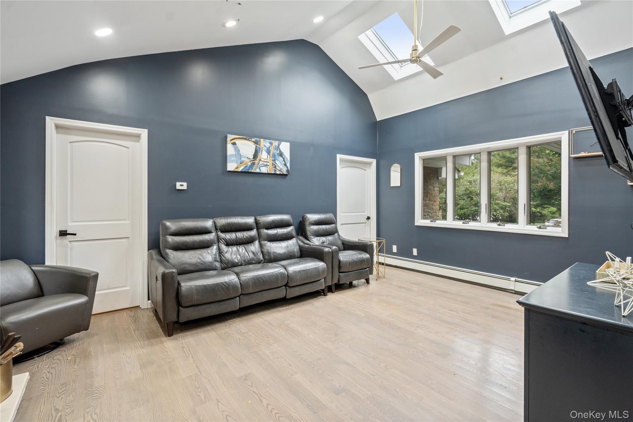 Warm and Inviting! Experience the perfect blend of elegance and comfort in this totally renovated 5-bedroom, 5-bath Ranch on a lush, private acre in the heart of Dix Hills. The open floor plan is ideal for modern living, with wood floors throughout, a living room with coffered ceiling, and a den featuring a cathedral ceiling with 2 skylights, and cozy wood-burning fireplace. Two primary with full baths, plus a home office with a full bath and private entrance. The full finished basement is perfect for entertainment, complete with a golf simulator / media room. Step outside to your own resort-style backyard with a heated saltwater pool, sports court, putting green, outdoor kitchen, and professionally landscaped grounds - a true private retreat. Located in the highly desirable Half Hollow Hills School District. Not-to-be-Missed!