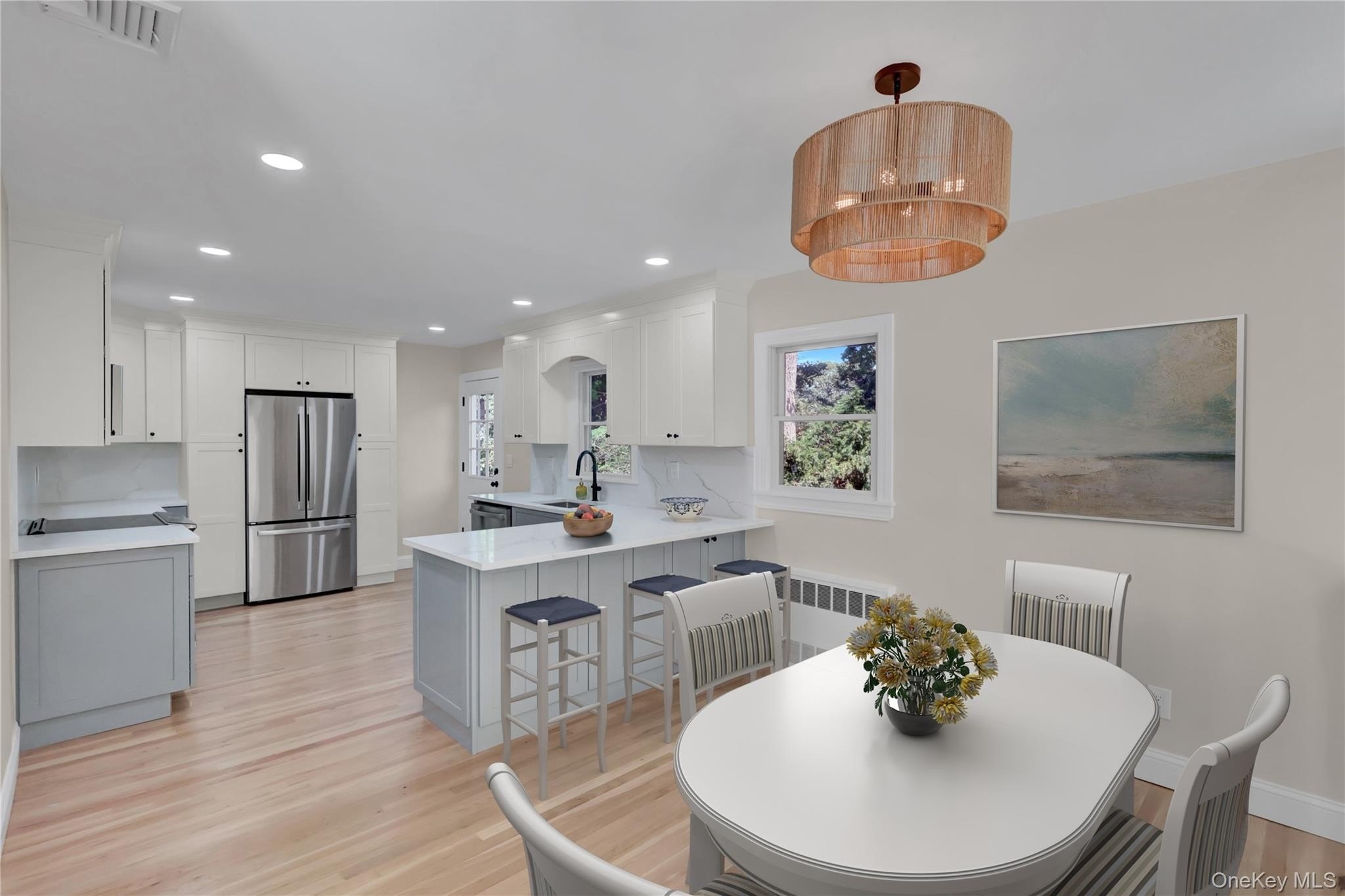 Brand new and move-in ready in Lattingtown! Nestled on a quiet, tree-lined cul-de-sac, this fully remodeled residence combines modern comfort with timeless craftsmanship. Every inch has been thoughtfully redesigned, featuring rich oak flooring throughout, a beautiful new kitchen with high-end appliances, and an inviting living room highlighted by vaulted ceilings and a dramatic floor-to-ceiling wood-burning fireplace. The home offers four spacious bedrooms, including a primary suite with a beautifully appointed ensuite bath. Enjoy additional living space in the family room complete with a stylish bar and access to the covered porch-perfect for relaxing or entertaining while overlooking the shy half-acre of landscaped property, with plenty of room for a pool. With all new siding, roofing, windows, central air conditioning, and much more, this home is truly turnkey. Ideally located close to top-rated schools, charming village shops, and the waterfront, this Lattingtown gem offers the best of North Shore living.