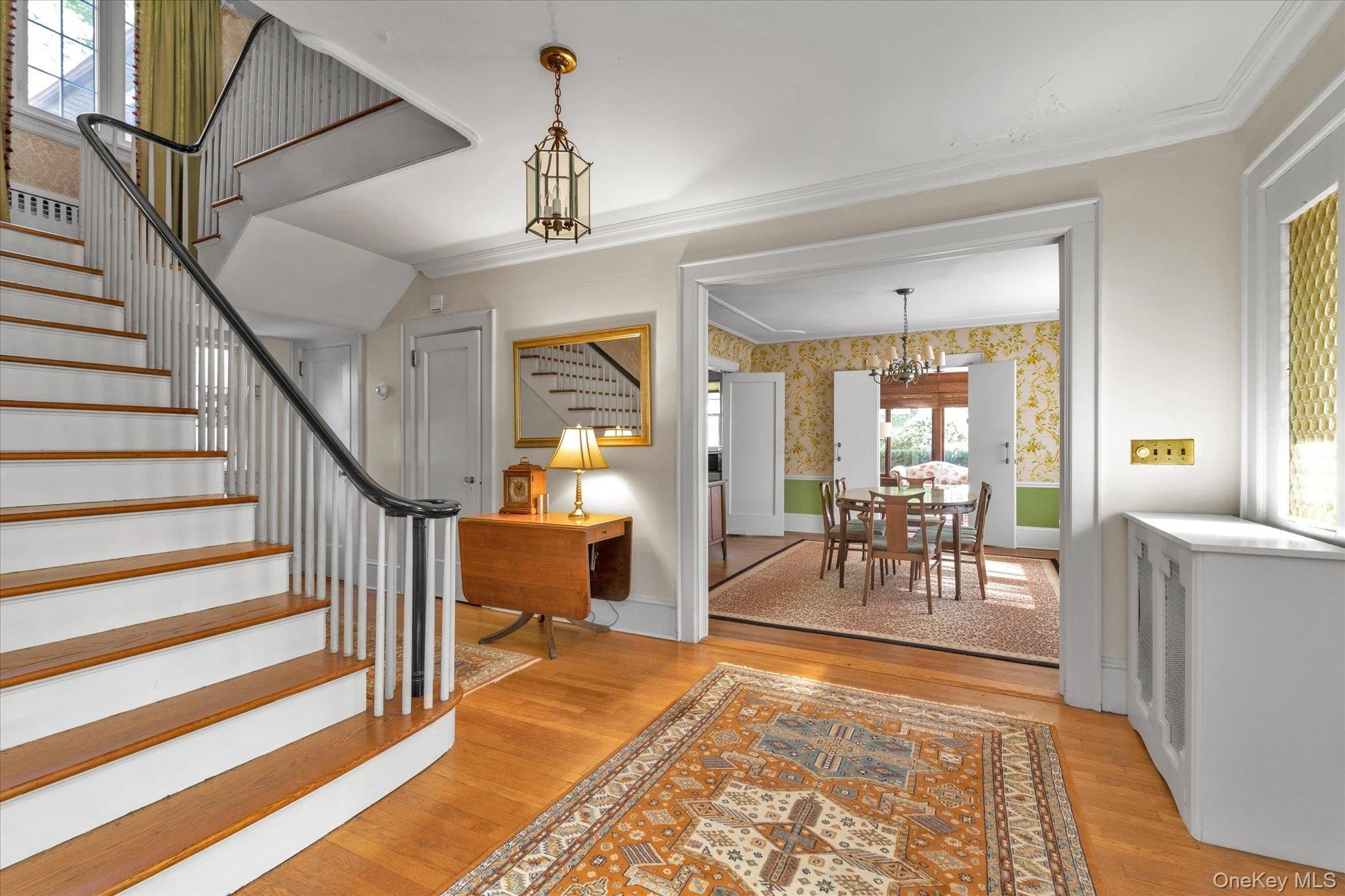 Welcome to this elegant Center Hall Colonial, offering 5 spacious bedrooms and 3.5 baths. Nestled in the desirable Beacon Hill community, residents enjoy private beach access-the ideal setting for coastal living with a touch of sophistication. Come inside to find gleaming hardwood floors, detailed plaster ceilings and crown molding, and a wood-burning fireplace that creates a warm, inviting atmosphere. The formal dining room flows seamlessly into a bright eat-in kitchen, complete with a pantry. A dedicated home office and cedar closet add both functionality and charm. The home features a large attic and full walk-out basement, providing abundant storage. Outside, enjoy a detached 2-car garage with storage, a large driveway with ample parking, and a beautifully private yard. Recent updates include an upgraded heating system and hot water tank offering peace of mind. Located close to golf courses, restaurants, the beach, train, and more, this home offers convenience, comfort, and timeless beauty-all in one exceptional property.