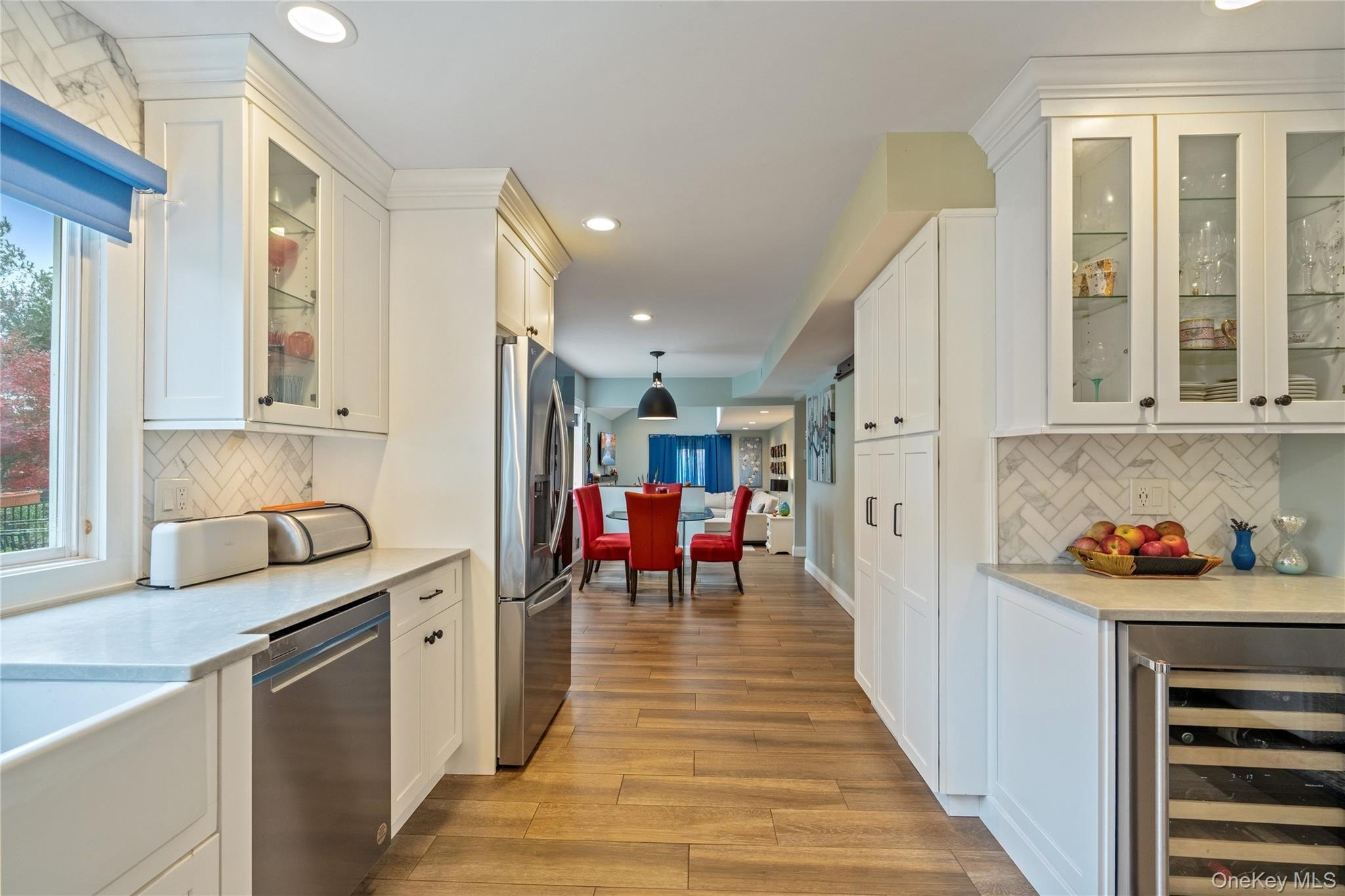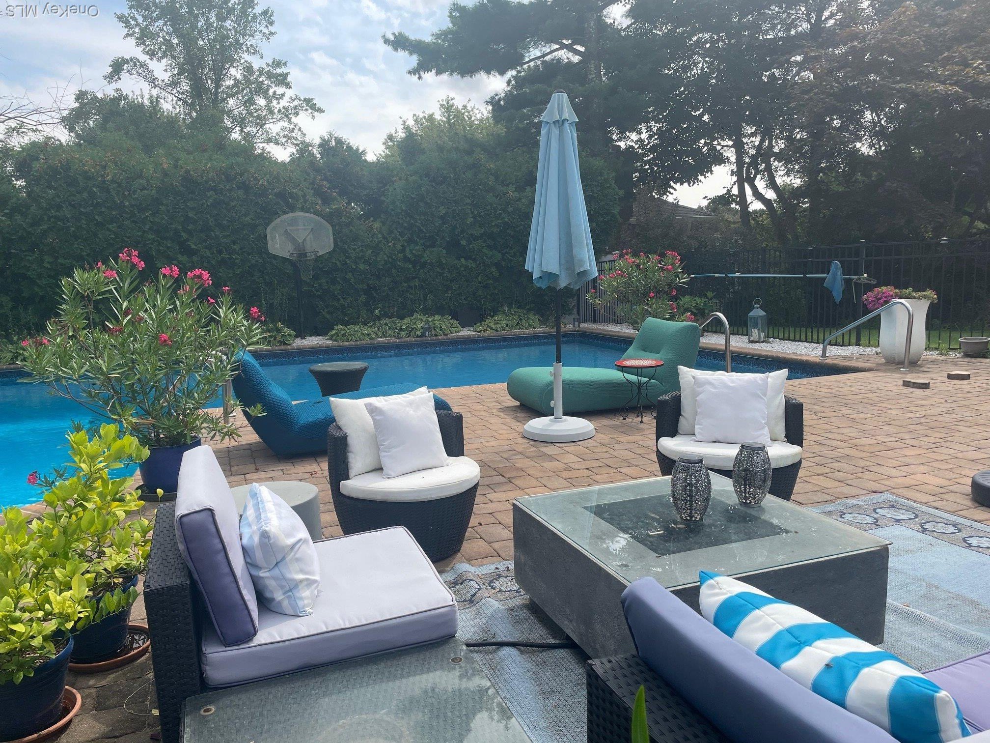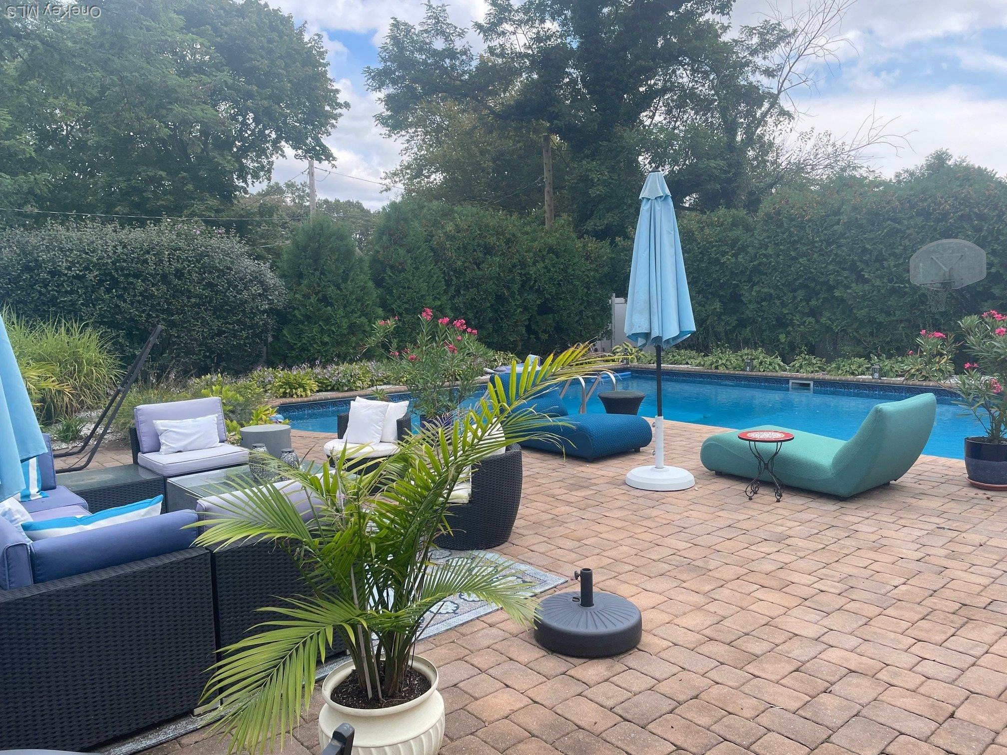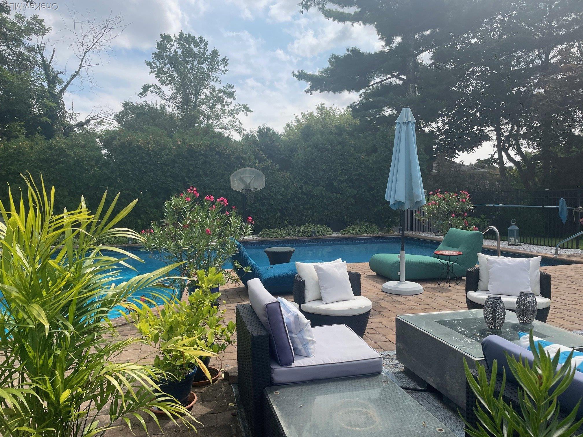 Welcome to this stunning four bedroom, two in a half bath Colonial perfectly situated on a .35 acre lot in the Half Hollow Hills School District. The main level offers an inviting entry hall with half bath, a formal living room and family room with a skylight and a gas fireplace. The gourmet kitchen features stainless steel appliances, gas cooking and flows seamlessly into the dining room and family room, ideal for entertaining. The upper level features the primary suite with an en-suite bath & jacuzzi tub, and three additional bedrooms and family bath. A sunroom off the family room leads to a resort style backyard with an in-ground heated saltwater pool, stone patio and gas fire pit. Additional highlights include hardwood floors, two car garage, new gas boiler, in-ground sprinklers and much more...