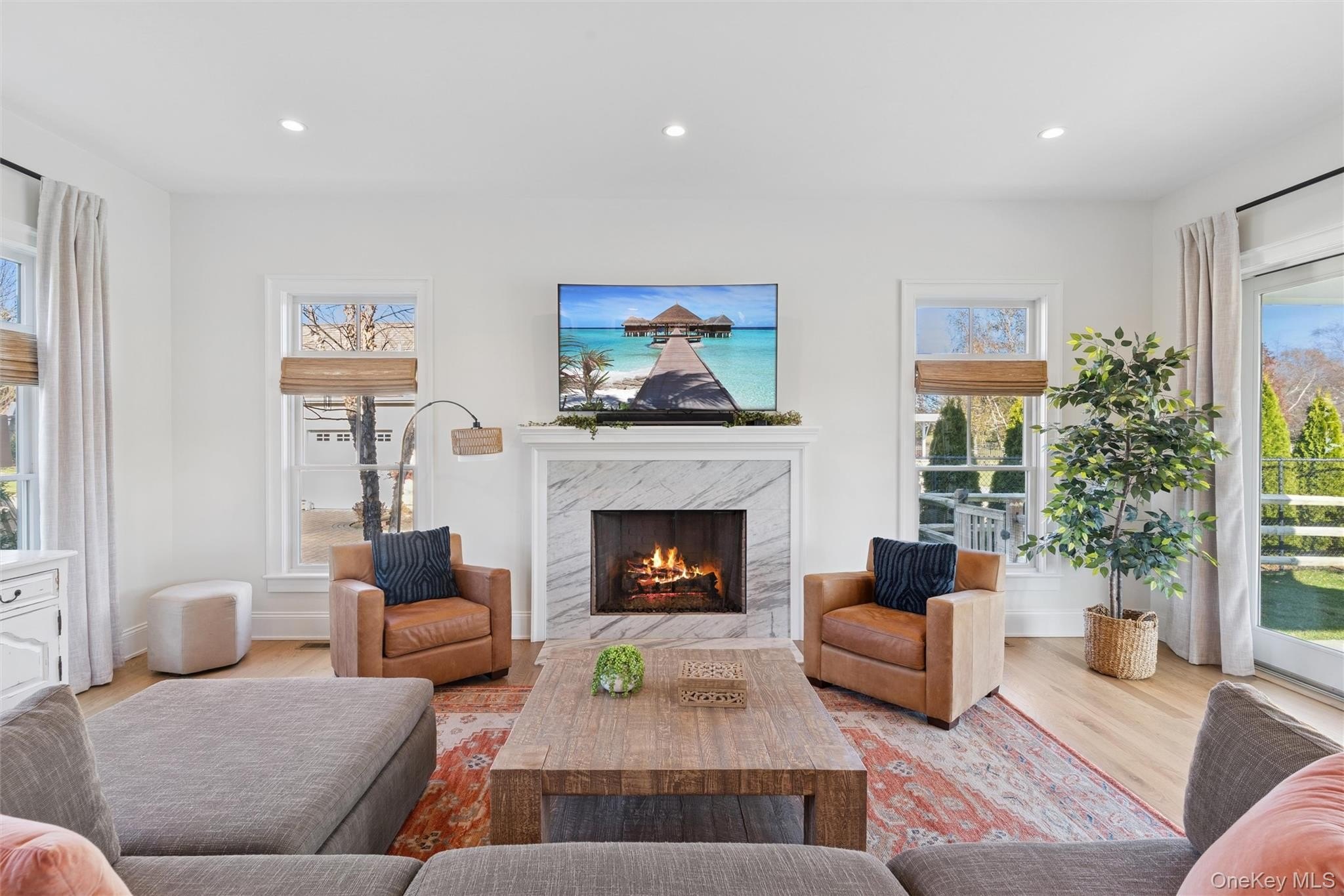 I am proud to bring 605 Gus Drive in East Marion to the market. A custom-built, classic Hamptons style home, nestled on a shy acre at the end of a serene cul de sac. This enchanting property, completed in 2022, offers an exquisite blend of elegance, comfort, and luxury, wrapped in an abundance of natural light. Enter through the front door into a grand foyer boasting elegant 20-foot ceilings. The rest of the groundfloor features 10-foot ceilings, creating an airy, spacious atmosphere throughout the sprawling 3400sq ft of living space(not including the basement). Oak hardwood floors add a touch of warmth and sophistication to each room and add to the sense of grandeur throughout. The home comprises of 5 bedrooms, 4 full bathrooms, and 1 half bath. 3 of the bedrooms are en-suite, offering ample space for relaxation and privacy. One of the ground-floor bedrooms currently serves as a home office, providing an ideal workspace bathed in natural light. However, this could easily be converted back to a fifth bedroom. The heart of the home is undoubtedly the high-end chef's gourmet kitchen. Fitted with top-of-the-line appliances and a large quartzite center island, it's a space designed for culinary exploration. An open fireplace, powered by natural gas, adds a cozy ambiance to the living area. The property's exterior is just as impressive. Step onto the mahogany covered porch at the rear, where you will find your very own 20 by 40 heated gunite in-ground pool inviting you to cool off on hot summer days, while the private deeded sugar sand beach on Peconic Bay offers a tranquil retreat. The home, with its gambrel architecture and cedar shake siding, is surrounded by wildlife. Expect to see ospreys in the spring and summer, deer in the fall, and enjoy vibrant fishing opportunities right off your backyard in Peconic Bay. The unfinished basement with 9 foot ceilings offers potential for additional living space, a media room, gym or storage, depending on your needs. The home is heated by natural gas, ensuring comfort throughout the year. This home's location is a stone's throw from Greenport Village, renowned for its extensive amenities and warm hospitality. Whether you're looking for dining, shopping, or leisure activities, you'll find it all nearby. This stunner is more than just a home; it's a lifestyle. A place where classic elegance meets modern comfort, where nature's beauty is your backdrop, and where every day feels like a vacation. Embrace everything the North Fork has to offer: pristine beaches, scrumptious restaurants, local organic produce & a burgeoning wine country. Don't miss the opportunity to make this dream home yours. Schedule your private showing today!
