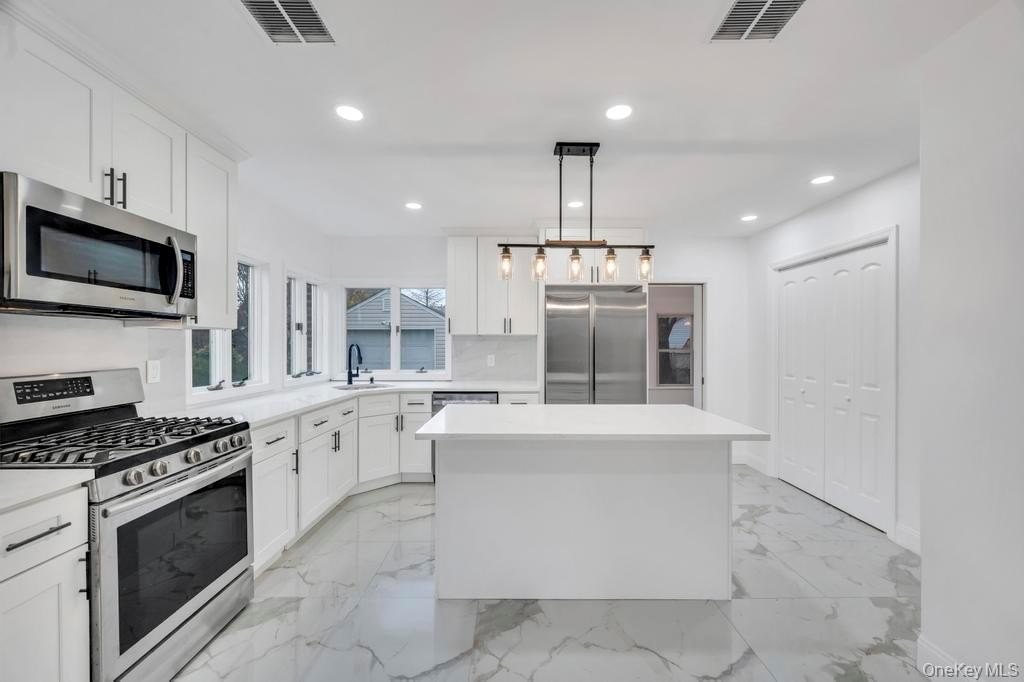 Freshly Renovated & Ready For You! A Two Story Gas Heating Home With A Full Spacious Basement With Major 2025 Upgrades Such As: A Brand New Kitchen With A Beautiful Island & Hanging Lights, Brand New Modern Bathroom Upstairs, New Recessed Lighting, Freshly Painted Throughout The House, Refinished Hardwood Floors, Spacious Den - Perfect For Entertainment Or Family Room, Nice Size Basement With Bright Lights & New Floors, Good Size Laundry Area, Both Floors Have A Bathroom, Primary Room Could Be Downstairs Or Upstairs, 4 Bedrooms, Long Driveway - Park 3-4 Cars Comfortably In The Driveway, And There Is A Garage. This Property Will Give You Peace Of Mind For Years To Come. Convenient Location (Close To Transportation) - 2 Miles From LIRR & Less Than 5 Minutes From Southern State/Belt Parkway. Exit 13 On Southern State. This Home Is Perfect To Host Summer Gatherings In A Nice Size Backyard. Take Advantage Of The Garage For Storage Or Parking. This Is Truly A Home That's Move-In Ready And Full Of Charm. Garage Will Be Decluttered Before Closing. This Is Not An Investor Flipped Property.