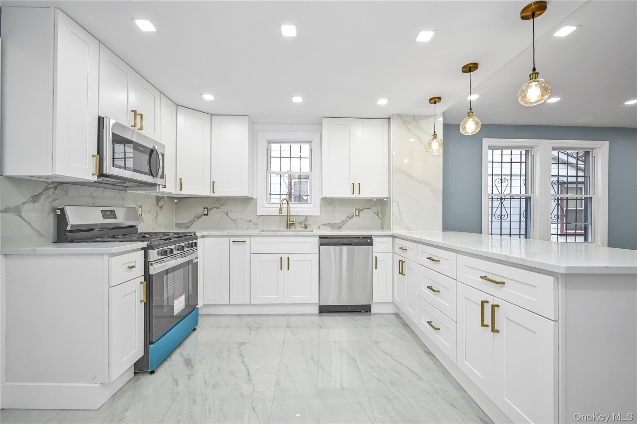 Welcome home to this beautifully renovated showpiece on a tree lined street. Step through the grand entrance into a bright and open first floor layout that feels spacious and inviting. The home offers 3 bedrooms, a modern kitchen with an island, stainless steel appliances, stylish new flooring, and 2 newly renovated bathrooms. Major upgrades include a new furnace, a new hot water tank, a new roof, and new gutters, along with many other improvements. The private backyard is a perfect outdoor retreat on a 3000 SqFt lot, great for entertaining guests or enjoying a relaxing summer barbecue. There is also a long private driveway offering plenty of parking. Ideal sought after location. Enjoy the convenience of being within walking distance to Archie Spigner Park and only minutes from Roy Wilkins Park. Multiple bus stops and the train are close by, making transportation simple and accessible. This is a move in ready, fully renovated home offered at a fantastic price. A wonderful opportunity for any buyer looking for comfort, quality, and value. Do not miss out on this opportunity.