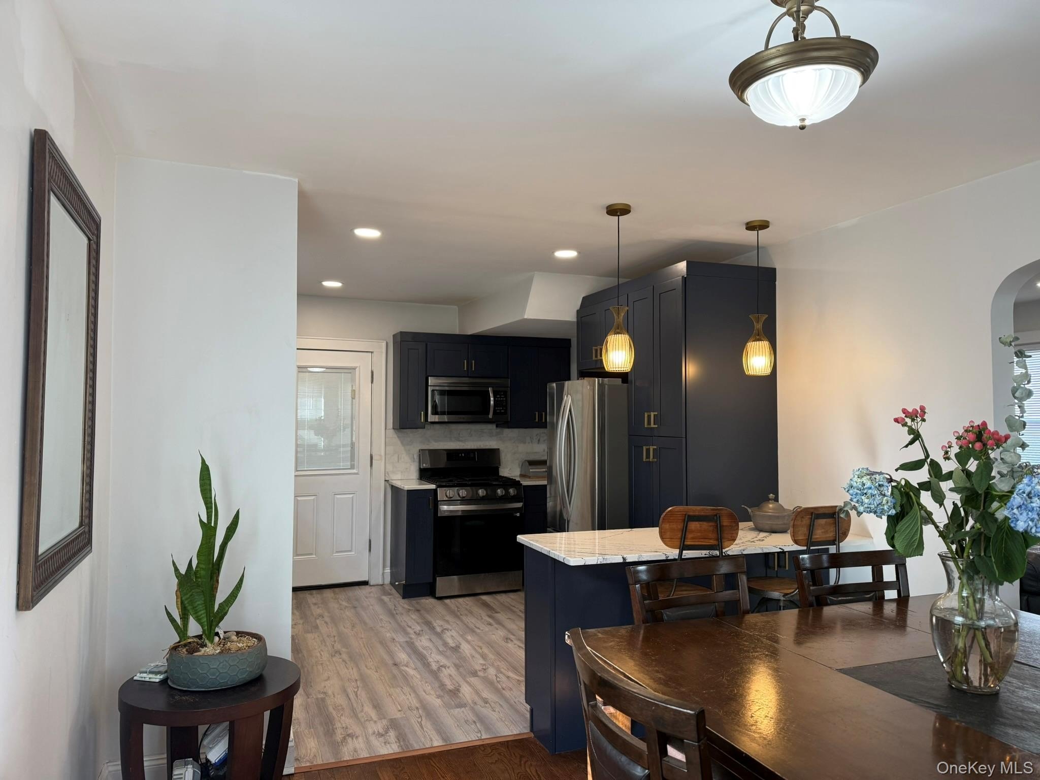 Welcome home to this tastefully renovated Colonial featuring a welcoming front porch and timeless architectural style. Step inside to refinished hardwood floors that flow throughout the home, complemented by a fully updated kitchen with marble counter tops, stainless steel appliances, gas cooking, a new SS dishwasher, and brand-new hi-hat lighting. Additional upgrades include a new hot water heater, new washer and dryer, updated electric, and efficient gas heat. The second level offers two expansive king-sized bedrooms, each with generous closet space and plenty of room for oversized furniture. The warm and inviting living room features a wood-burning fireplace, while the bright dining room boasts a charming bay window that fills the space with natural light. Welcome Home! All information deemed reliable but not guaranteed. Buyer and buyer's agent to perform their own due diligence and independently verify all information. A fully finished basement with closets and a full bathroom provides flexible space for guests, recreation, or a home office. The four-season room offers an ideal additional living area-perfect for entertaining or customizing to your needs. Outside, enjoy a fenced backyard, a 1-car garage, and a long driveway accommodating up to 4 cars. Situated on a picturesque, tree-lined street with sidewalks, this home is located in a fantastic neighborhood you'll love. A must-see property-move-in ready and beautifully updated throughout!