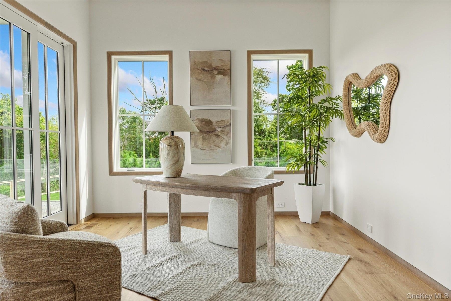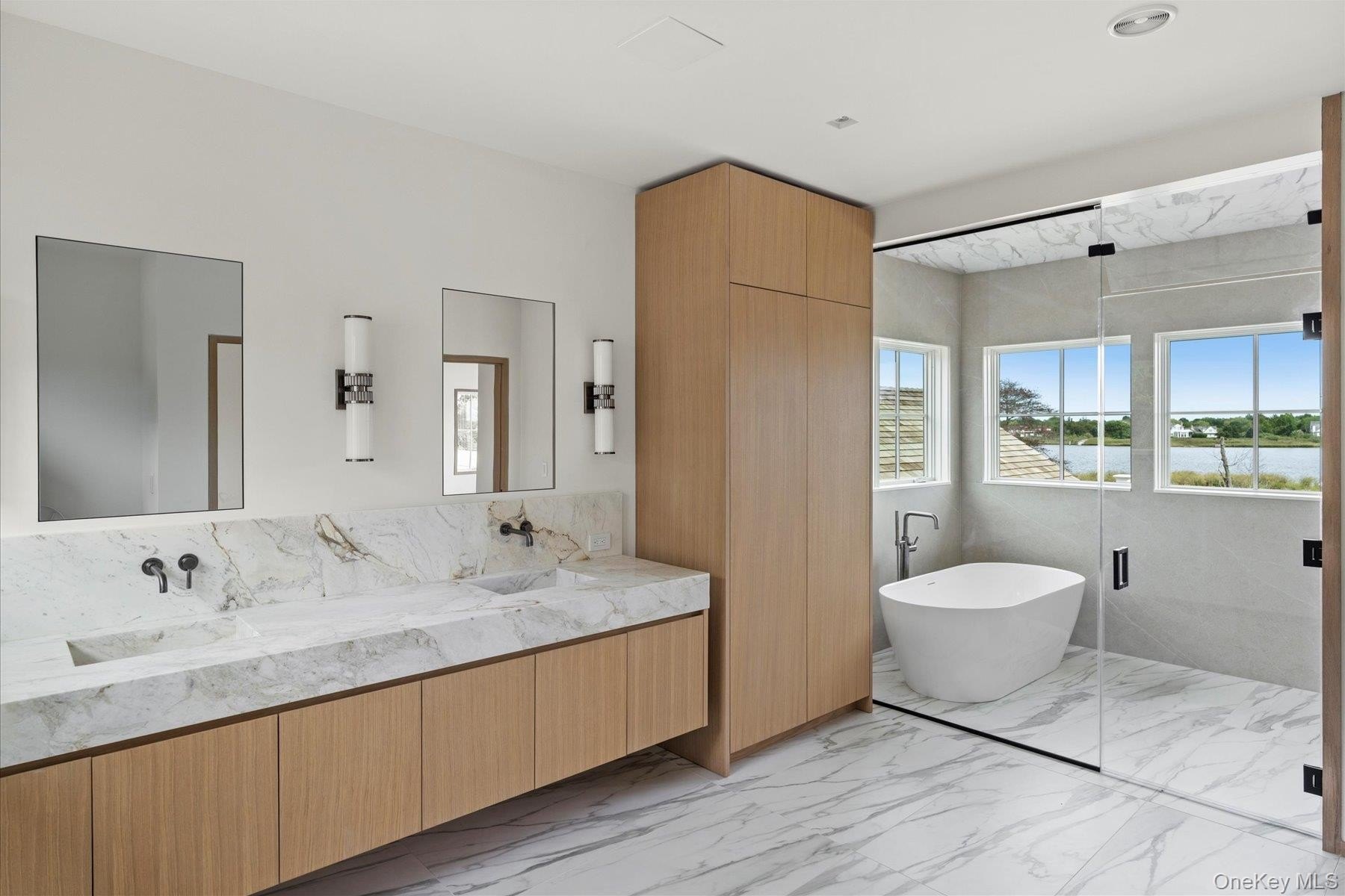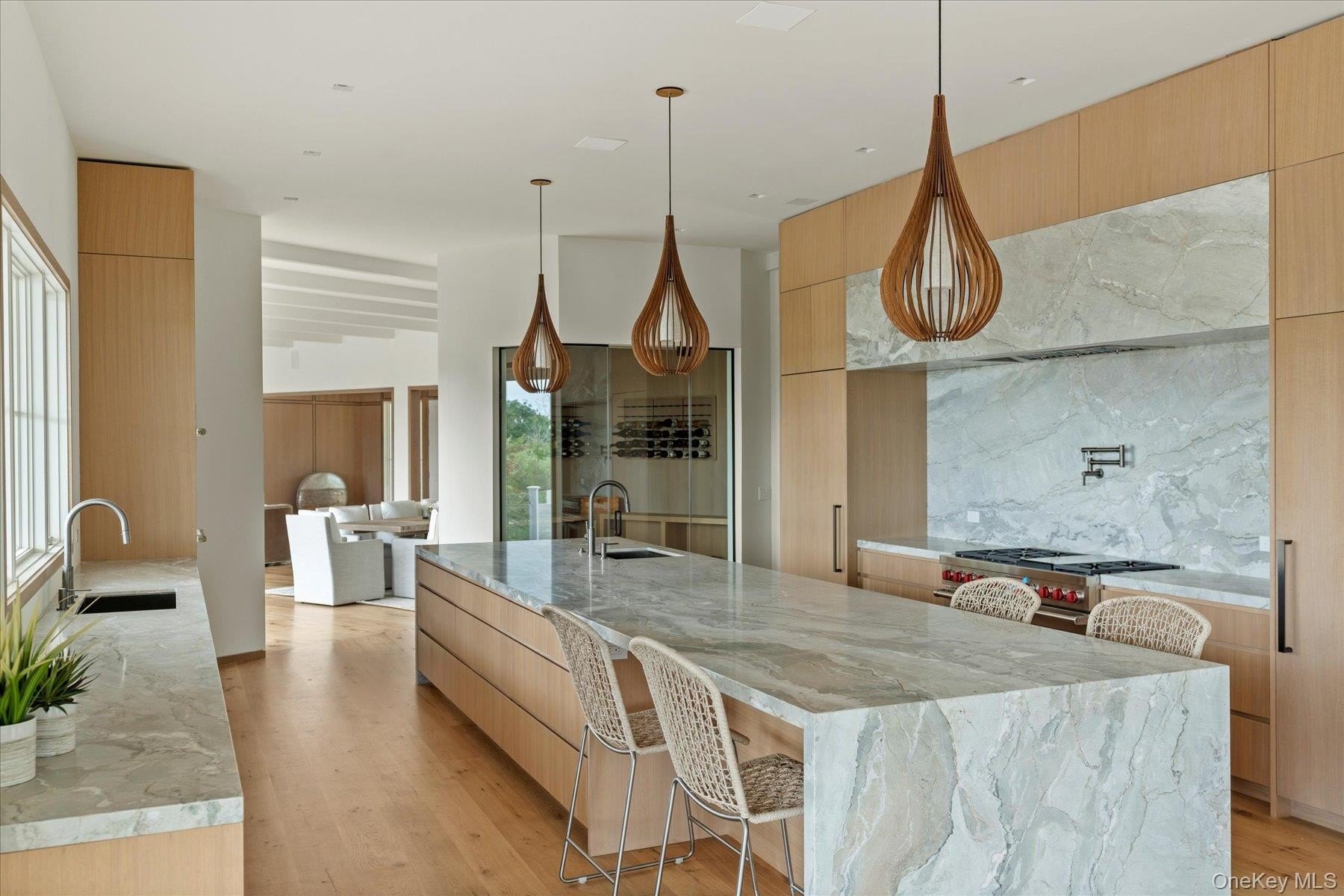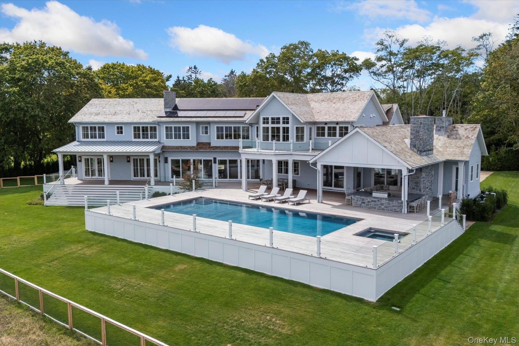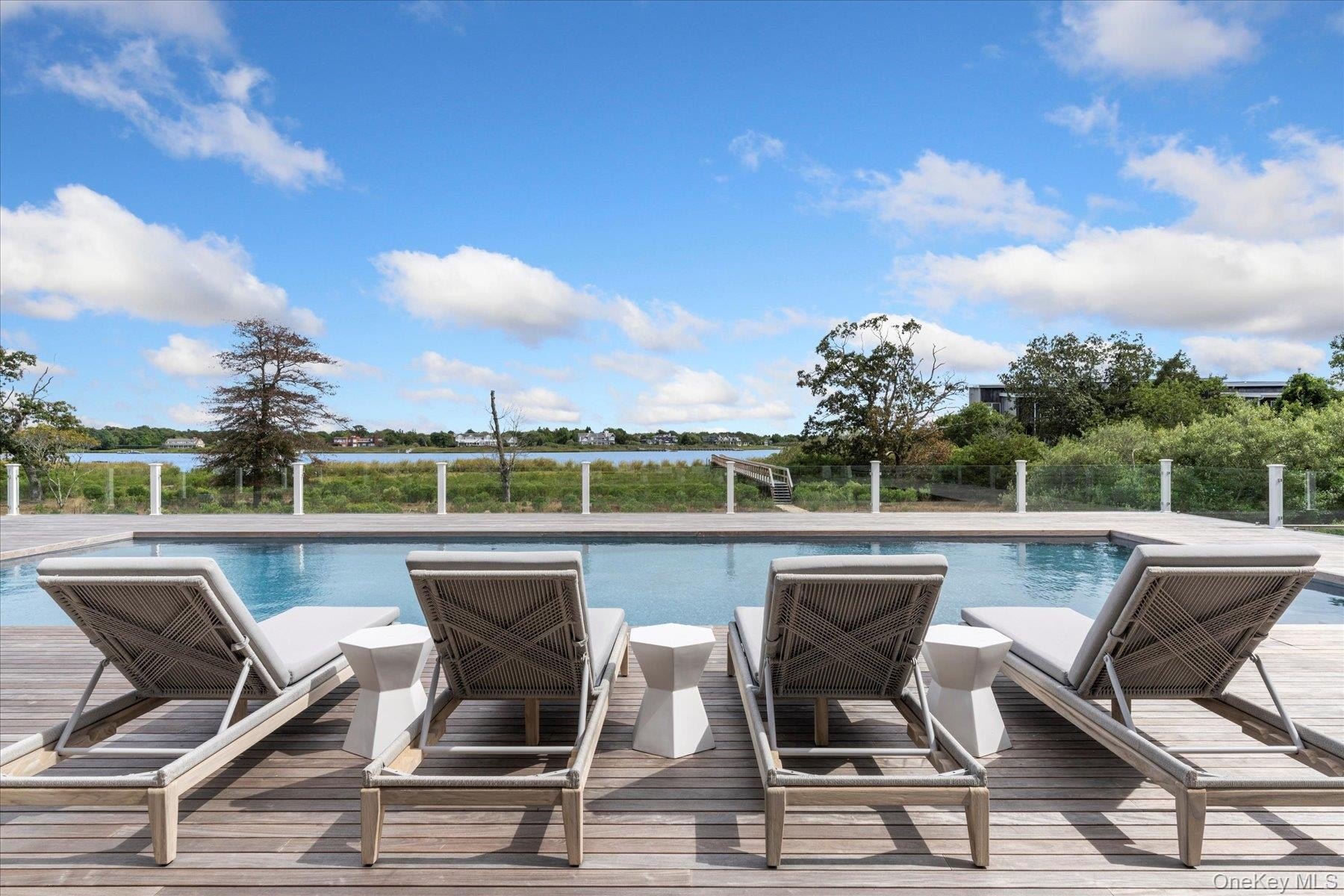 Discover the ultimate in luxury living on 3 private acres with 225 feet of bulkhead along the serene Quantuck Creek in Quiogue. This stunning new construction estate offers unparalleled privacy, panoramic open creek views, and resort-style amenities crafted for both relaxation and entertaining. Step through a beautiful white oak foyer into a home rich with craftsmanship, featuring custom trim work, curated finishes, and a thoughtfully designed open layout. At the heart of the home is an oversized chef's kitchen with marble countertops, a walk-in pantry, and an inviting great room that flows effortlessly into two elegant living areas, each with its own fireplace. The first floor includes two en suite bedrooms, two private offices, a laundry room, and two stylish half baths with marble countertops, all connected to a radiant-heated three-car garage. Upstairs, a dramatic balcony opens to a light-filled family room. The private primary suite wing offers a luxurious retreat with a sitting room, expansive walk-in closet, spa-like marble bath, and a covered veranda with stunning views of Quantuck Creek. Every detail of this home was thoughtfully curated for elevated living. With eight spacious bedrooms, including a private guest suite and junior primary, there's room for everyone to feel at home. The residence features nine full bathrooms and three elegant half baths, including a dedicated pool bath for effortless outdoor entertaining. Three well-appointed laundry rooms with a total of five washers and dryers offer everyday ease and efficiency. Sophisticated materials are found throughout: marble countertops in the kitchen, primary suite, junior suite, and powder rooms, and quartz finishes in the secondary bedrooms. Comfort meets innovation with hydronic radiant floor heating in the primary suite and garage. Smart home features include a full Sonos sound system, Lutron RA-3 smart lighting, and pre-wiring for automated shades in all bedrooms. Outdoors, enjoy a covered deck with a built-in BBQ and bar, an outdoor fireplace, and a stunning pool and spa, all overlooking the peaceful waters of Quantuck Creek. A home gym, playroom, and flexible living spaces round out this exceptional residence. 551 Main Street is more than a home, it's a lifestyle. A rare opportunity to own a modern waterfront estate in one of the Hamptons' most coveted enclaves