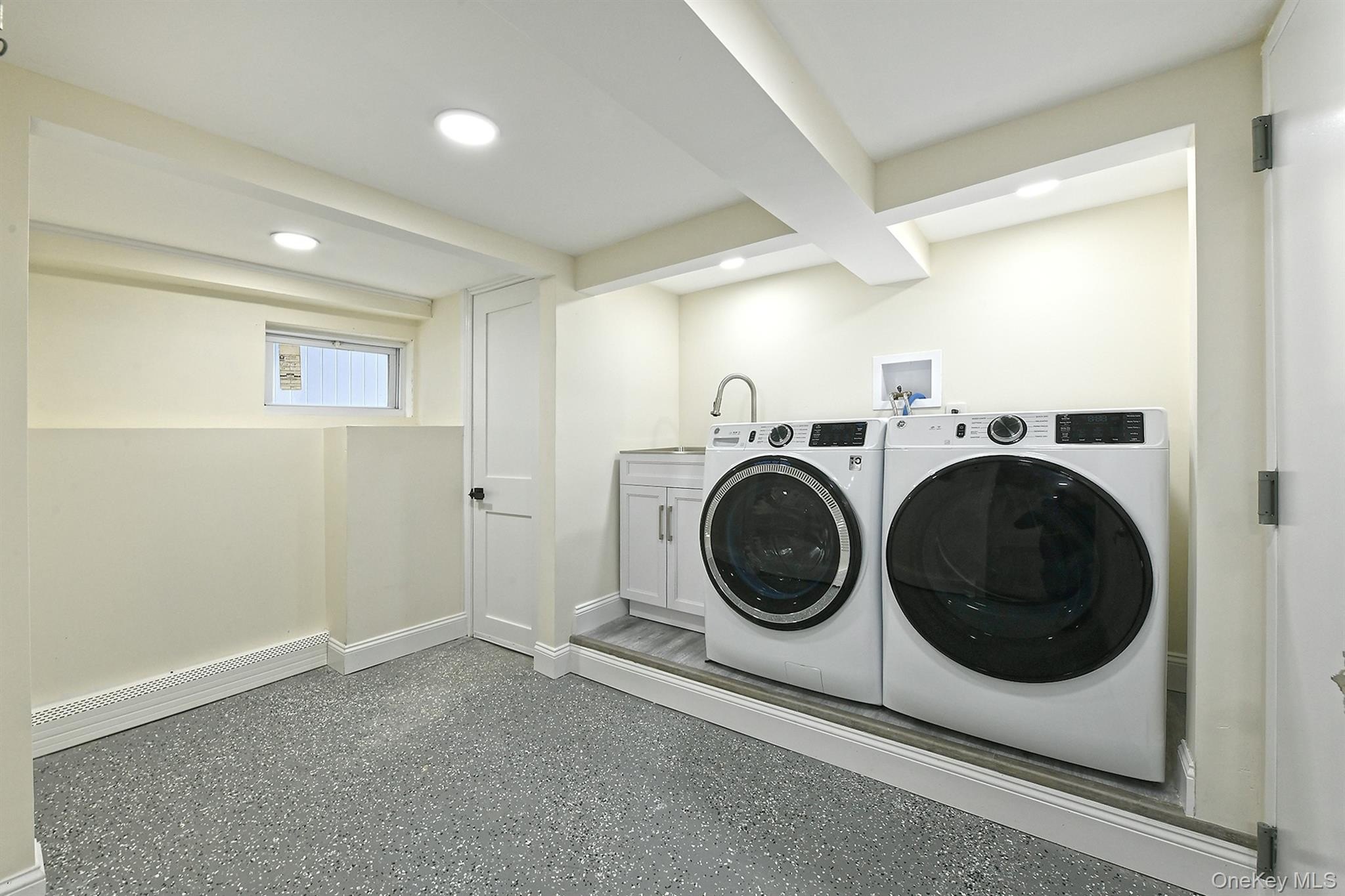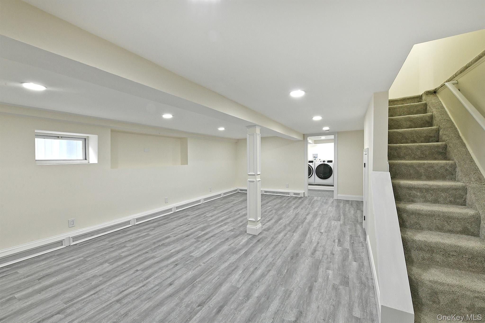 Welcome to this completely renovated Bellmore waterfront home, set right on the canal with peaceful water views and private access to the water. When you walk through the front door, you are met by a bright and inviting living room that flows seamlessly into the dining area. The space continues into the beautifully renovated kitchen, designed for both cooking and gathering, and just beyond, the sunroom-your second living area-offers serene water views and a perfect retreat for relaxing or entertaining. From the entryway, a central staircase leads upstairs to three comfortable bedrooms and a full bathroom finished in marble. The bathroom is equipped with a custom stand-up shower, complete with a shower niche and bench. The second level also features a walk-in master closet, ample storage, and all new windows that bring in abundant natural light. On the lower level, the half bath features a smart toilet with a bidet, heated seat, and multiple comfort settings. The finished basement adds even more living space, complete with a separate laundry room featuring a slop sink and top-of-the-line washer and dryer. The entire lower level was rebuilt with a pressure-treated elevated floor system, and all mechanicals are raised and protected for long-term peace of mind. Every part of this renovation was done with modern convenience in mind. The home includes all-new kitchen appliances-gas stove, refrigerator, dishwasher, microwave, and wine fridge-natural gas heat, a tankless water heater, smart thermostats on every floor, and a CO2/fire alarm combo system. Throughout the entire home, new high hats with a halo setting provide two lighting options for everyday use or entertaining. Exterior upgrades include a brand-new roof and gutters. For added security in waterfront living, the property is engineered with a full-perimeter French drain, two high-capacity sump pumps with a water level alarm and backup battery. Minutes from the Wantagh Parkway, Sunrise Highway, Jones Beach, and Bellmore's vibrant restaurants and nightlife, this home offers turnkey living with thoughtful design, modern comfort, and effortless coastal lifestyle.
