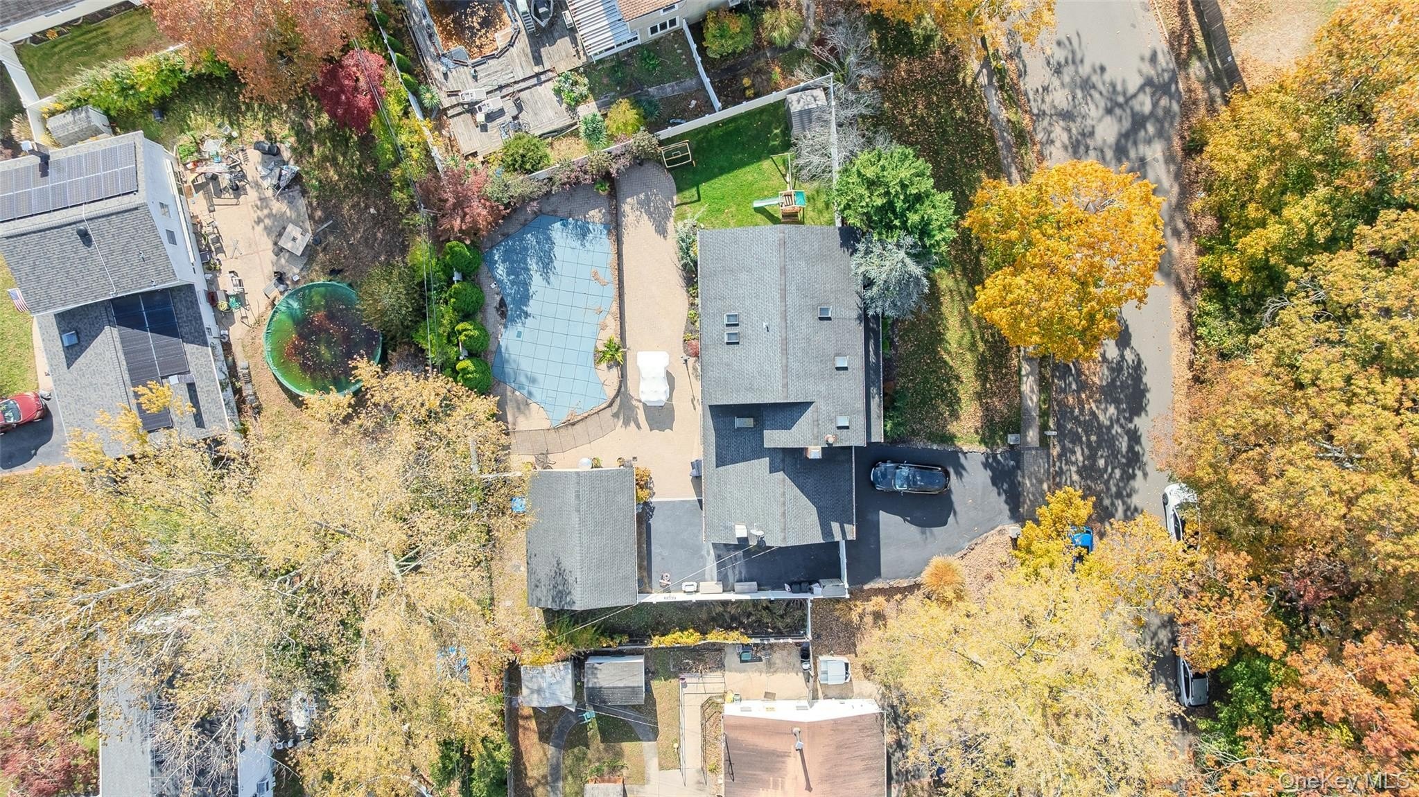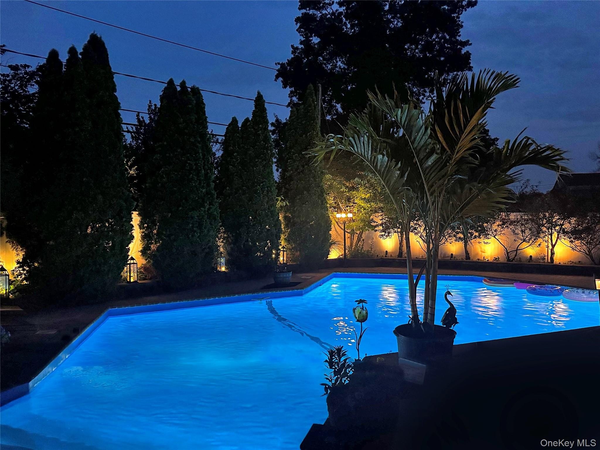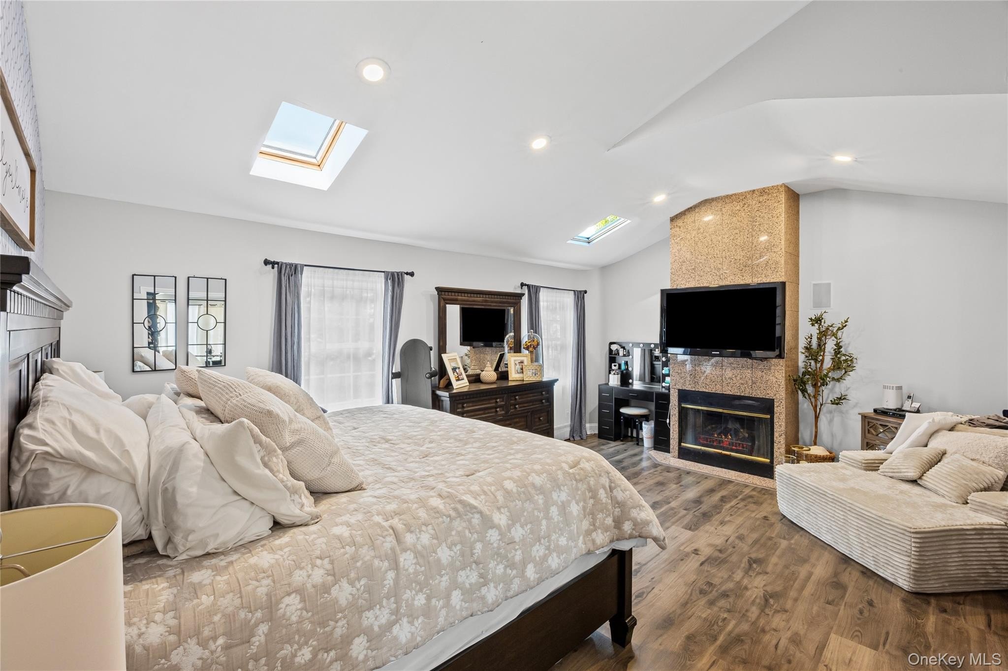 Welcome to this beautifully maintained Colonial located in the desirable Village of Lake Grove. Conveniently situated near local parks, shopping, major highways, and hospitals, with natural gas available, this home offers the perfect balance of comfort, style, and location. Step inside to find a warm and inviting interior featuring new first-floor windows that fill the home with natural light. The first-floor primary ensuite provides added convenience and flexibility. Entertain in the formal dining room, relax in the den with a wood-burning fireplace, or gather in the sun-filled kitchen showcasing a large bay window seat, oversized island, stainless steel appliances, and a spacious pantry. A large living room with a built-in bar and sink make this home ideal for everyday living and entertaining. Upstairs, you'll find a half bath and three generously sized bedrooms, including a grand primary suite featuring a wood-burning fireplace, new skylights, a luxurious walk-in closet with custom built-ins, and a large primary bathroom with dual vanities, a walk-in shower, and a jetted soaking tub. Step outside to your private backyard retreat. Enjoy a gunite chlorine pool, marble dusted in 2025 with a new filter installed in 2024. The pool area is fenced and enhanced with pavers, built-in bench seating, pool lighting, exterior lighting, outdoor speakers, and lush landscaping. The fully fenced backyard offers raised garden beds, mature privacy plantings, and a double gate for additional parking. A two-car detached garage with an electric door opener provides additional convenience and storage. The home also includes a security system for peace of mind. This stunning property won't last long!