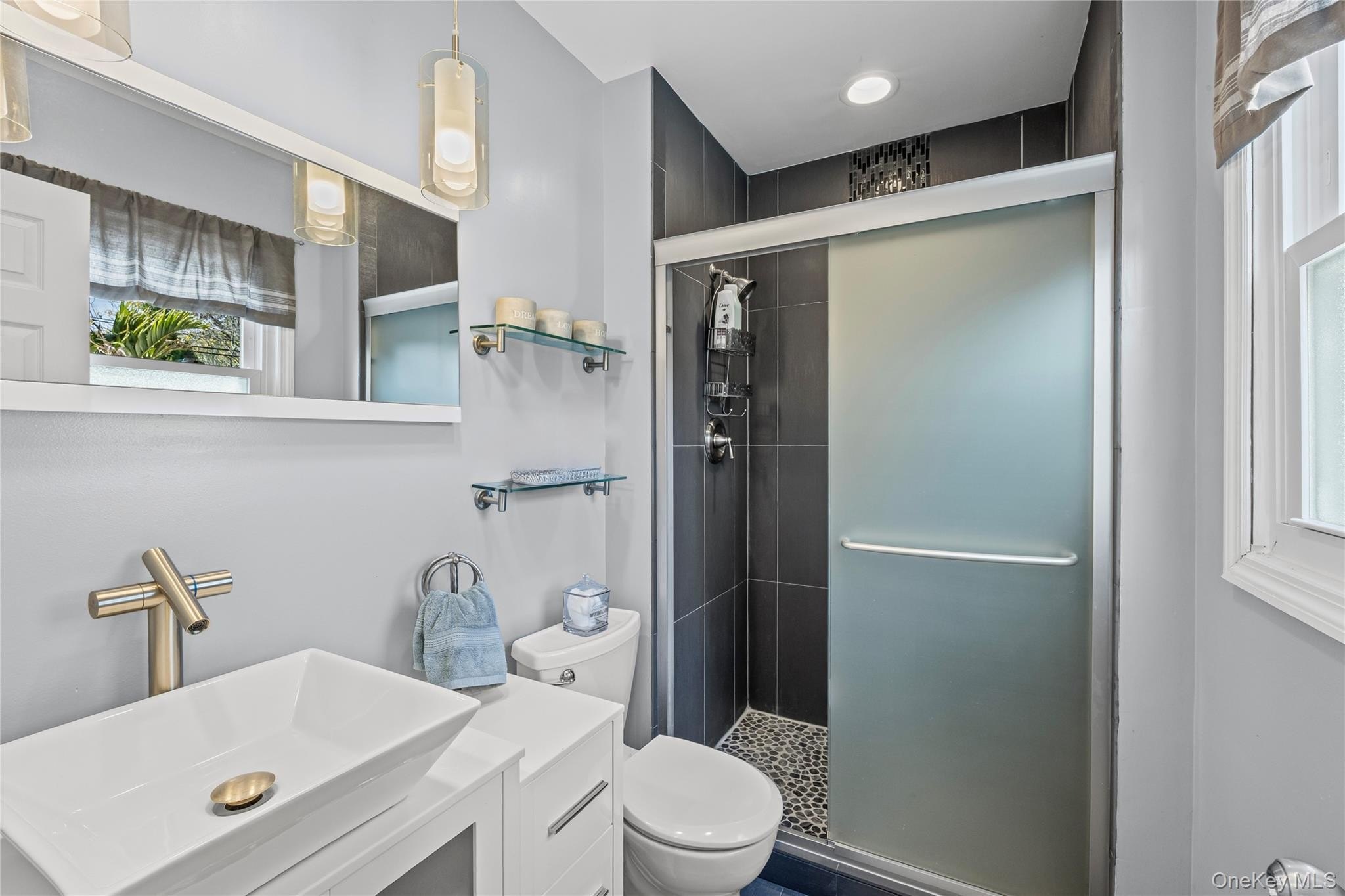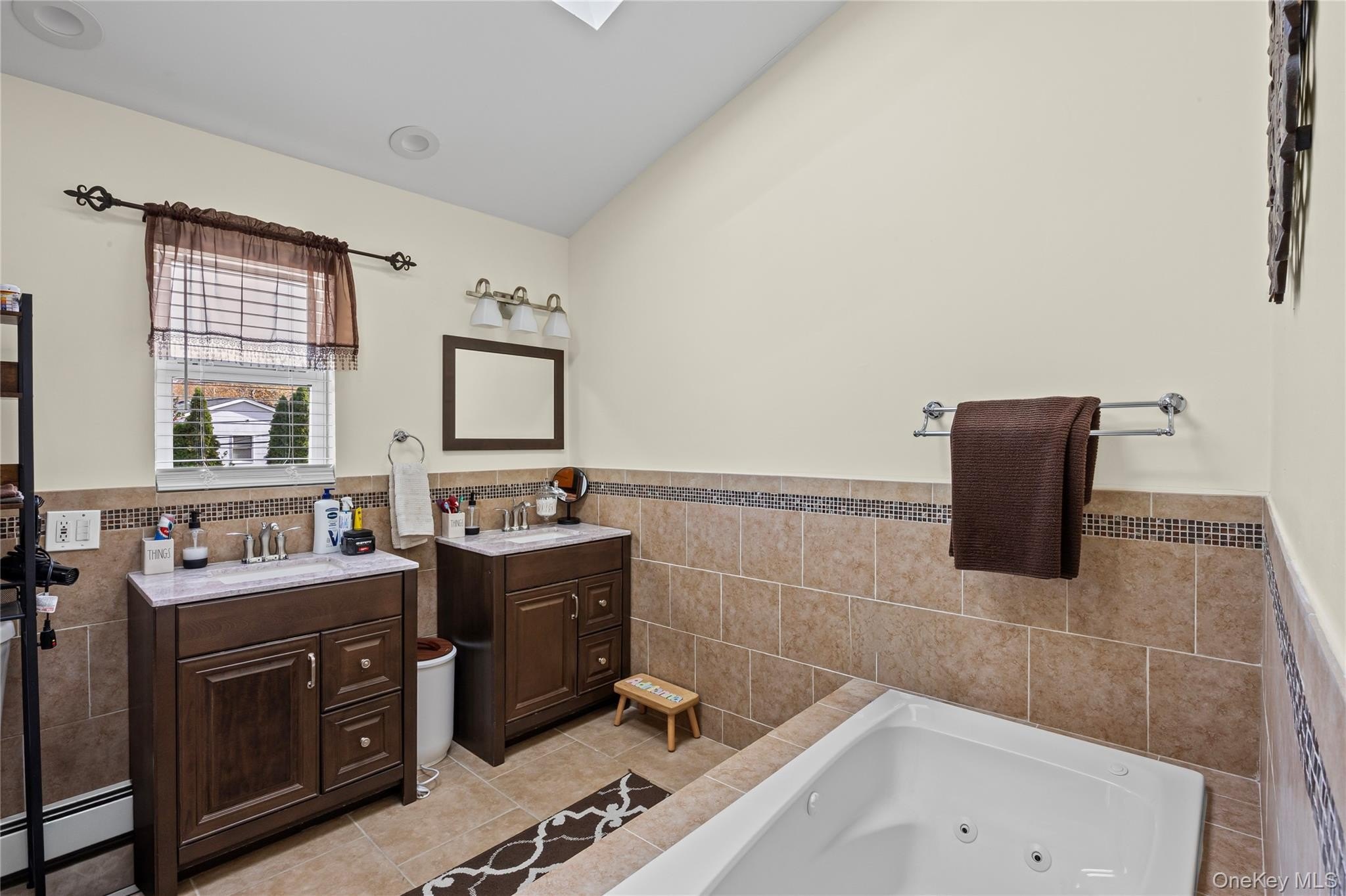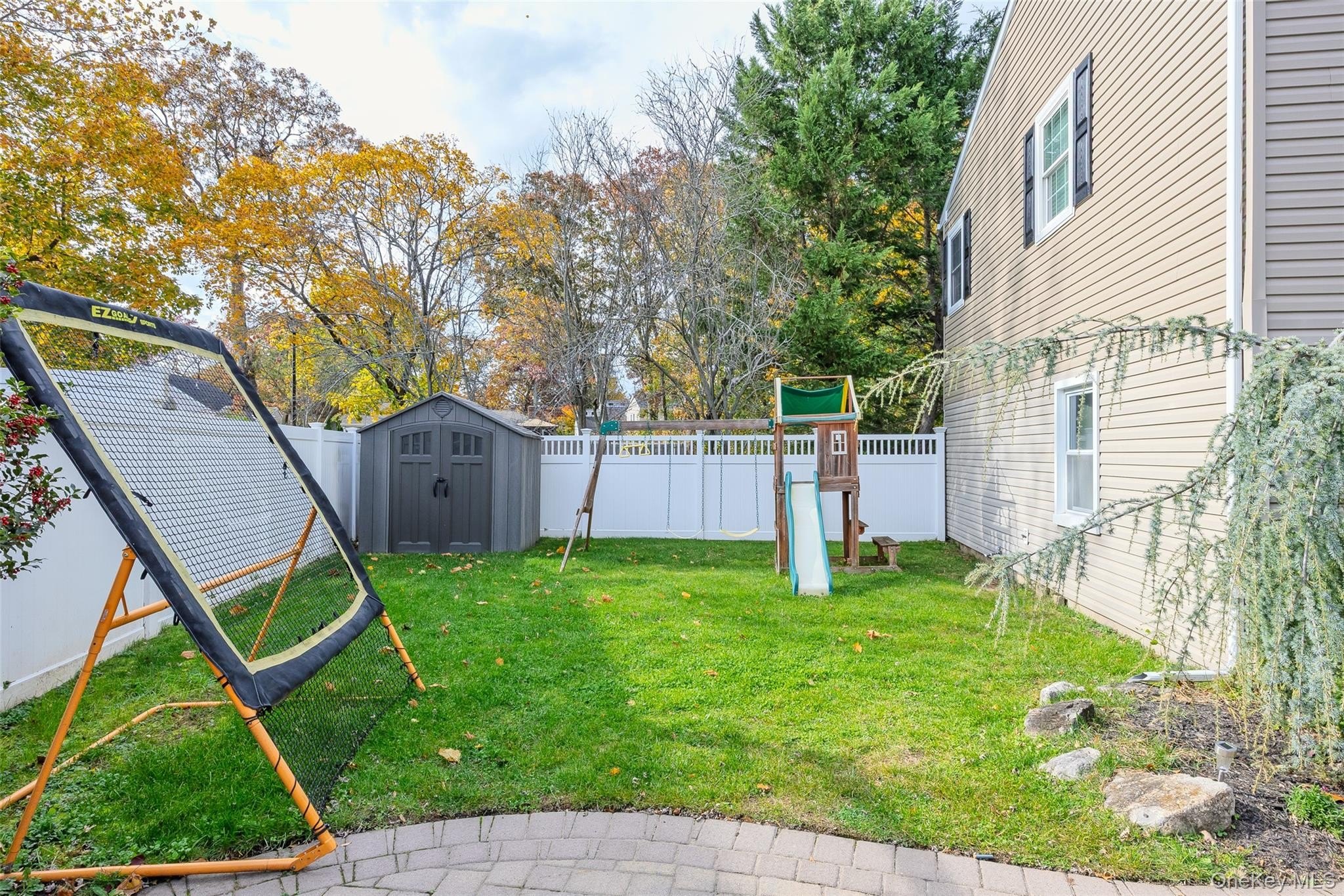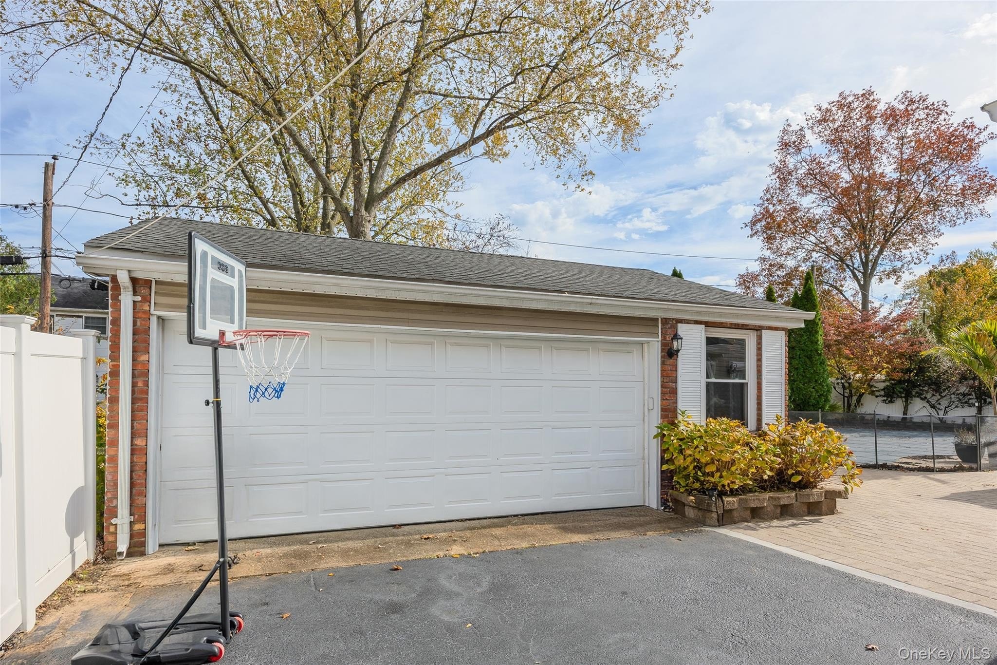 Welcome to this beautifully maintained Colonial located in the desirable Village of Lake Grove. Conveniently situated near local parks, shopping, major highways, and hospitals, with natural gas available, this home offers the perfect balance of comfort, style, and location. Step inside to find a warm and inviting interior featuring new first-floor windows that fill the home with natural light. The first-floor primary ensuite provides added convenience and flexibility. Entertain in the formal dining room, relax in the den with a wood-burning fireplace, or gather in the sun-filled kitchen showcasing a large bay window seat, oversized island, stainless steel appliances, and a spacious pantry. A large living room with a built-in bar and sink make this home ideal for everyday living and entertaining. Upstairs, you'll find a half bath and three generously sized bedrooms, including a grand primary suite featuring a wood-burning fireplace, new skylights, a luxurious walk-in closet with custom built-ins, and a large primary bathroom with dual vanities, a walk-in shower, and a jetted soaking tub. Step outside to your private backyard retreat. Enjoy a gunite chlorine pool, marble dusted in 2025 with a new filter installed in 2024. The pool area is fenced and enhanced with pavers, built-in bench seating, pool lighting, exterior lighting, outdoor speakers, and lush landscaping. The fully fenced backyard offers raised garden beds, mature privacy plantings, and a double gate for additional parking. A two-car detached garage with an electric door opener provides additional convenience and storage. The home also includes a security system for peace of mind. This stunning property won't last long!