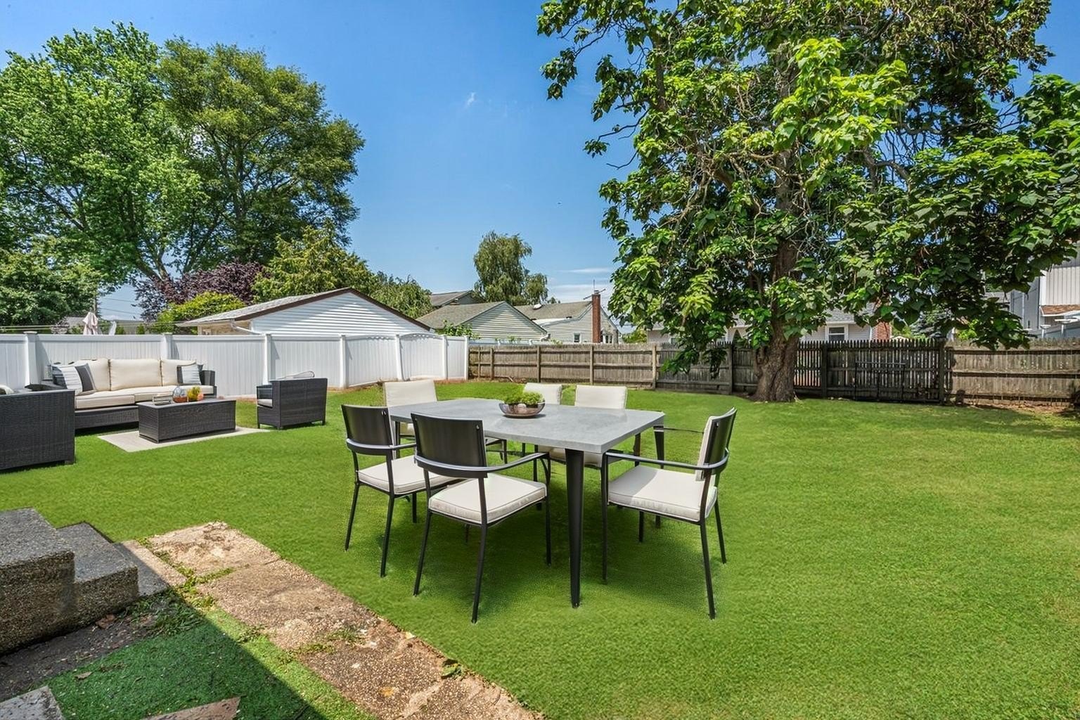 Welcome to this lovely 3-bedroom, 1-bathroom ranch style home, featuring beautifully refinished hardwood floors throughout. The updated kitchen boasts brand new cabinets , flooring and has stainless steel appliances. A separate dining area provides ample space for family meals and entertaining guests. The inviting living room provides a comfortable space for relaxation enhanced by a charming fireplace. The spacious partially basement provides ample storage space complete with a dedicated laundry room for convenience. Step outside to discover a great backyard that serves as a perfect setting for outdoor gatherings-this space offers endless opportunities, oil to gas conversion done a year go with new boiler and hot water heater, new roof and gutters done in 2024, new washer dryer 2024. Located near shopping, public transportation and schools, this home is ideal for any lifestyle! *Photos are virtually staged*