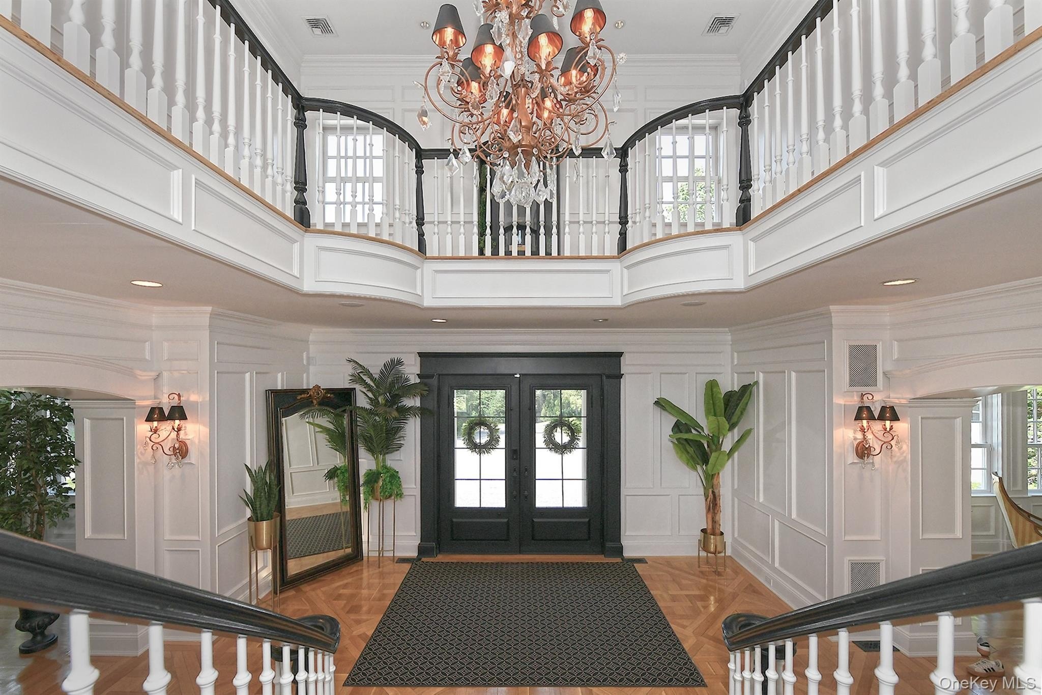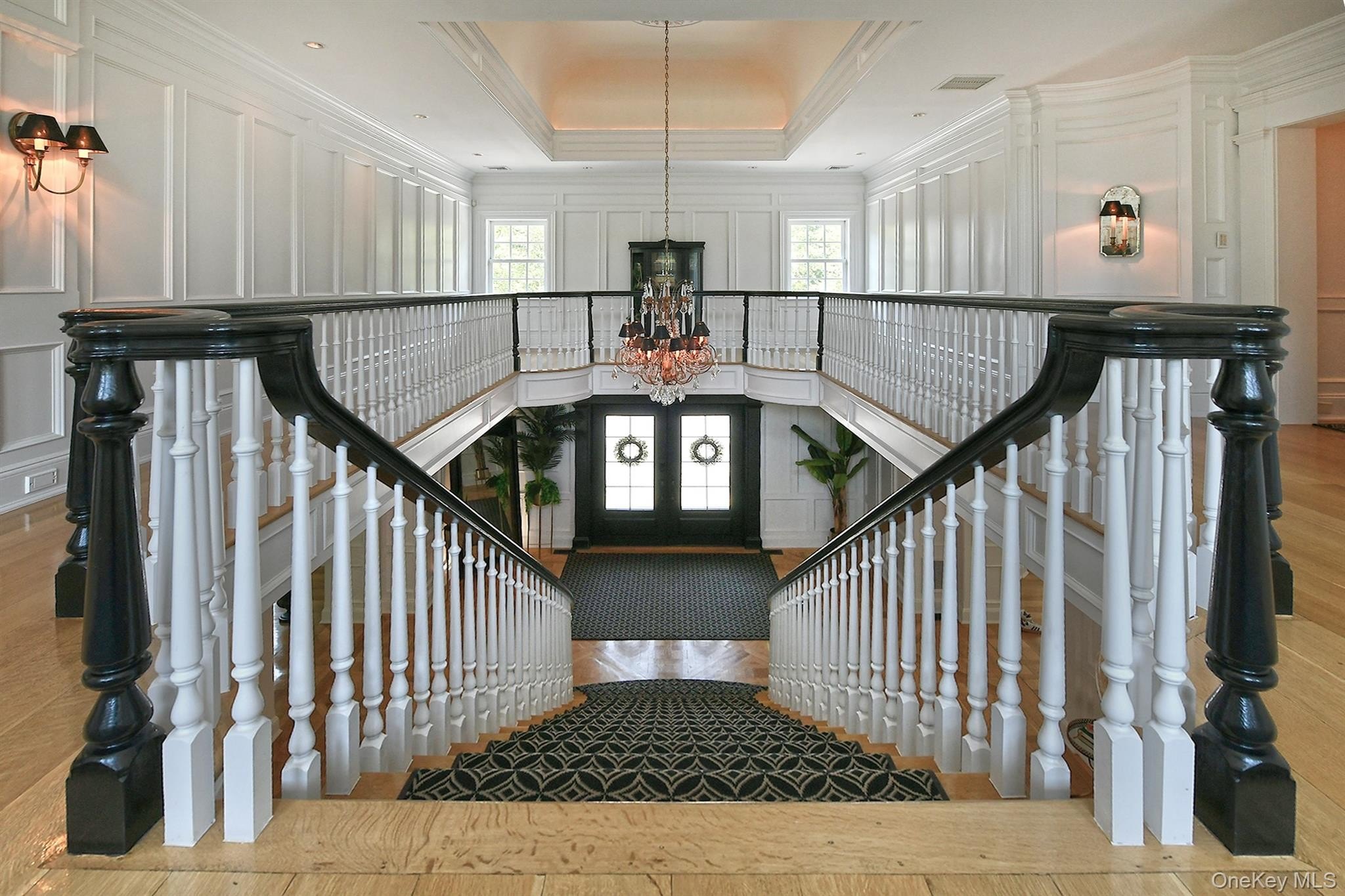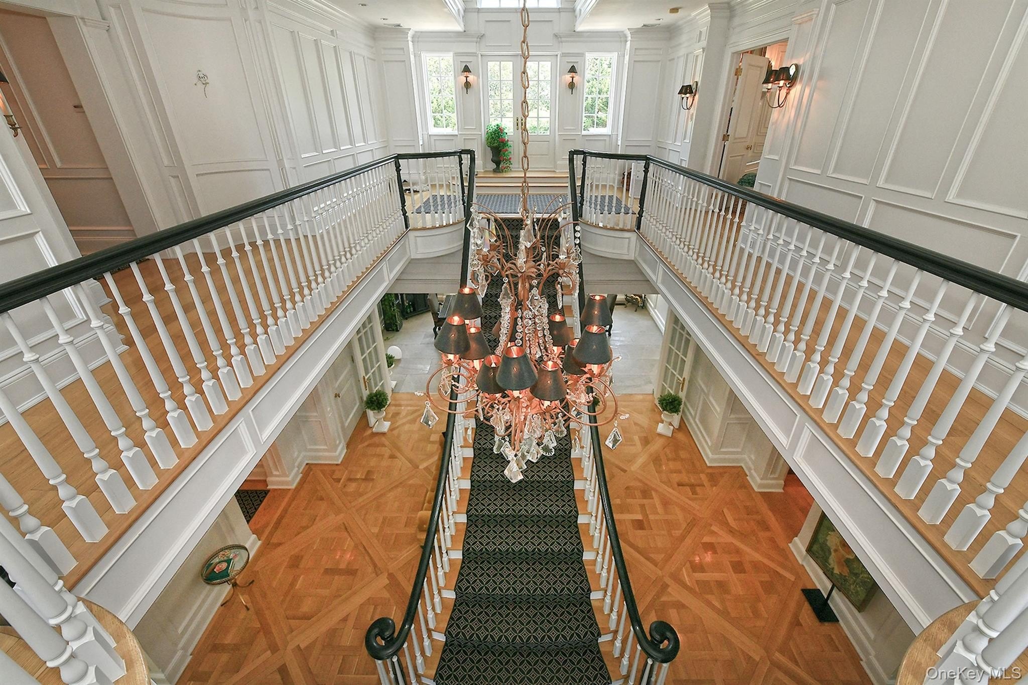 Set atop one of the highest points on Long Island along the Nassau County border, this private all brick estate offers a rare combination of serenity, grandeur, and craftsmanship. Custom built in 2004 with every amenity and detail in mind, this residence showcases timeless design and exceptional quality throughout its 8,100 square feet of living space. Enter through striking iron double doors to a gracious entry foyer and sweeping bridal staircase. The home features 6 bedrooms and 4.5 bathrooms,. The stunning chef's kitchen boasts custom white wood cabinetry, Quartzite countertops, a spacious center island, breakfast area, and a convenient butler's pantry. Enjoy multiple large principal rooms including an elegant formal dining room, formal living room with coffered ceilings and built-ins, warm family room, unbelievable moldings and millwork throughout and a rich mahogany library-all enhanced by five fireplaces that bring warmth and character to every space. Beautiful wide plank, white oak wood radiant flooring throughout main floor, magnificent primary suite offers a true retreat with beautiful walk-in closets, a luxurious marble bathroom and an adjoining exercise room. Additional bedrooms are generously sized, and the second-floor laundry room provides convenience. The recently renovated lower level features radiant-heat floors, high ceilings, and an abundance of recreational and living space-perfect for extended family or entertaining. Outdoors, enjoy the heated Gunite pool and spa, pool house with bar, and classic bluestone patio overlooking breathtaking views of the 2.3 acre property. Take in the scenery from the balcony or, for the adventurous, ascend to the unique widow's walk perched high above the estate. Additional amenities include a three-car garage, whole-house generator, Crestron system, gated entry, a 60-foot winding driveway and belongs to the desirable Half Hollow Hills School District. This exceptional home is truly one of a kind-timeless, sophisticated, and built for the most discerning buyer.