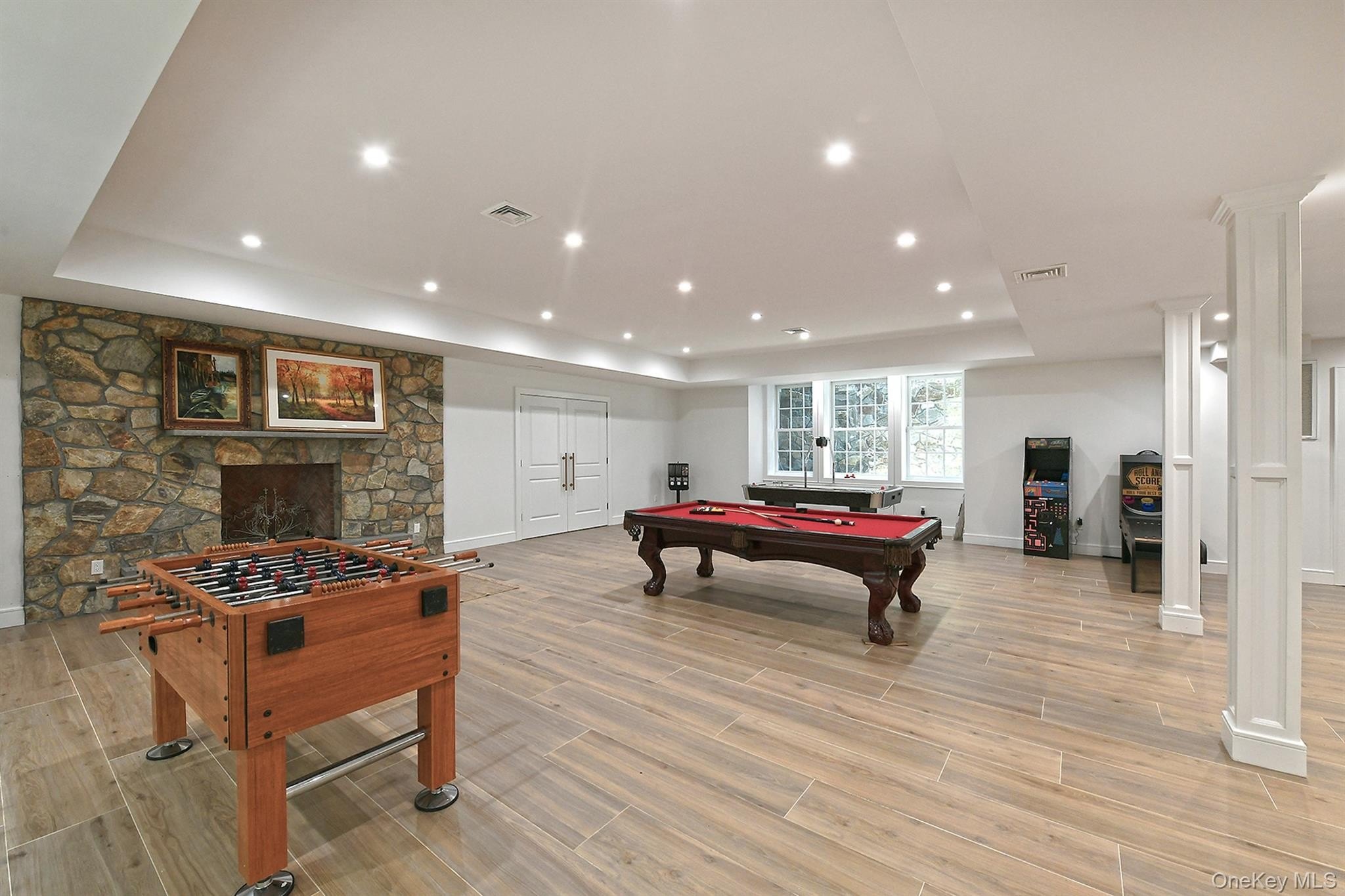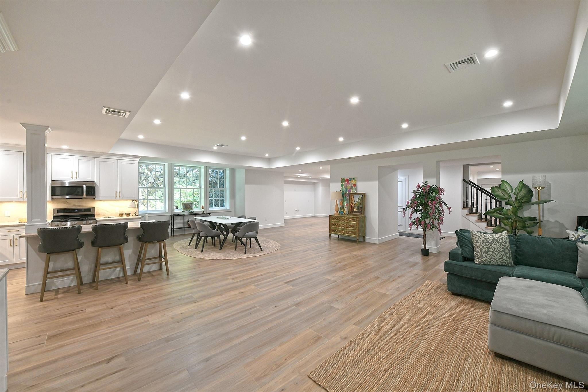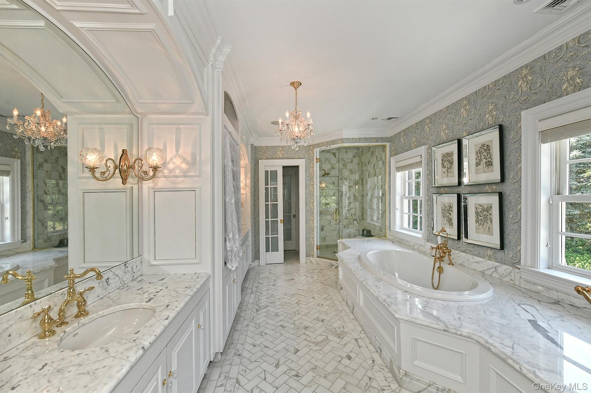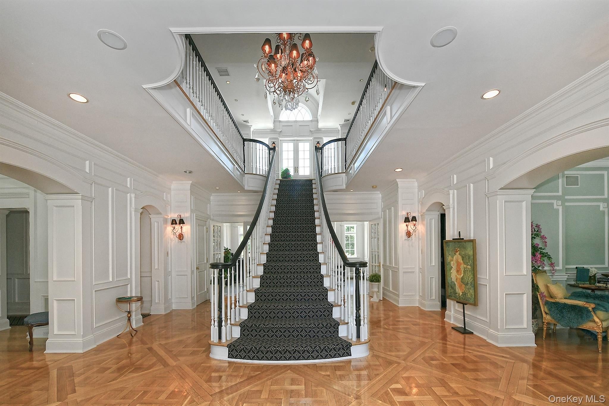 Set atop one of the highest points on Long Island along the Nassau County border, this private all brick estate offers a rare combination of serenity, grandeur, and craftsmanship. Custom built in 2004 with every amenity and detail in mind, this residence showcases timeless design and exceptional quality throughout its 8,100 square feet of living space. Enter through striking iron double doors to a gracious entry foyer and sweeping bridal staircase. The home features 6 bedrooms and 4.5 bathrooms,. The stunning chef's kitchen boasts custom white wood cabinetry, Quartzite countertops, a spacious center island, breakfast area, and a convenient butler's pantry. Enjoy multiple large principal rooms including an elegant formal dining room, formal living room with coffered ceilings and built-ins, warm family room, unbelievable moldings and millwork throughout and a rich mahogany library-all enhanced by five fireplaces that bring warmth and character to every space. Beautiful wide plank, white oak wood radiant flooring throughout main floor, magnificent primary suite offers a true retreat with beautiful walk-in closets, a luxurious marble bathroom and an adjoining exercise room. Additional bedrooms are generously sized, and the second-floor laundry room provides convenience. The recently renovated lower level features radiant-heat floors, high ceilings, and an abundance of recreational and living space-perfect for extended family or entertaining. Outdoors, enjoy the heated Gunite pool and spa, pool house with bar, and classic bluestone patio overlooking breathtaking views of the 2.3 acre property. Take in the scenery from the balcony or, for the adventurous, ascend to the unique widow's walk perched high above the estate. Additional amenities include a three-car garage, whole-house generator, Crestron system, gated entry, a 60-foot winding driveway and belongs to the desirable Half Hollow Hills School District. This exceptional home is truly one of a kind-timeless, sophisticated, and built for the most discerning buyer.