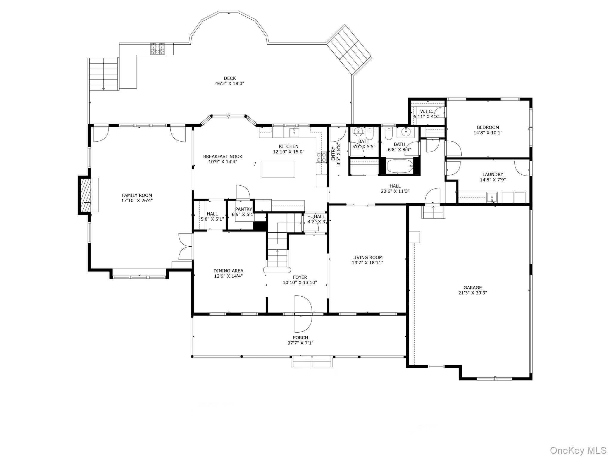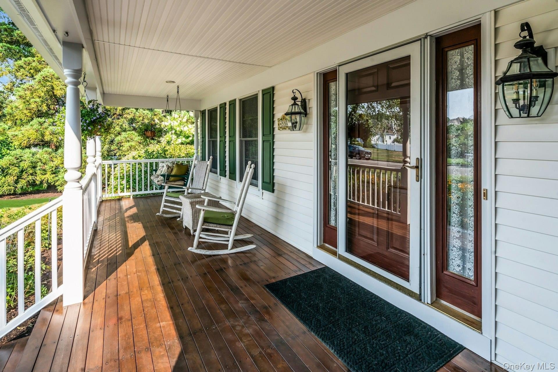 Incredible 6 bedroom, 3.5 bath colonial built by well respected builder Hine in The Orchards. Fabulous 29' front porch constructed of Ipe hardwood is 8.5' deep for comfortable outdoor relaxing. The grand 2 story entrance opens to the formal living room and dining room both featuring French doors. Enter into the granite kitchen with newer appliances including a Thermador double wall oven, Vent-A Hood exhaust fan, new Asko dishwasher, Insinkertor and new refrigerator. Large walk in pantry with self lighting gives additional storage. The Breakfast area in the kitchen features Marvin sliding doors leading to the mohogany deck w built in gas barbeque and granite countertops. Welcoming den features Pennsylvania wall stone, wood burning fireplace with crab orchard hearthstone. Built in bookcases flank the front windows. Doors give access to the back yard. Hallway leads to guest bedroom and bath, and separate laundry room. The extensive primary suite has french doors opening to an office or nursery as well as a recently renovated primary bath. 2 walk in closets and laundry chute complete this oasis. Additionally there are four bedrooms and a full bath. The full finished basement offers a new furnace , an exercise area, a bar with sink, sitting area, cedar closet and a built in dehumidifier. Professionally landscaped throughout the backyard showcases a salt water pool with diving board, new pool lliner and estate fencing. The large mahogany deck has access to a separate dog run. The 3 car garage includes a 220 outlet for EV level 2 charging.