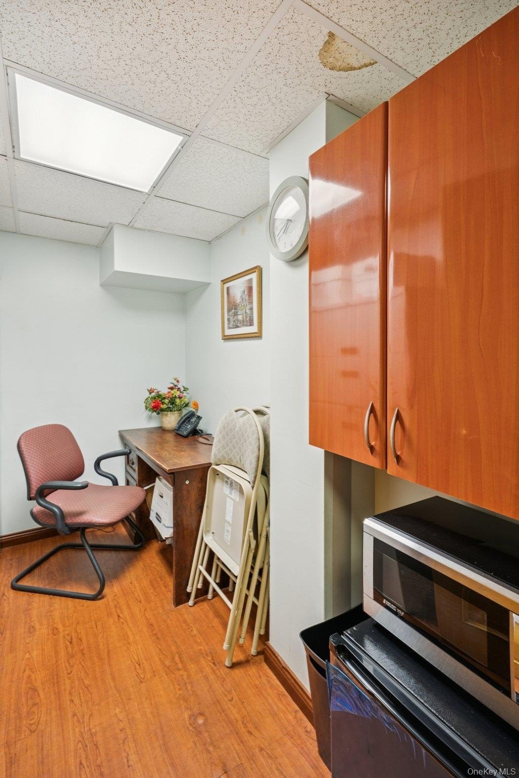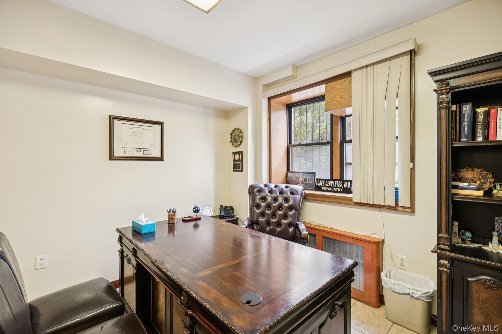 The Professional Cooperative is conveniently located in the bustling Forest Hills neighborhood. The Co-Op Community is made up of 212 Residential Units and Commercial Unit LA. As you enter the Building Lobby you will be welcomed with a peaceful ambiance. The Unit itself is situated on the First Floor, providing ease of access to your clients and customers alike. The lovely Waiting Room is open and bright with an inviting Reception Area. The Unit has a total of five private offices, one providing a sink and refrigerator for staff needs. Off the center hallway there are four offices ideal for an array of uses. The largest office is especially useful for conducting interviews and business. The Lavatory is clean and accessible. A great opportunity to awaits, for you to operate your business in a thriving location only minutes from major highways and Public Transportation.