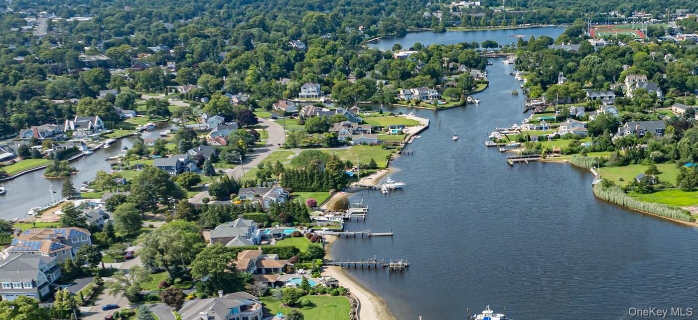 Welcome to an exceptional waterfront retreat, ideally situated along Babylon's largest natural waterway-the Carll's River. Thoughtfully reconstructed in 2003 with steel beam construction, this home seamlessly blends timeless craftsmanship with luxurious modern amenities. A grand two-story foyer with an elegant bridle staircase and exquisite raised-panel woodwork sets the tone for the home's refined design. The entry features striking ceramic tile with an imported mosaic medallion, transitioning into oak floors with a herringbone inset and walnut border for added sophistication. The home offers multiple bedrooms, several boasting private balconies with serene views of the river. At the heart of the residence is a beautifully appointed chef's kitchen complete with a center island seating and dining area plus a well-equipped butler's pantry-with prep sink and additional wine refrigerator-opens to the formal dining room, where a gas fireplace adds warmth and charm. The inviting living room offers classic oak floors and a wood-burning fireplace, perfect for cozy evenings at home. Step outside to your private waterfront retreat, offering 140 feet of sandy beach, a 22' x 40' boat slip, a pier with floating dock, and stunning views over the Carll's River- The resort-style backyard features an inground heated solar pool, pergola, jacuzzi, built-in barbecue, and gas fire pit, creating an ideal setting for both entertaining and quiet relaxation. This remarkable property delivers luxurious living, breathtaking water views, and every amenity for an unparalleled coastal lifestyle-all within the desirable X flood zone.