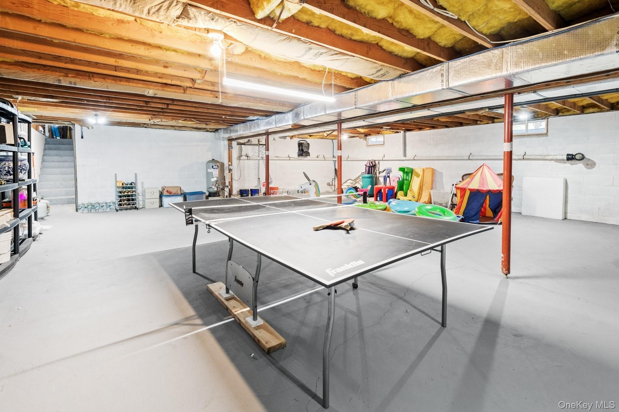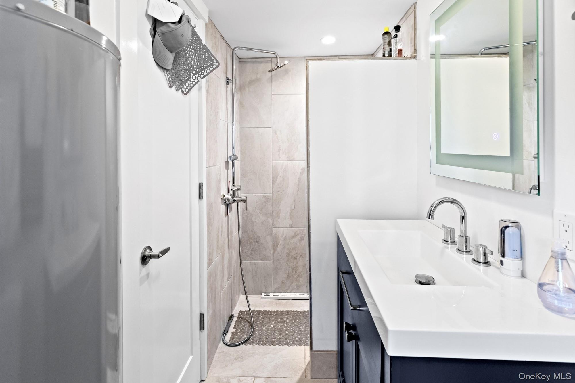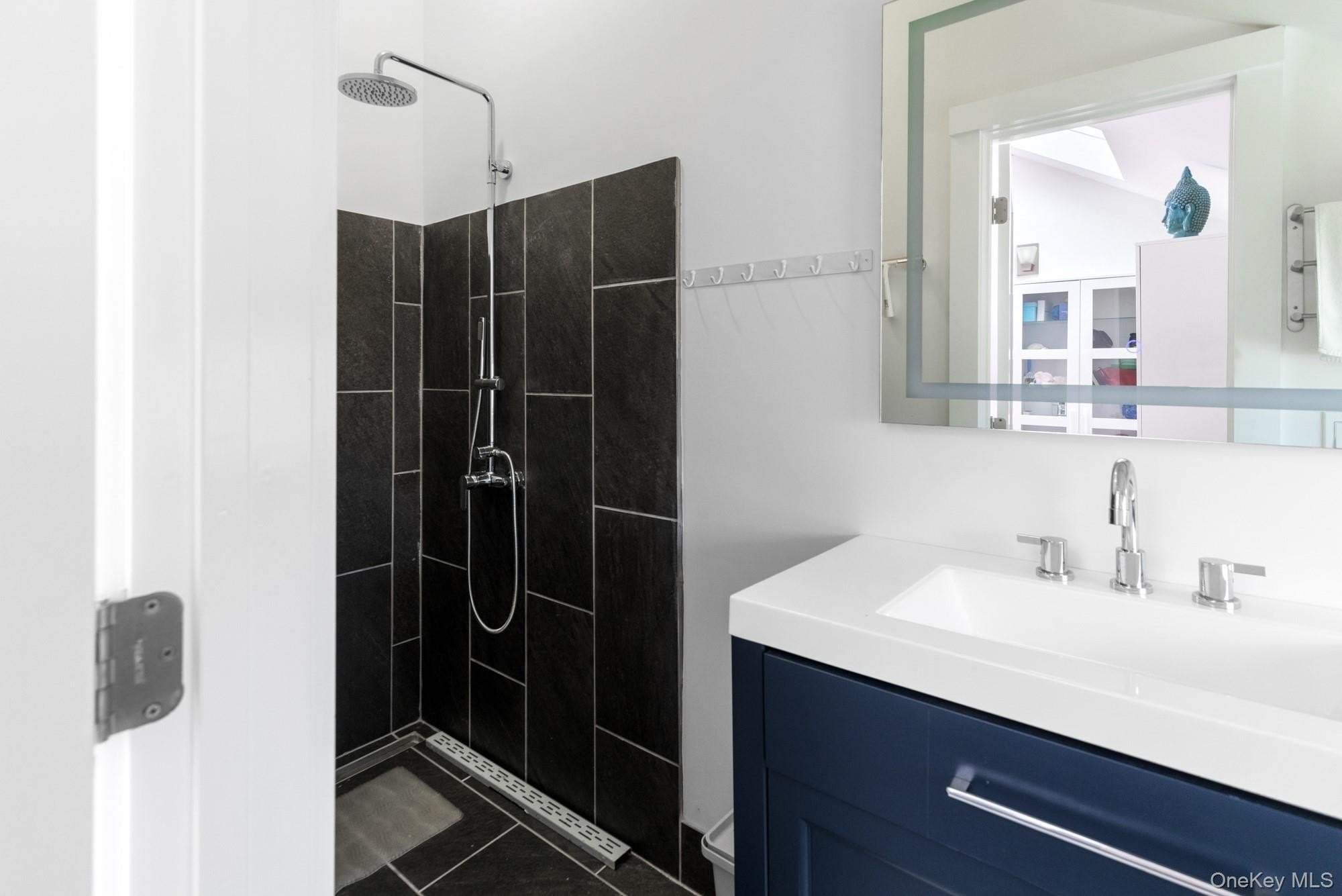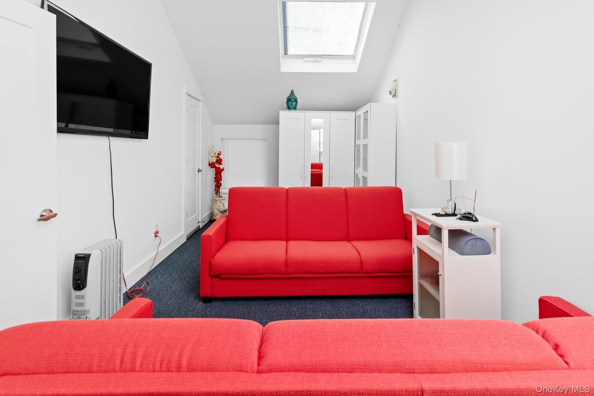 Located at the end of a quiet cul-de-sac, this 4-bedroom, 3-bath home offers one-level living on a private, park-like acre. A 200-foot driveway leads to an open, airy floor plan with 18-foot ceilings and a striking stone fireplace. Glass sliders open to a large deck, heated in-ground pool, and hot tub-ideal for indoor-outdoor entertaining. The kitchen features Samsung appliances and a sleek KOBE range hood, with ample counter space and a large island. Central air with a NEST thermostat ensures year-round comfort. The spacious primary suite includes double exposure and a bathroom with a soaking tub, separate shower, and double-sink vanity. Each of the additional bedrooms enjoys abundant natural light. A legal two-story accessory structure offers incredible flexibility, with two and a half baths, a recreational space on the first floor, a sitting room on the second, and attic storage. It can be used as a pool house, home office, or creative studio. Additional highlights include a two-car garage, city water, outdoor shower, and childproofed heated pool. This home is conveniently located just 3/4 mile from the Westhampton train station, 1/2 mile from the Westhampton Tennis Club, and under two miles to the village center. This private, well-maintained property offers the perfect combination of comfort, luxury, and convenience for both year-round living or a weekend getaway