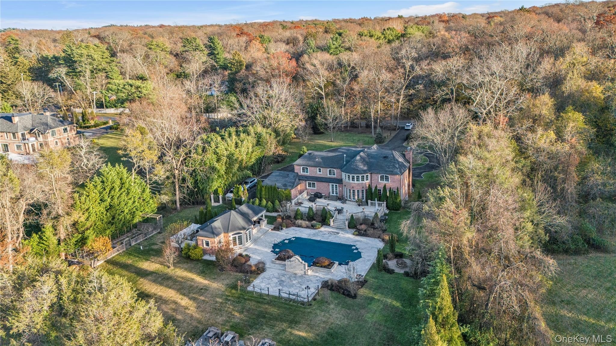 New to the market in one of Brookville's most prestigious corridors and locations within the Jericho School District, 109 Wheatley Road offers timeless elegance on 2 flat, beautifully manicured acres. Featuring an unmatched resort-style backyard, the property includes a salt-water swimming pool, hot tub spa, expansive travertine marble patio, professional bocce ball court with seating, vegetable garden, and separate all brick pool house with outdoor kitchen and pizza oven. The west-facing backyard offers beautiful sunset views, with colorful landscaping year-round and mature nectarine and fig trees lining the garden. Set back far from the road for exceptional privacy, the home also offers a three-car garage plus generous courtyard and side parking. This stately, full brick colonial welcomes you with a grand two-story front to back entrance foyer that sets the tone for gracious living throughout. Music room and den flow nicely to the library/study. The home features 6 bedrooms and 5.5 baths. Formal great room with gas fireplace and a banquet sized dining room with mural accommodates larger dinner parties. True chef's kitchen, 6-burner gas Wolf range with double oven, two dishwashers, two sinks, centre island seating plus breakfast room with french doors to the backyard. Natural gas for heating and cooking. Unfinished basement with 10' ceilings, steel beam construction, engineered floor beams and outside entrance. The pool house has a basement, too. Just imagine yourself living and entertaining here on this private estate. Easily accessible to major roads and just minutes from the Long Island Expressway, shopping, restaurants, parks, country clubs, train transportation and quick to the international airports in New York. The Village of Brookville on the North Shore of Long Island offers residents a supreme lifestyle, and this house is solidly built to enjoy on day one.