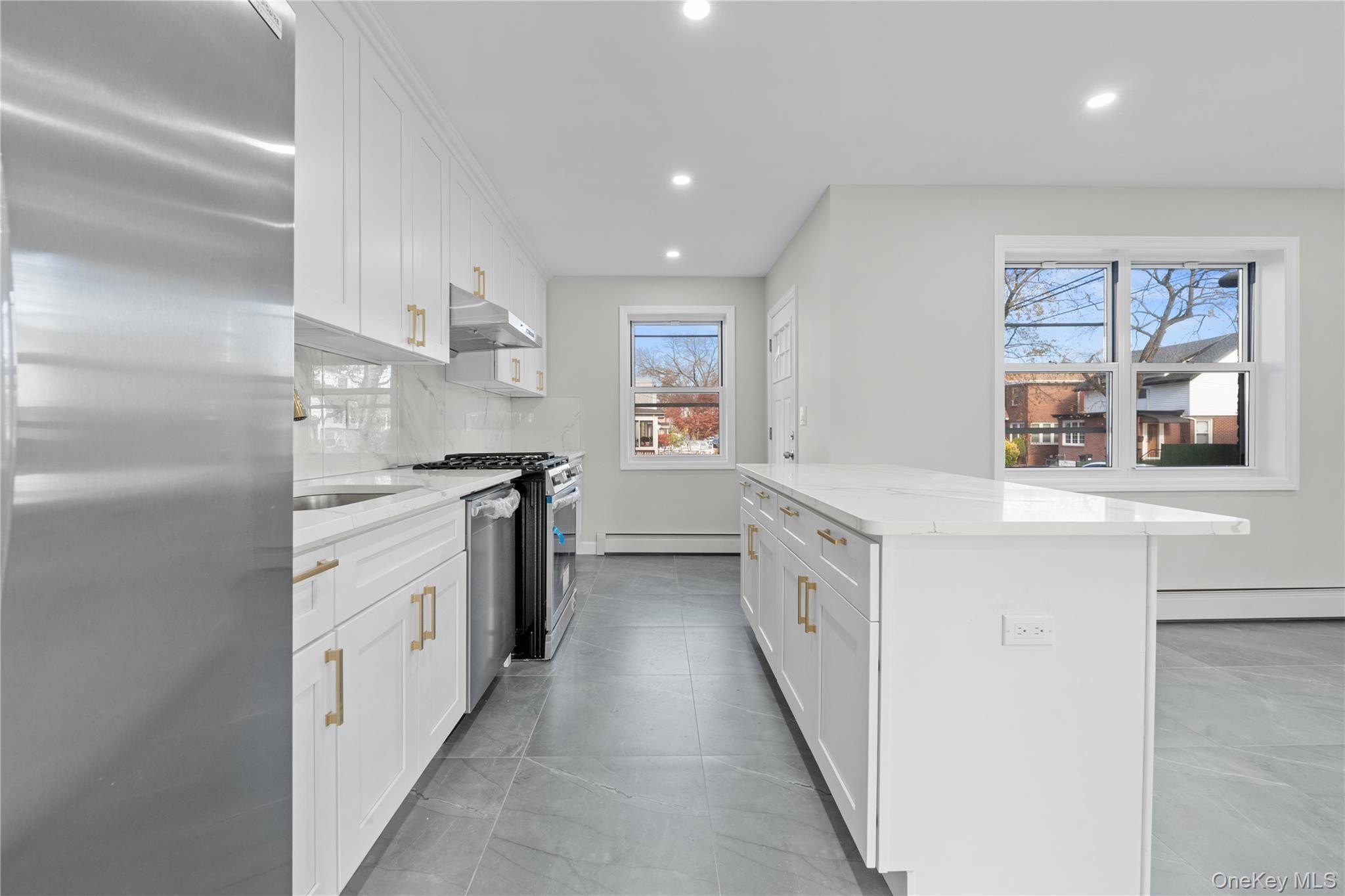 164-19 32nd Avenue is a 20x48 built 100% Brick Three story single family townhouse sitting on a beautiful corner of the Murray Hill Section of Flushing. Sitting on a 20x97 corner lot featuring a wide private driveway, garage, and yard space to enjoy outdoor gatherings. Spanning over 2,800 sq/ft of living space, this brick property is the perfect opportunity for large families looking for space. This meticulously renovated property will captivate you from the moment you arrive with its warm & welcoming energy. The parlor floor of the owners duplex features an expansive sun drenched, modern, open concept living area which provides great space for entertaining. The formal dining area leads into the beautiful kitchen any chef will love. Kitchen features floor to ceiling custom cabinetry, adorned with a full fleet of stainless steel appliances, island for bar stool seating and leads out into lush rear yard. Powder room on first floor for your guest. Up a flight of stairs onto the second floor 3 well proportioned bedrooms awaits you, each equipped with ample closet space. The Primary suite is equipped with a private en suite that boast spa-like finishes. Down the hall a fully tiled bathroom is adorned with state of the art wall & floor tiles. The high ceiling full finished basement has both interior and exterior access. This space can be used as the perfect in-law suite, guest quarters, media den, home office, storage space or additional recreational space. Fully gutted & remodeled by an expert team of contractors and designers featuring select wide oak wood flooring, recessed lighting, brand new electrical, heating, plumbing, and energy efficient Split Unit A/C Systems. This masterfully re-imagined single family is conveniently located with close proximity to major transportation which makes commuting a breeze. Just off Bayside Avenue, Francis Lewis Blvd, Utopia Parkway. Short blocks to schools, shopping centers, restaurants, cafes, parks, and many other vibrant neighborhood amenities.