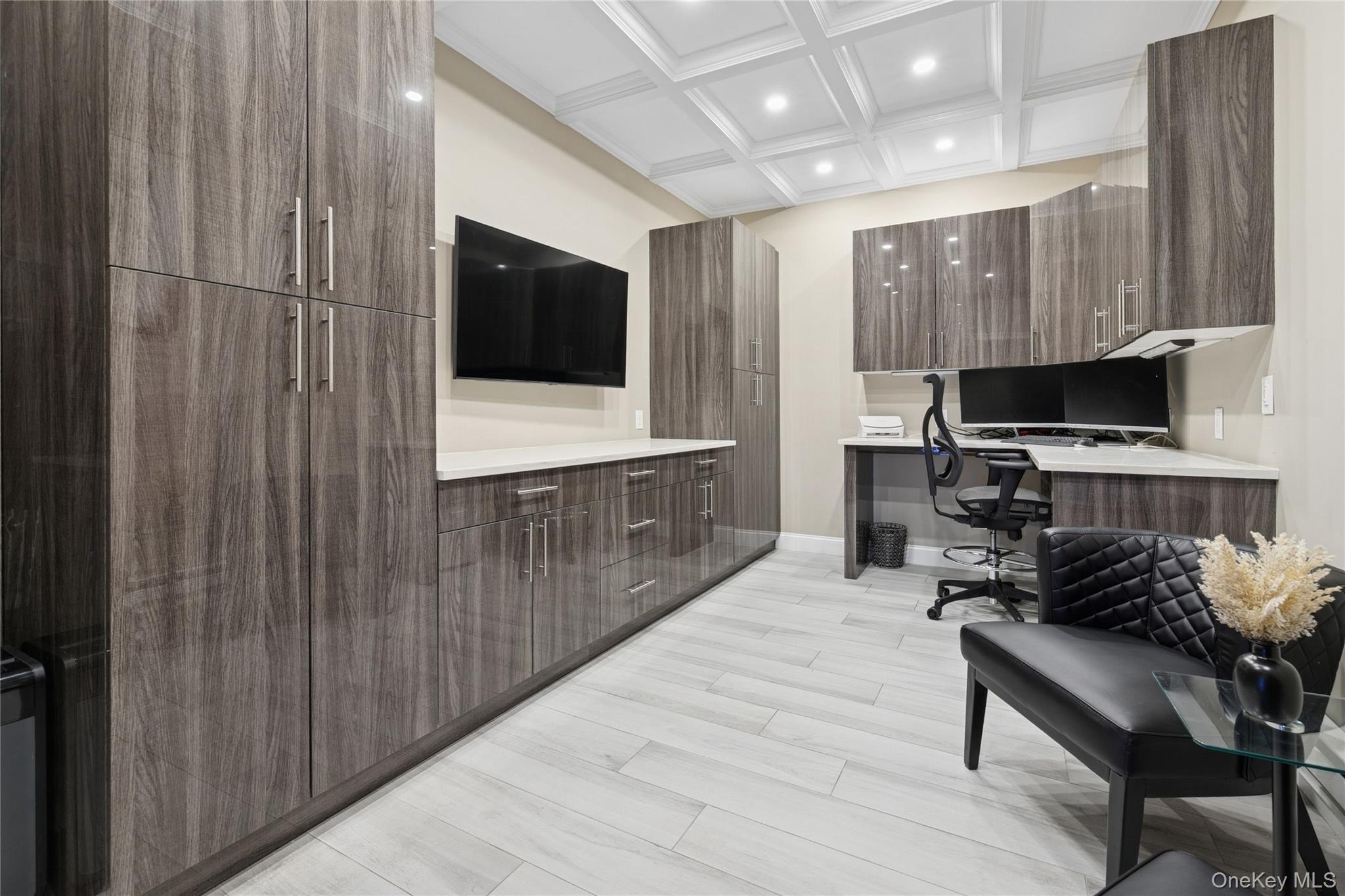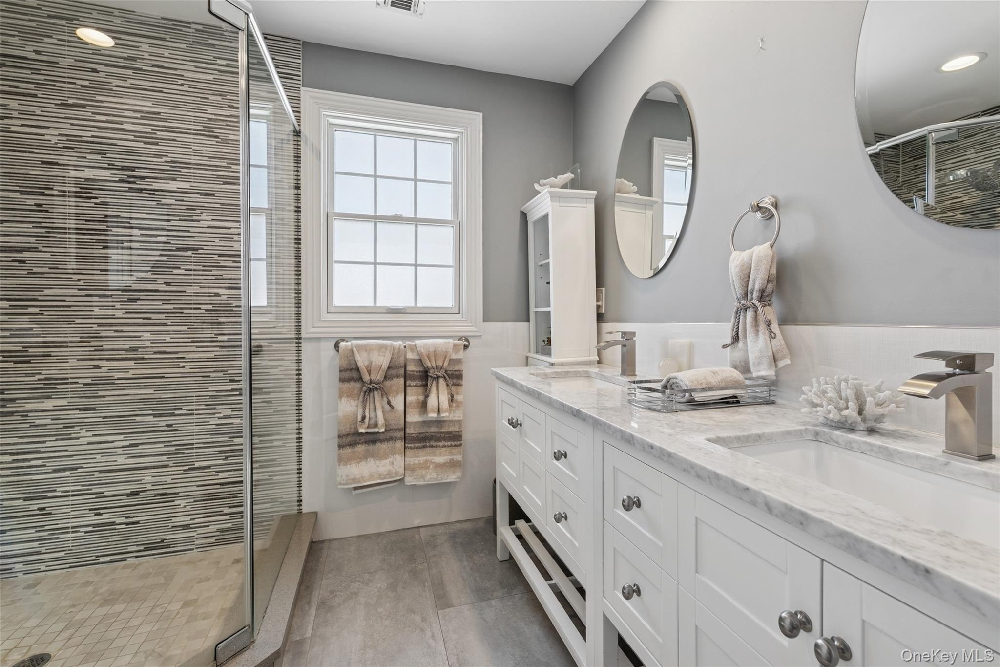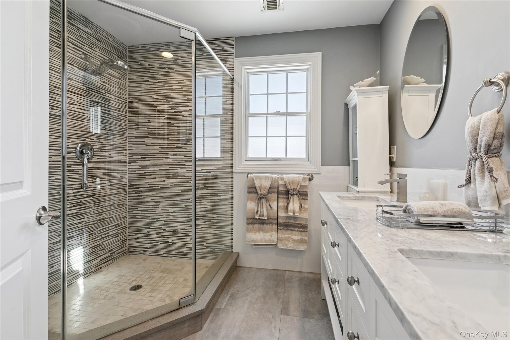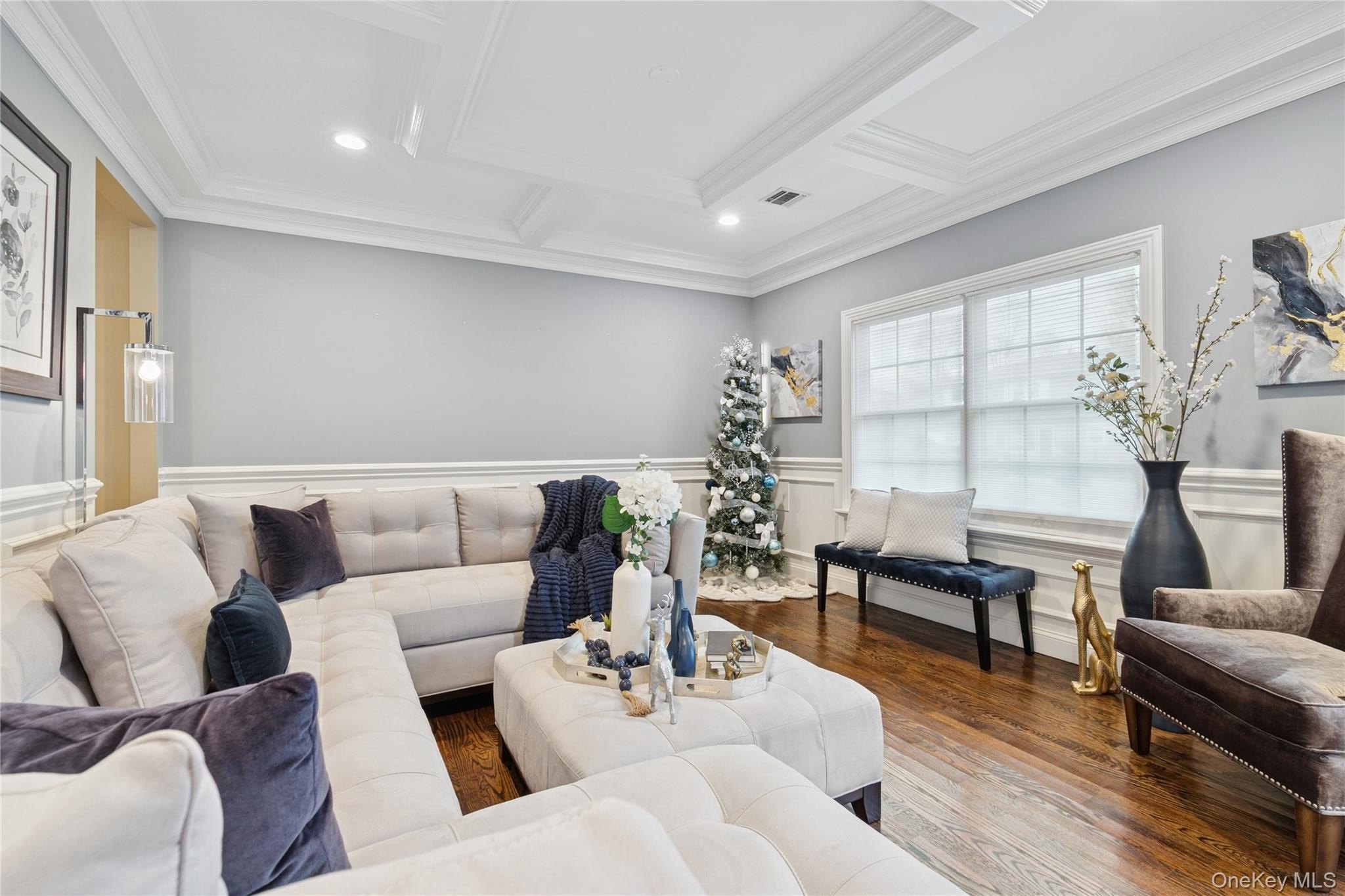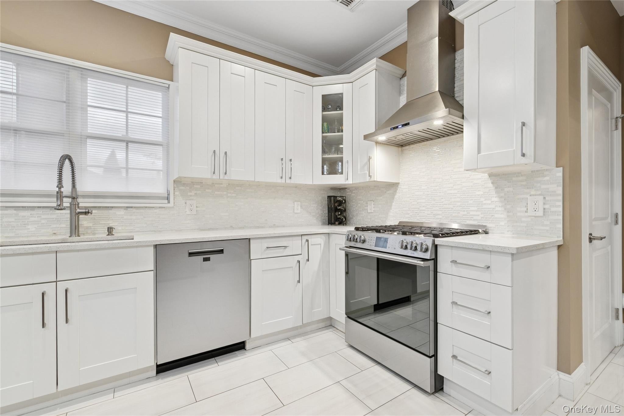 Welcome to a rare luxury residence in Plainview-one of the few newer-construction homes in the area. Designed with modern elegance and everyday comfort in mind, this home offers bright open spaces, premium finishes, and exceptional functionality. You're greeted by a dramatic two-story entry with custom millwork, wrought-iron double doors, and rich hardwood floors. The first floor features impressive 9-foot ceilings, enhancing the open feel and adding volume and light throughout the main living areas. The chef-inspired kitchen showcases Cafe stainless steel appliances, beautiful cabinetry, generous counter space, and a layout perfect for both everyday cooking and elevated entertaining. Seamless flow connects the kitchen, dining, and living areas, making this home ideal for gatherings. Upstairs, you'll find four spacious bedrooms, including two rooms with walk-in closets and custom organizers. One bedroom has been transformed into an exquisite designer dressing room; sellers are open to discussing converting it back to a traditional bedroom if preferred. Enjoy year-round comfort with central air conditioning, forced-air heating, and a high-efficiency Navien tankless hot-water system providing continuous hot water and reduced utility costs. The private, fully fenced backyard offers professional landscaping, inground sprinklers, and an expansive paver patio supported by elegant architectural columns-perfect for outdoor dining, relaxing, and entertaining. A detached shed is included as a gift. Enhanced curb appeal, a paver driveway, and beautifully maintained grounds complete this move-in-ready home located near shops, highways, parks, and the award-winning Plainview-Old Bethpage School District.