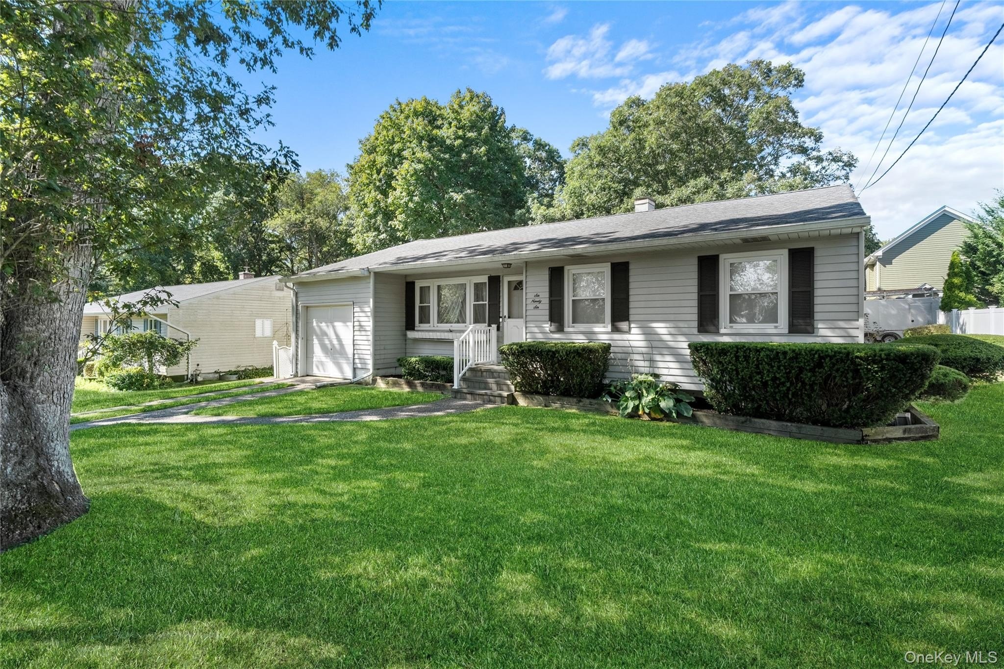 Welcome to this warm and inviting 3-bedroom ranch, perfectly situated in the highly desirable Connetquot School District. This home has been lovingly cared for and is ready for you to make it your own with your personal touch and updates. Step inside to find beautifully preserved hardwood floors and a spacious layout. The large eat-in kitchen flows seamlessly into a step-down den-ideal for cozy nights at home-or use the space as a formal dining room, perfect for entertaining. The primary bedroom features ample closet space and a private bath, while two additional generously sized guest bedrooms offer comfort and flexibility. Additional highlights include gas heating, central Air and a full basement with endless potential. The one car garage is perfect for added storage or workspace. Enjoy peace of mind with a fully replaced roof (2016) and updated siding. This charming ranch offers the ideal blend of character, location, and opportunity.