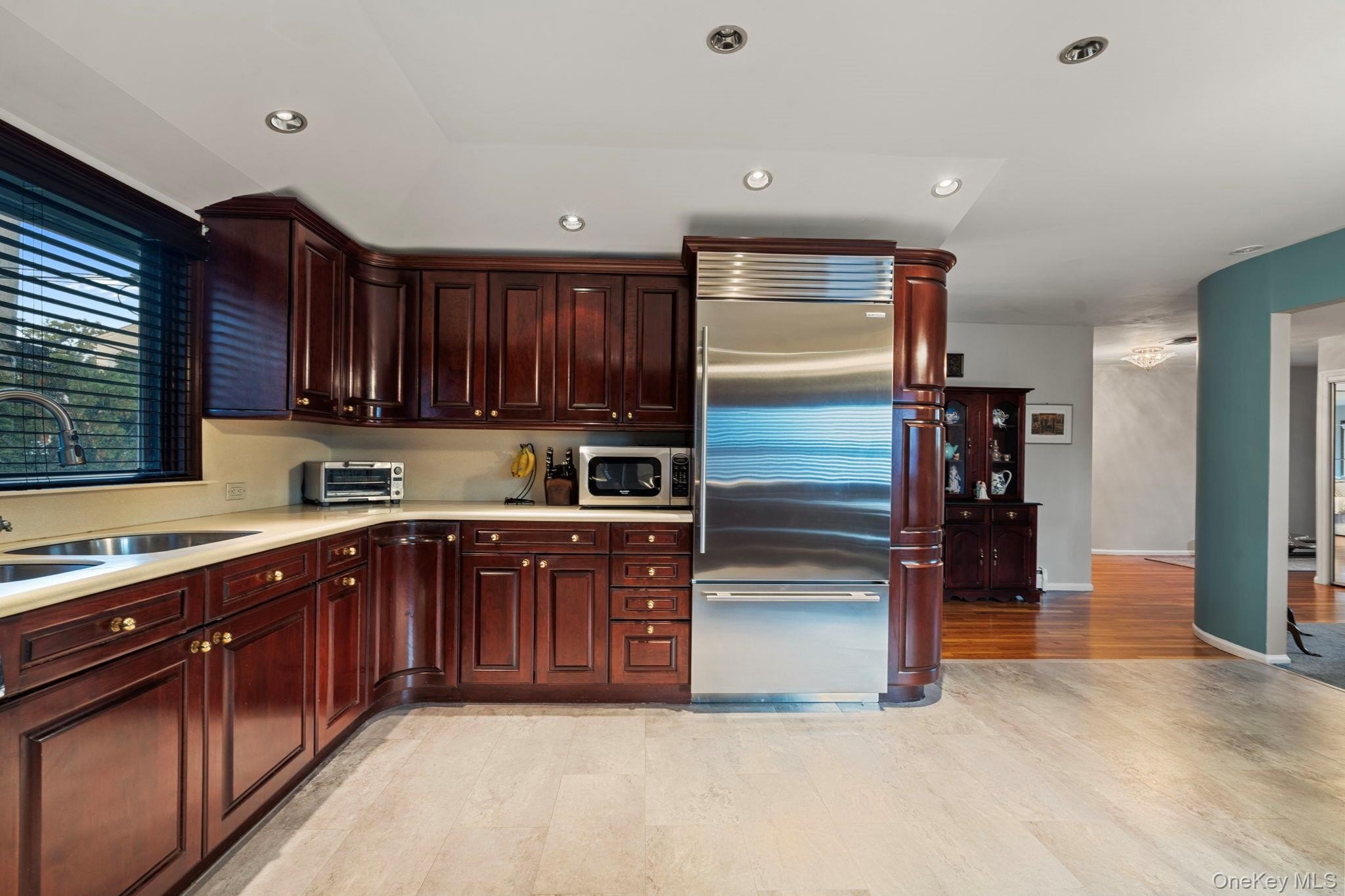 Welcome to a beautifully cared for home on one of the most inviting streets in Manhasset Hills, set on an expansive eighty five by one hundred foot property wrapped in mature landscaping and natural privacy. Inside, you'll find more than two thousand square feet of comfortable living space with a large kitchen, a welcoming dining room and a bright living room that all come together with an easy relaxed flow. There are three well sized bedrooms and three full baths, and the bonus room offers a simple way to add a fourth bedroom if you ever need it. The finished lower level adds another one thousand two hundred twenty five square feet and is great for entertaining with a built in bar and a dedicated area for a pool table along with impressive storage and office space. Step outside to a backyard that feels peaceful and private with pavers, greenery and plenty of space to enjoy the outdoors. A two car garage and extra parking make everyday life simple and convenient. The home is set within the Herricks School District, which is one of the most admired in the area. This is a rare chance to own a spacious welcoming home in a truly exceptional neighborhood.
