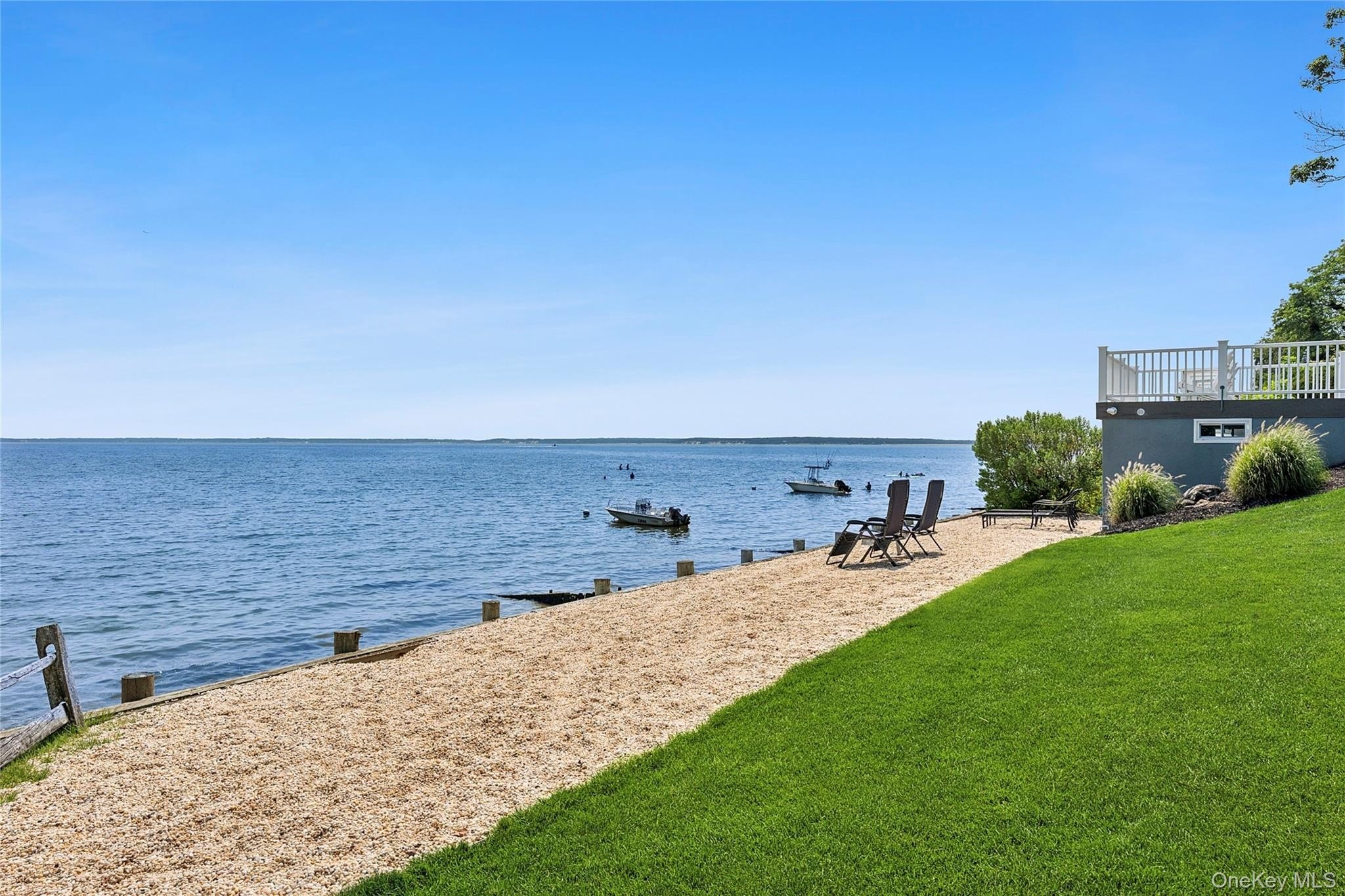 This stunning waterfront residence features over 100 feet of private beach and embodies the essence of coastal living. This three-bedroom, three-bath home built in 2024, boasts an open floor plan, highlighted by a wall of windows that captures breathtaking views of Peconic Bay, creating an inviting space perfect for entertaining. The chef's kitchen, equipped with custom cabinetry and elegant countertops, fosters culinary creativity and includes a spacious island for gathering with loved ones. Two of the bedrooms boast a private top-floor balcony, while the third bedroom is conveniently located on the first floor. The spa-inspired bathrooms are beautifully appointed with exquisite tile and fixtures. The finished lower level features a recreation room with a bar and lounge area, along with a versatile bonus room that can adapt to your needs, serving as an office, gym, or extra storage space. Step outside to the waterfront observation deck, a serene oasis for enjoying the captivating beauty of sunrises and sunsets over the bay. The lower-level storage area provides practical solutions for all your beach essentials, from paddleboards to kayaks. Nestled in a quaint hamlet, this residence offers easy access to the best of the North Fork, where shopping, vineyards, farm stands, and restaurants await your exploration.