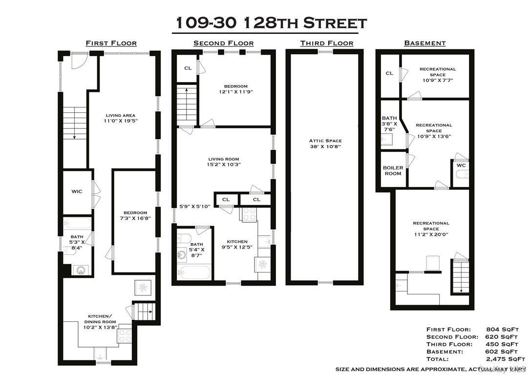 Welcome to 109-30 128th Street, a spacious and well-maintained detached two-family home offering exceptional versatility, comfort, and investment potential in the heart of South Ozone Park. Spanning approximately 2,475 sq ft across three levels plus a finished basement, this property provides an ideal layout for end-users, investors, or extended families seeking additional space.The first-floor unit features a generous living area, an eat-in kitchen, a full bathroom, and a large bedroom with a walk-in closet-perfect for privacy and convenience. The second-floor unit includes a bright living room, two bedrooms, a full bathroom, and its own well-sized kitchen, offering a comfortable and functional residence for rental income or extended family. A massive third-floor attic space adds even more potential, offering 38 feet of open, finished space ideal for storage, office use, or future customization (where permitted). The finished basement includes multiple recreation rooms, a bathroom, a laundry area, and a boiler room, providing valuable added living and storage space with both interior and exterior access. Outside, the property includes a private backyard and sits on a quiet residential block conveniently located near shopping, dining, schools, and major transportation options including the A train, LIRR, and local bus routes. With easy access to the Belt Parkway, Van Wyck Expressway, JFK Airport, and neighborhood amenities, this home delivers the perfect combination of convenience, comfort, and opportunity. Whether you're searching for a residence with rental income potential or a multi-generational living setup, 109-30 128th Street stands out as a rare offering in a high-demand neighborhood.