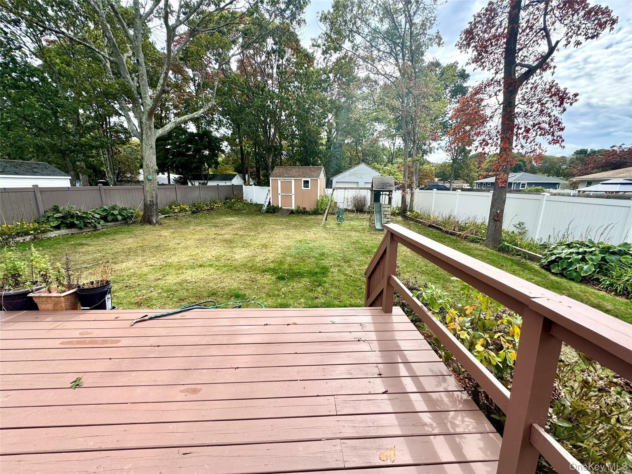 Welcome to this beautifully expanded ranch in a prime location just south of Montauk Highway. Featuring 4 spacious bedrooms and 2.5 baths, this home offers both comfort and style. The updated custom kitchen is a chef's dream, complete with stainless steel appliances and ample storage, seamlessly connecting to the living spaces. The full finished basement provides additional living or entertaining space, while the large deck overlooks a generous, sun-filled property-perfect for outdoor gatherings and relaxation. Energy-efficient solar panels add modern convenience and savings. With its ideal location, updated features, and versatile living space, this home is a true gem ready to welcome you.