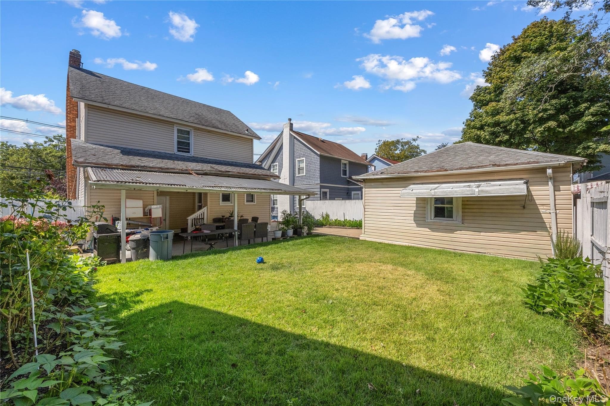 Welcome to this beautifully maintained 1918 Colonial offering timeless charm and modern convenience. This spacious 5-bedroom, 2-bath residence features hardwood floors throughout, a gracious formal dining room, and a large living room highlighted by a wood-burning fireplace. The bright, functional layout provides plenty of space for both everyday living and entertaining. A rear patio creates the perfect outdoor retreat, while the long private driveway and detached garage add exceptional convenience. From its classic architecture to its thoughtfully preserved details, this home offers a rare opportunity to own a true Colonial gem. Ideal for those seeking both character and comfort in a well-maintained property.