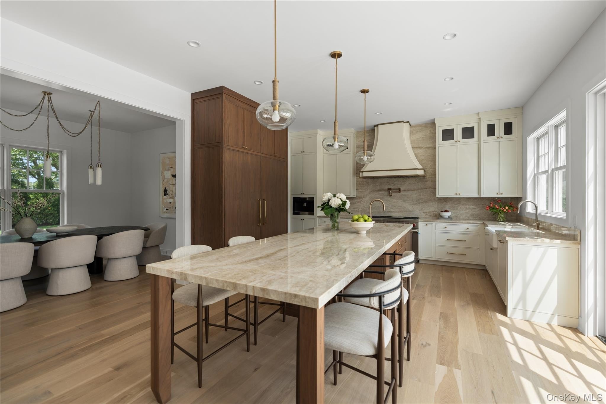 Experience refined coastal living in this newly built traditional residence located in the heart of Southampton Village. Set on a meticulously landscaped 0.52+/- acre property south of the highway, this sophisticated estate offers 6 bedrooms, 7 full baths, and 2 half baths across 6,000+/- sq. ft. of impeccably crafted living space. A dramatic double-height foyer welcomes you inside, revealing a thoughtfully curated floor plan that seamlessly blends comfort and style. Sun-filled living and family rooms flow effortlessly into the dining area, creating an ideal backdrop for everyday living and elegant entertaining. At the center of the home, the gourmet chef's kitchen showcases elevated design and premier functionality. Featuring a stunning Taj Mahal quartzite island, a six-burner Wolf range, built-in cappuccino machine, and an exceptional suite of professional-grade appliances, it opens directly to an expansive patio-perfectly designed for effortless indoor-outdoor gatherings. The first level includes a versatile junior primary suite, equally suited as a home office or guest quarters. Upstairs, the serene primary suite offers a private retreat with a spacious walk-in closet and a spa-inspired bath complete with double vanity and freestanding soaking tub. Three additional en-suite bedrooms, each generously scaled and filled with natural light, complete the second level. The fully finished lower level expands the possibilities with an en-suite bedroom, recreation lounge, custom wine display, and a flexible bonus room ideal for a home theater or gym. Outside, luxury continues with a pristine 20' x 40' heated Gunite pool with spa, surrounded by a custom Kasha sandblasted marble patio. A beautifully appointed pool house, outdoor shower, and fully fenced, lushly landscaped yard-maintained by a comprehensive irrigation system-create a resort-caliber outdoor oasis. Additional features include a two-car garage and ample on-site parking. Perfectly positioned just minutes from world-renowned beaches, village boutiques, and Southampton's celebrated dining scene, this exceptional new construction offers the ultimate Hamptons lifestyle.