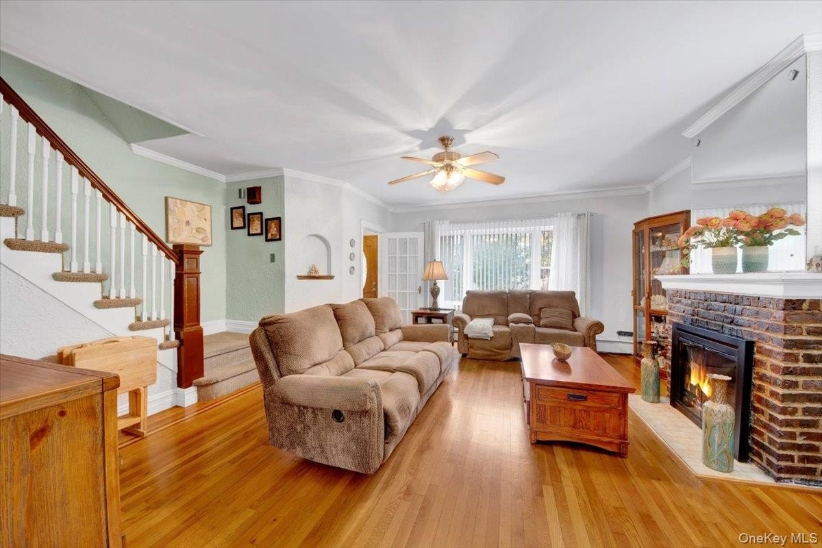 Experience refined living in this beautifully maintained 3-bedroom residence located in the highly sought-after Pelham Gardens neighborhood of the Bronx. From the moment you enter, you're welcomed by a spacious living room featuring an elegant fireplace, creating a warm and sophisticated atmosphere. The space flows effortlessly into a stylish dining area and a thoughtfully designed open-concept kitchen, perfect for both everyday comfort and elevated entertaining. Rich hardwood flooring adds timeless charm throughout the home, while recent upgrades-including a new boiler and hot water tank-ensure modern convenience and peace of mind. Step outside to your expansive private deck, ideal for outdoor dining, hosting gatherings, or simply unwinding in a tranquil setting. The property also offers a private driveway and garage, providing exceptional convenience and additional storage. Set on a quiet, tree-lined street, this Pelham Gardens gem blends classic elegance with contemporary updates-an exceptional opportunity for the discerning buyer seeking style, comfort, and quality.