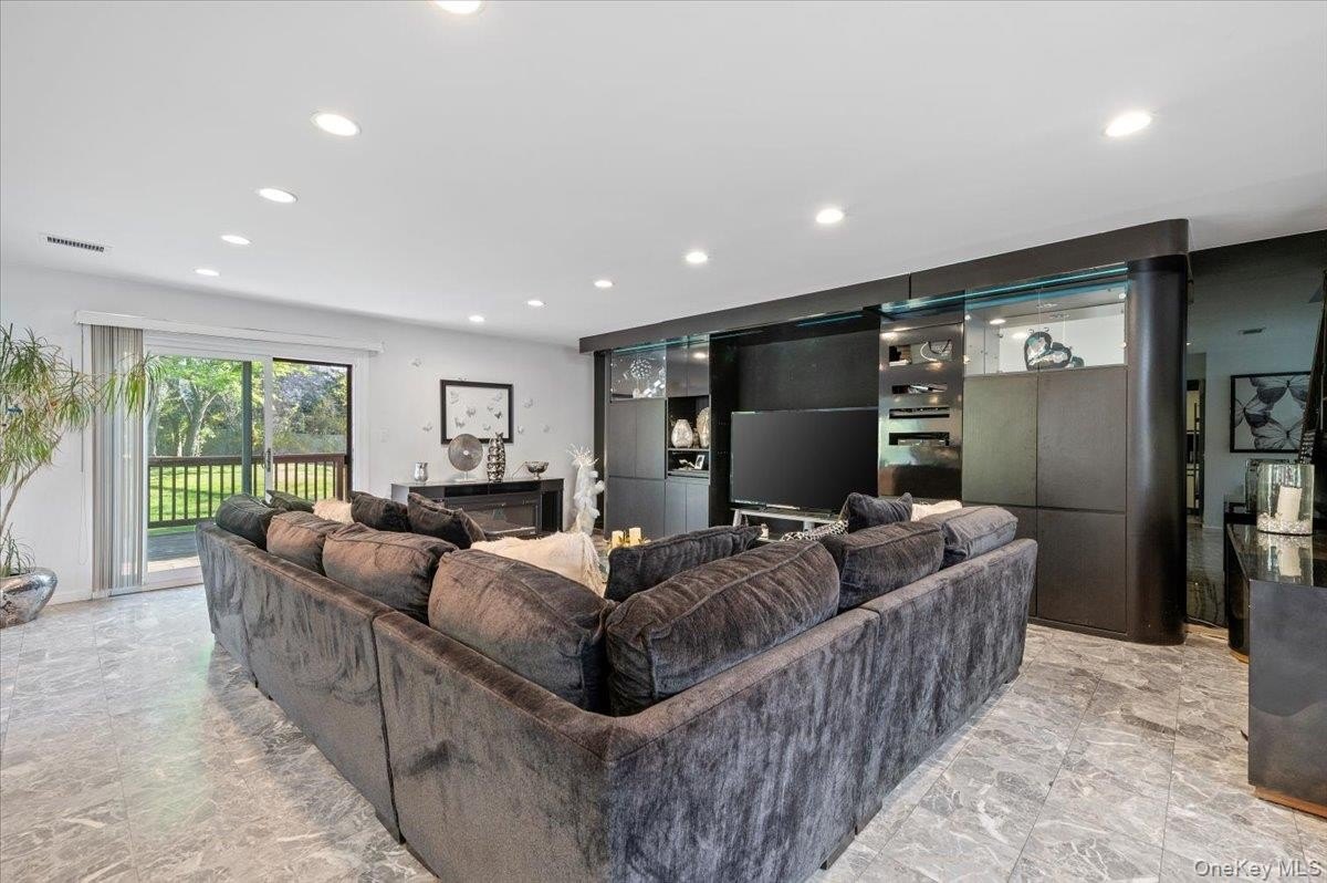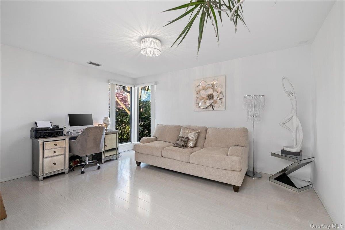 Welcome to Northgate, a gated community in Melville. This highly desirable end-unit is the one you've been patiently waiting for! Featuring 3 bedrooms and 2.5 baths, the home boasts an open-concept first floor complete with an eat-in kitchen, dedicated home office, and a versatile bedroom created from a garage conversion with proper permits. The spacious living room showcases a stunning built-in entertainment center, marble floors, granite countertops, and a premium Sub-Zero refrigerator. Three sliding doors lead to a serene backyard with a large deck-perfect for entertaining or relaxing in privacy. Upstairs, you'll find a massive primary ensuite and an additional bedroom with its own ensuite bath. A brand-new HVAC system has just been installed. This beautifully upgraded unit is truly a gem! Enjoy the amenities Northgate has to offer-24 hr gated security, pool, tennis, clubhouse, fitness center, ETC.