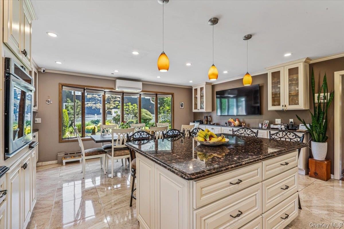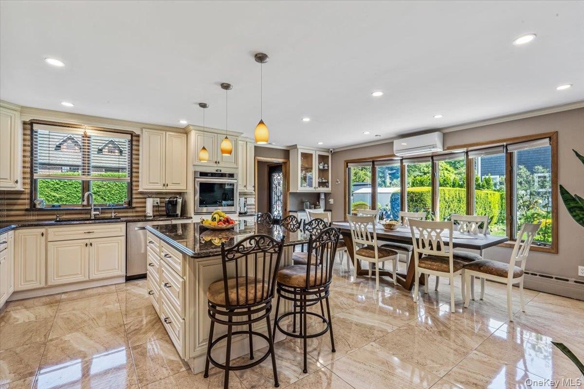 Location Location Location! This Magnificent 5-bedroom, 3-bathroom Contemporary Home is a homeowners dream. Quietly tucked away in a private cul-de-sac in the Weeks Woodland Section of Bayside this spacious property features PRIVACY and LUXURY at its best, With 2 working fire-places, a living room, a family room, a large bedroom with a full bathroom. a separate dining area, and an entertaining kitchen all on the first floor! Walk in through the beautiful double doors to a grand entrance with a private living room featuring a wood-burning fireplace, to the right a formal dining room to the left, a custom-built gourmet kitchen, (a Chef's Dream), with solid wood cabinetry, granite countertops, premium appliances, and refined finishes. Adjacent to the kitchen is a large Family Room featuring a gas- burning fireplace with abundant seating for family gatherings, movie nights, game nights and entertaining. The home, offers oversized rooms and expansive Floor to Ceiling Anderson windows which offer plenty of natural light, enhancing the home's inviting ambiance. 4 well appointed Bedrooms and 2 Full Baths are on the second level. Every detail in this home is thoughtfully designed and meticulously crafted. The home includes a fully finished basement with ceramic flooring and its own separate entrance. Step outside to a beautifully landscaped backyard, complete with a built-in outdoor kitchen, wood-burning pizza oven, perfect for large parties and entertaining. This home offers: Private security system, Underground sprinkler system, a Water filtration-system, Jacuzzi tub and Sky-lights. Set in a very secluded area of Weeks Woodland, this is the perfect place to call home. A true hallmark of elegance with a touch of European flair-this home is a must-see!
